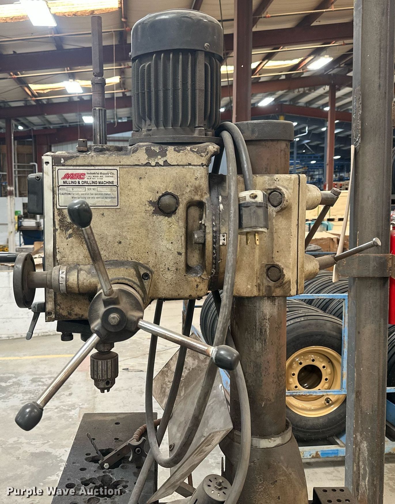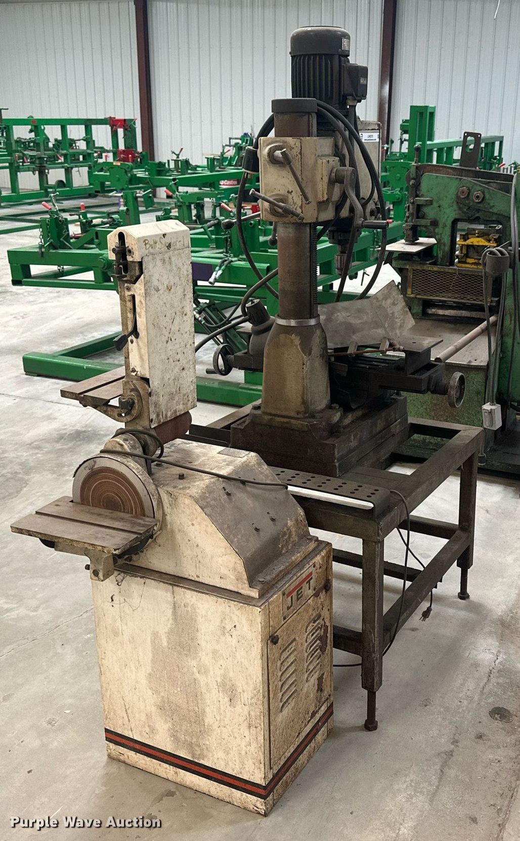 Purple Wave is selling a used Tools in Kansas. This item is a Tools with the following: MSC 9512914 dill press, Serial: 934222, Dimensions: 3' x 3' x 77", Jet disk sander, Serial: 10061025, Dimensions: 2' x 16" x 58"