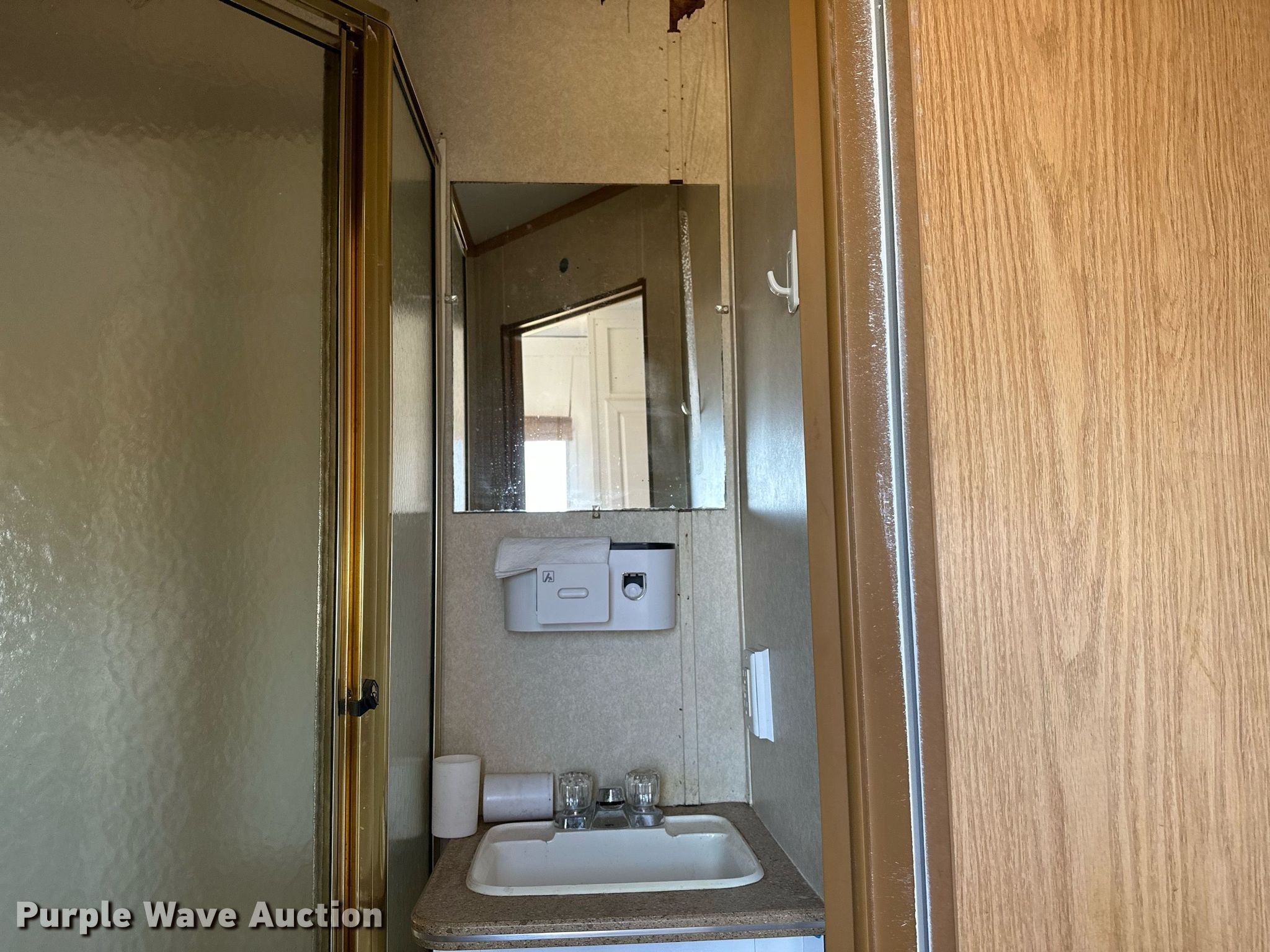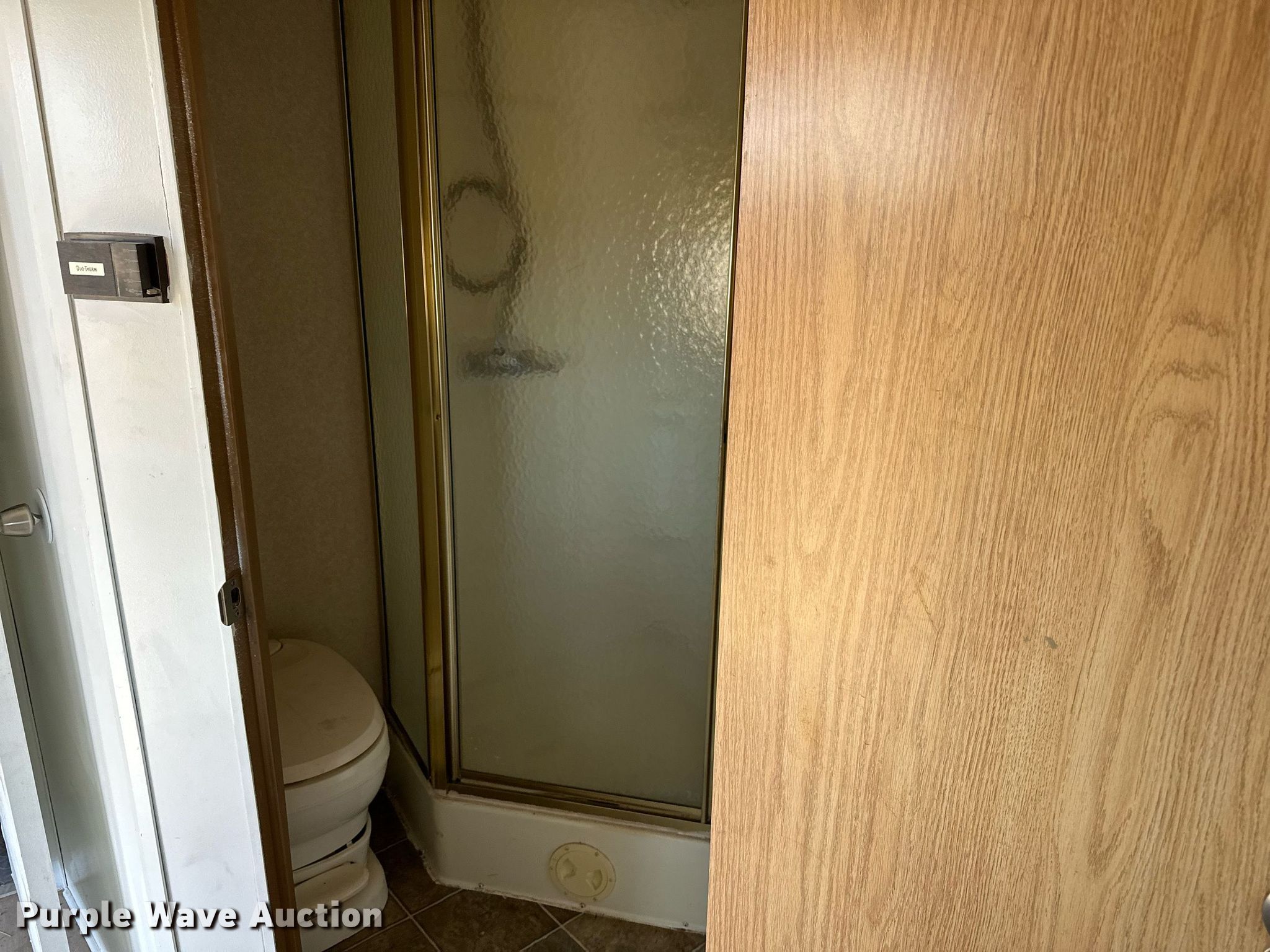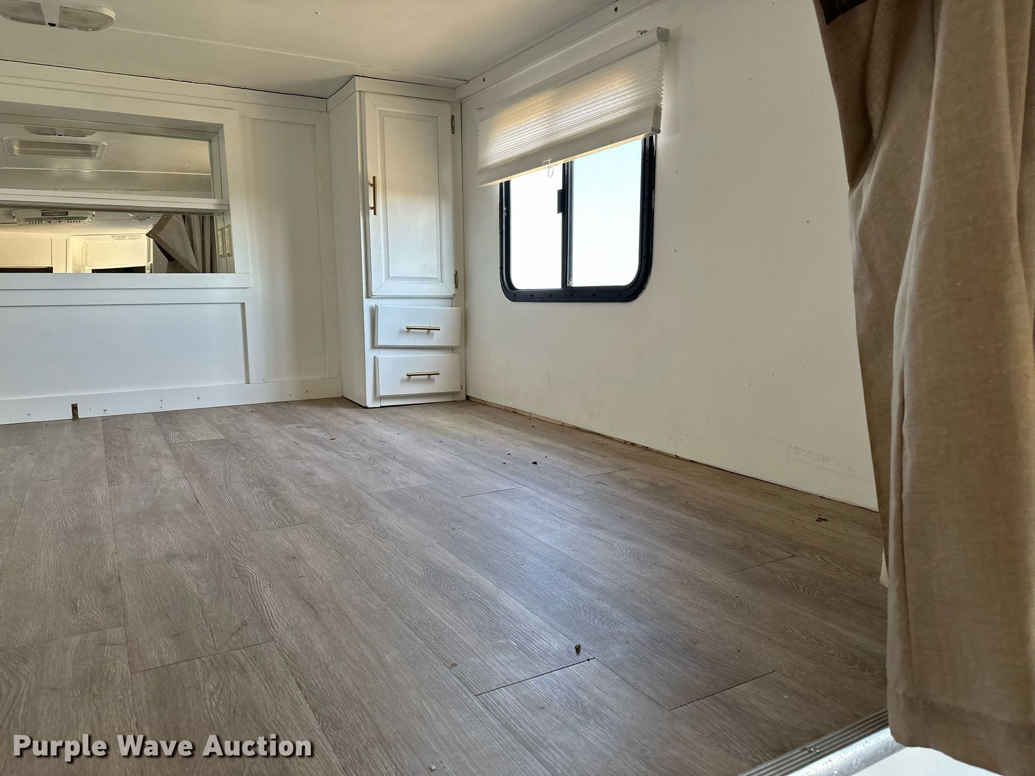 2005 Forrest River Work and Play toy hauler camper. Camper length: 38', VIN: 4X4FWPP265K006416, Claim #3-802721. Chassis Axles: Tandem, Suspension: Spring, Brakes: Electric. Interior Kitchen: Sink, Refrigerator, Freezer, Oven, Stove: Propane, Living room: Table, Bathroom, AC units: 1. Features Awnings: 1 Awning type: Manual, Rear door/ ramp. Tires Size: 235/80R16. Notes Water damage. Insurance salvage unit.. OKlahoma title. Title distribution may be delayed up to 14 days from verification of funds. Oklahoma Farm Bureau Insurance. Seminole, OK 74868