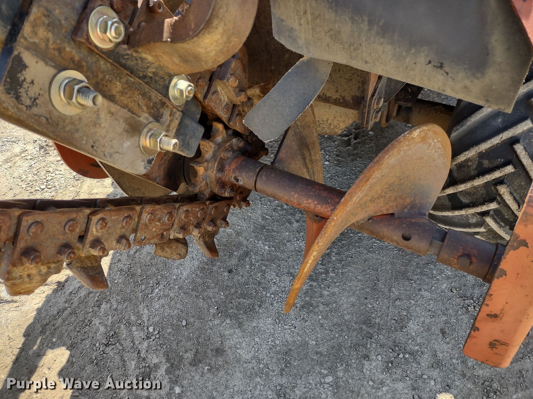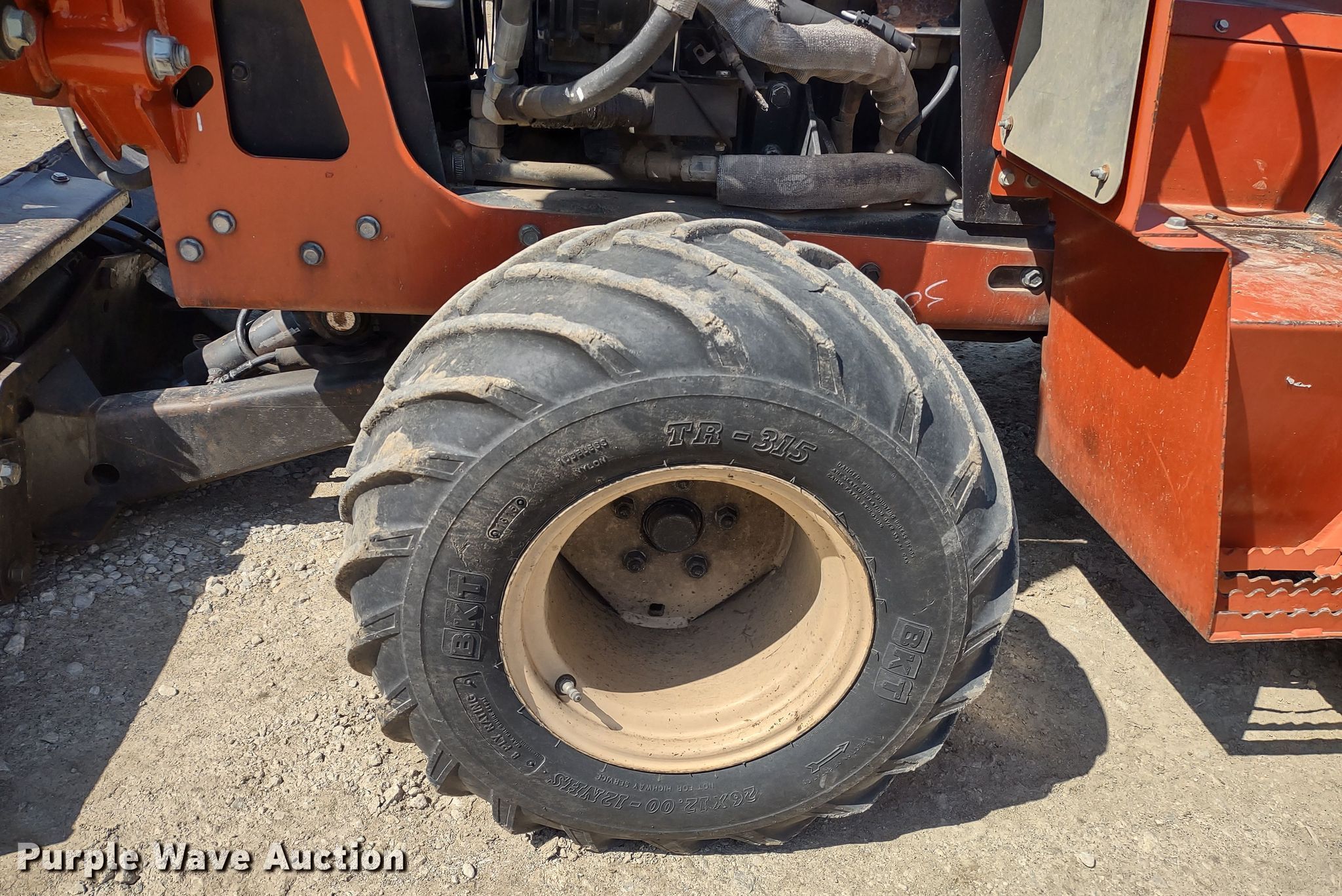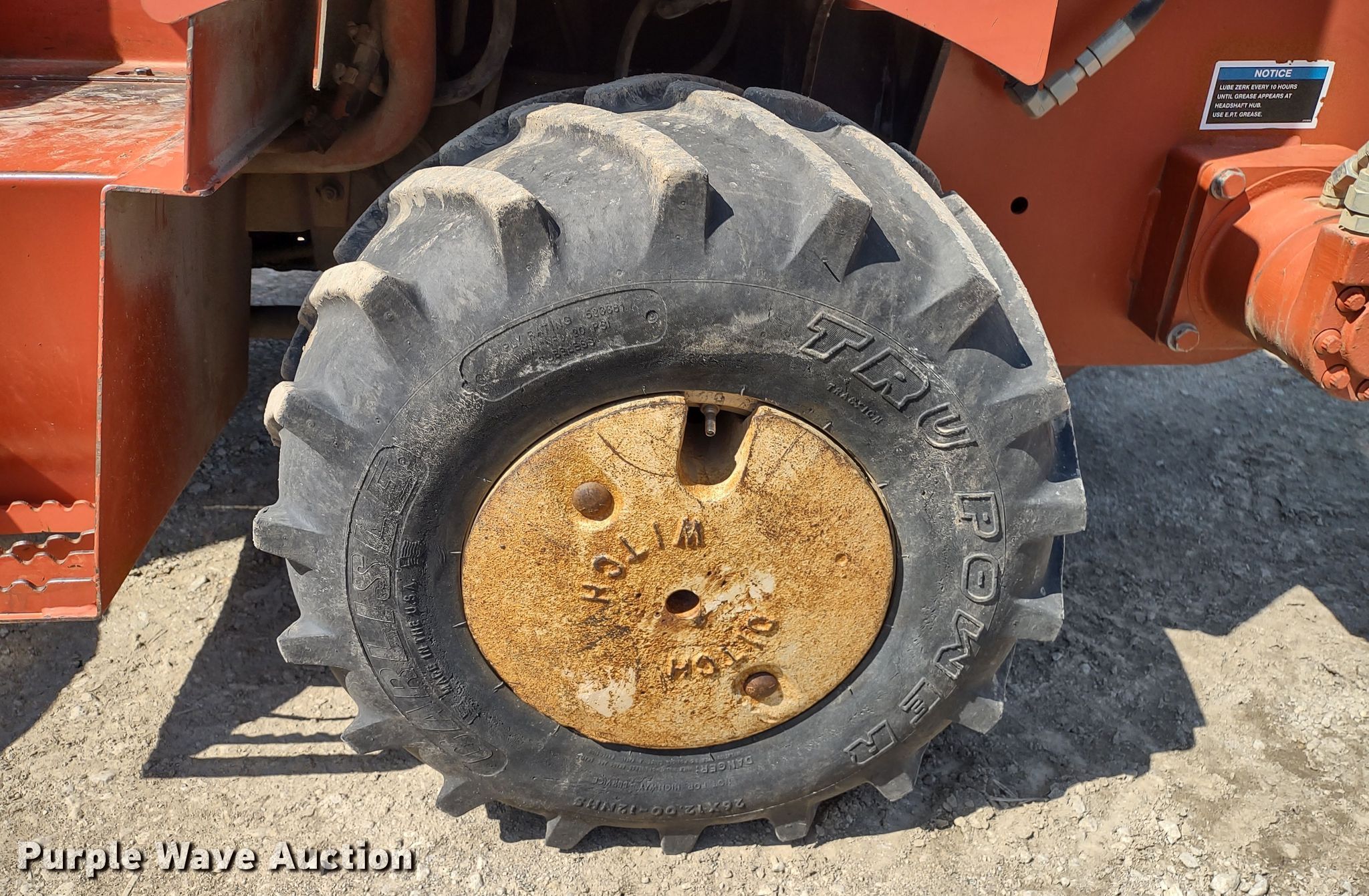 2007 Ditch Witch RT40 trencher. Hours: 1,723 on meter, Serial: CMWRT40XK70001562. Engine Deutz F 3M 2011, Cylinders: 3, Fuel type: Diesel. Transmission Hydrostatic, Four wheel drive. Operators station OROPS. Features Trencher Model: H313, Serial: CMWH313XE60000474, Estimated dig depth: 76", Backhoe Model: A322, Serial: CMWA322XE70000310, Bucket width: 18", Backfill blade Width: 64". Tires Size: 26x12.00-12NHS, Wheel weights. Gerken Rent-All. 31600 Old KC Rd. Paola, KS 66071