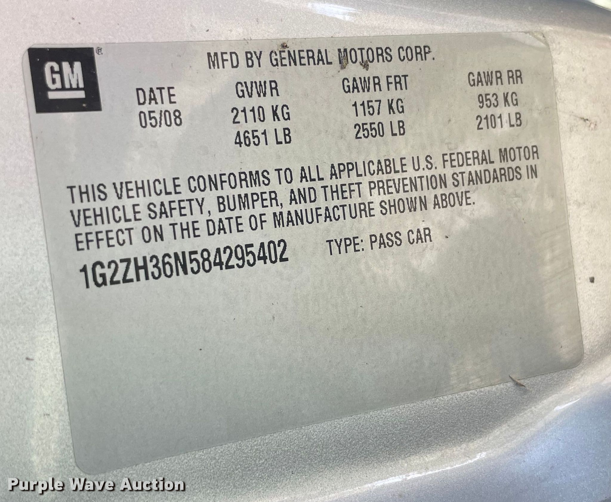 2008 Pontiac G6 GT convertible. Miles: 161,564 on odometer, VIN: 1G2ZH36N584295402. Engine Displacement: 3.5L V6 OHV, Cylinders: 6, Fuel type: Gas. Transmission Automatic. Interior AC, Heat, Seat: Power driver, Power windows, Power locks, Cruise control. Tires Size: 225/50R18. Notes Dash warning indicator: ABS, Brake, Traction control, Non-operational convertible, Hail damage, Dead battery, Parts may be missing. Oklahoma title. Title distribution may be delayed up to 30 days from verification of funds. George W Smith Wrecker & Salvage. 12521 Oklahoma 3W. Ada, OK 74820