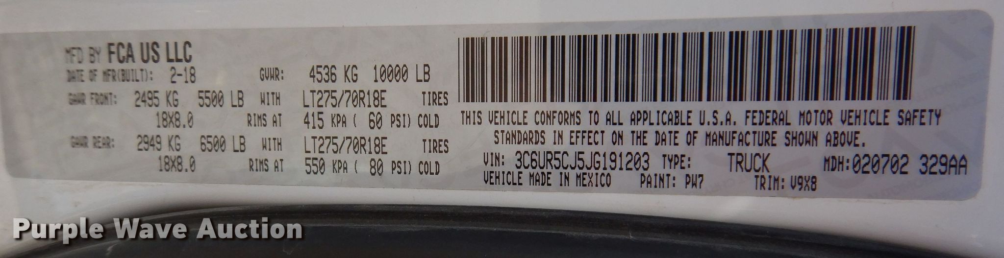 - VIN: 3C6UR5CJ5JG191203