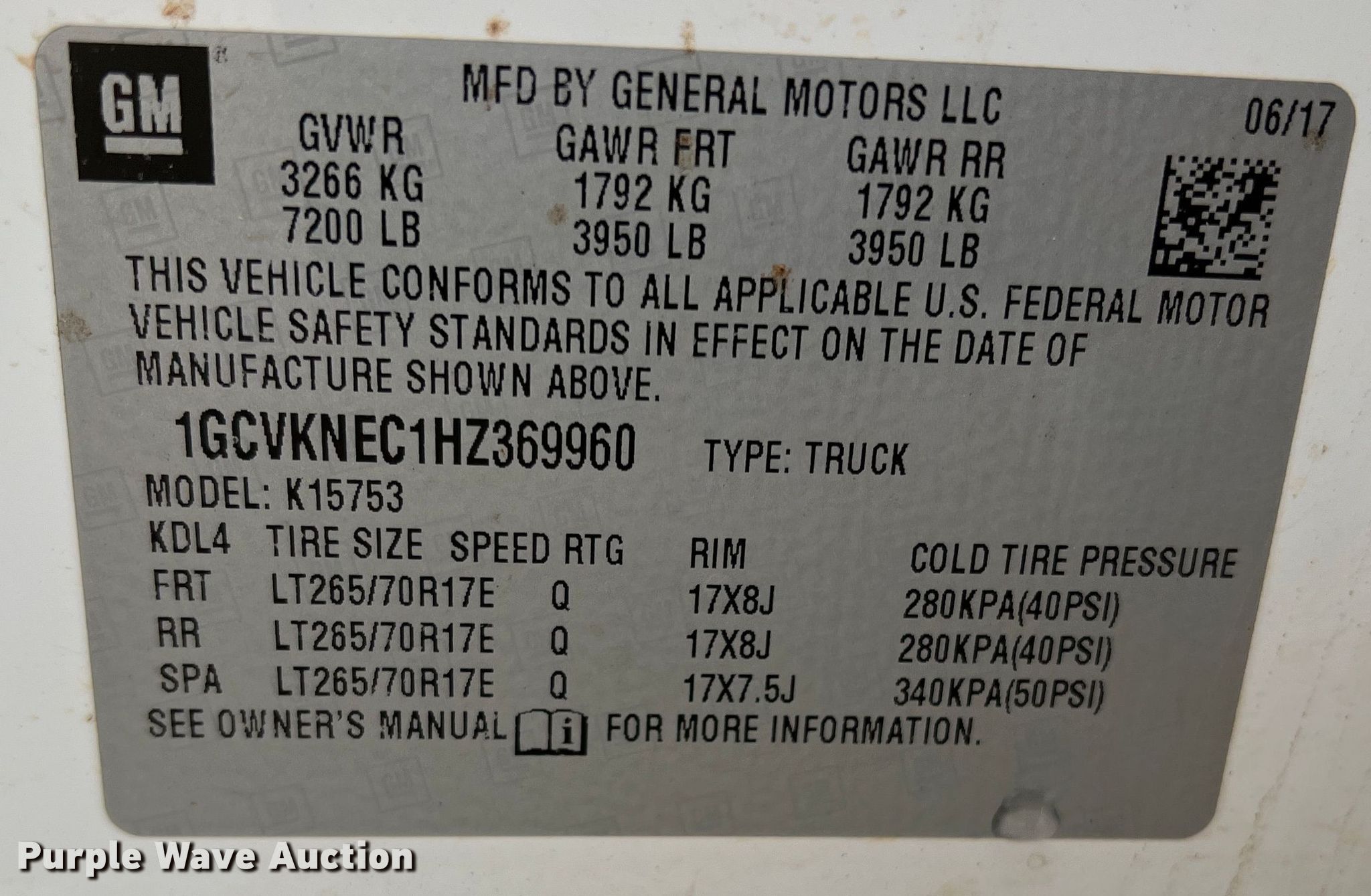 Purple Wave is selling a used 1/2 Ton Pickup or Van in Oklahoma. This item is a 2017 Chevrolet Silverado 1500 Double Cab pickup truck with the following: Miles: 132,758 on odometer, VIN: 1GCVKNEC1HZ369960
