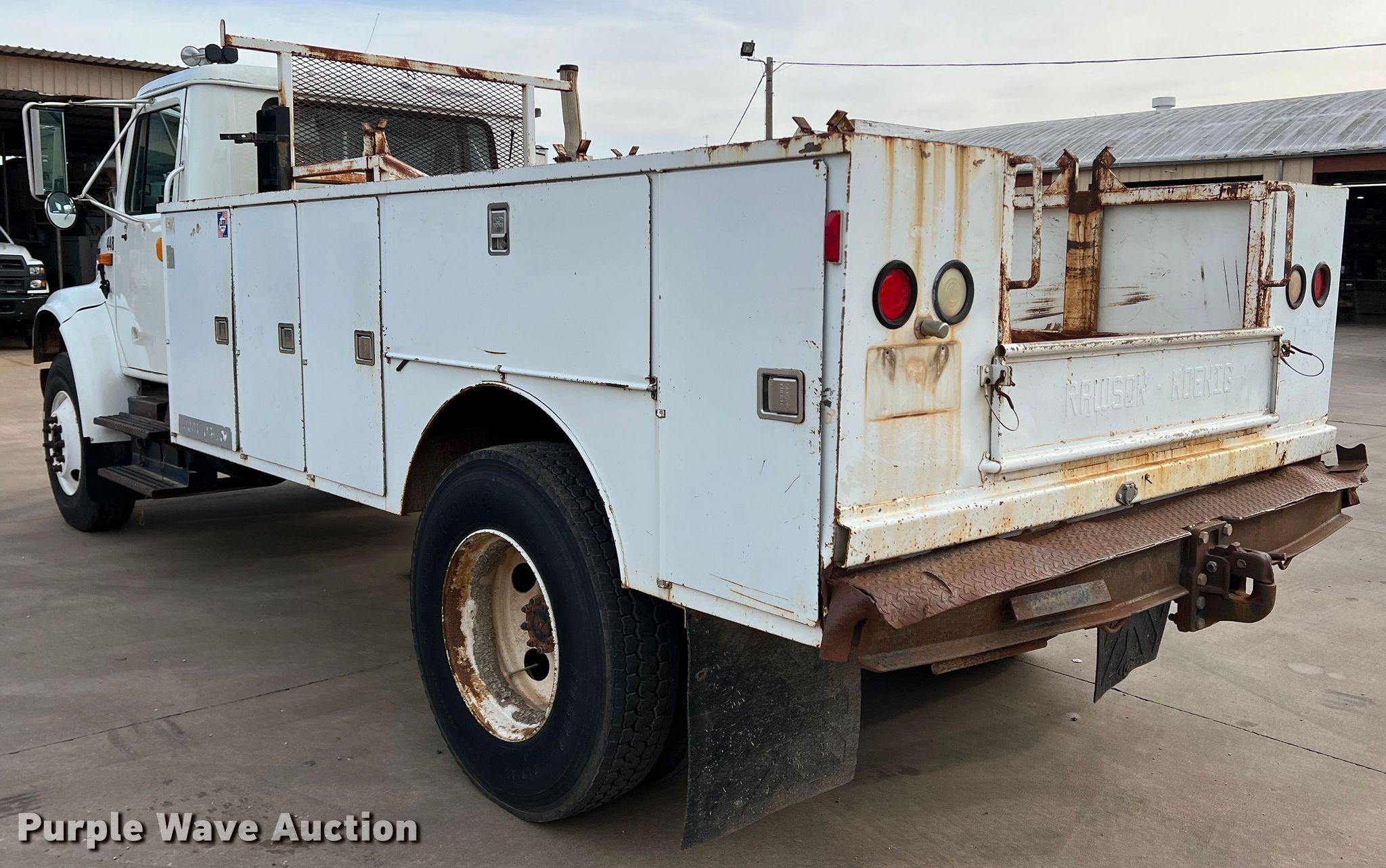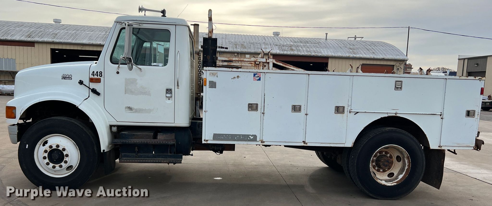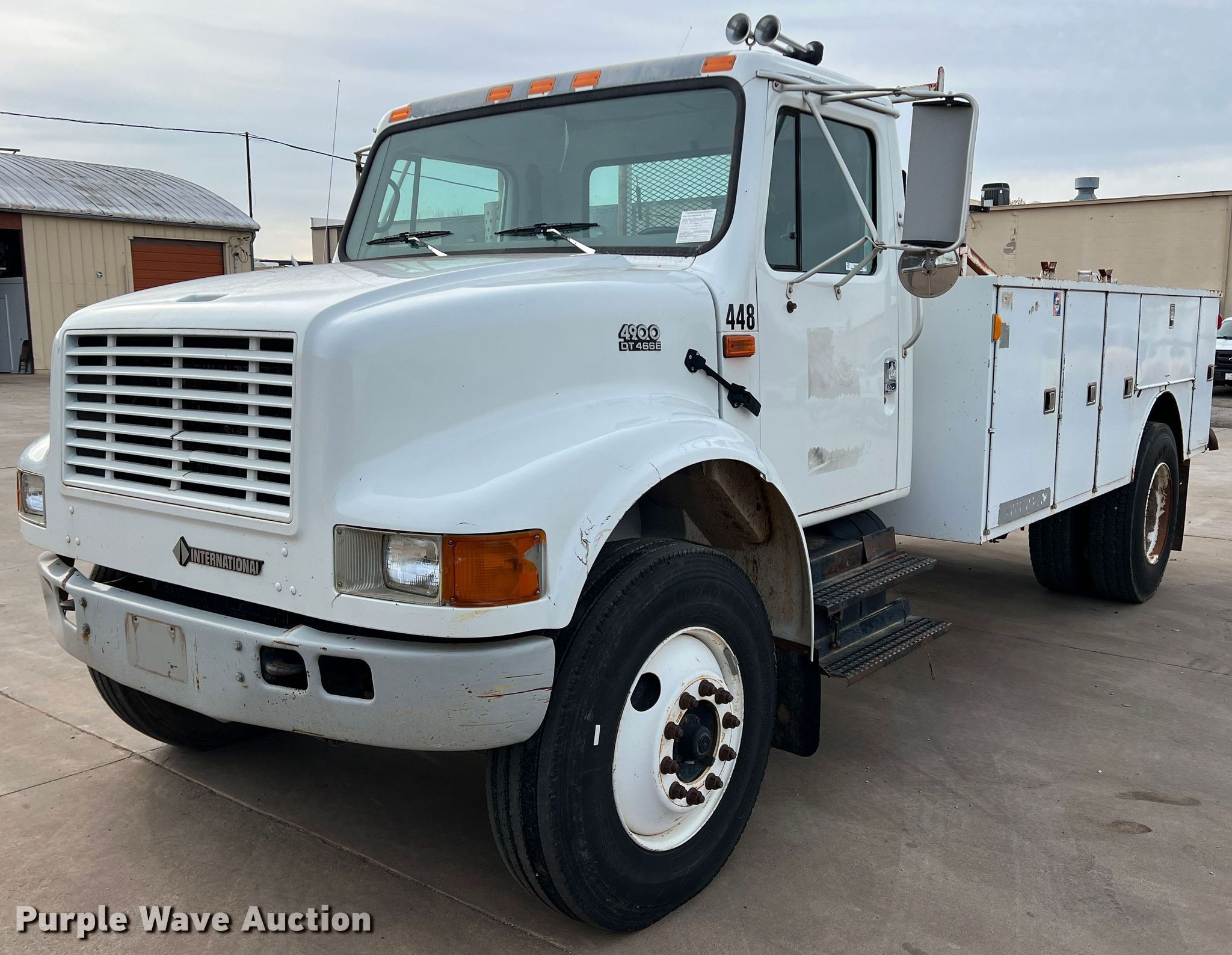 Purple Wave is selling a used Service Truck in Oklahoma. This item is a 2001 International 4900 utility / service truck with the following: Miles: 197,229 on odometer, Hours: 9,541 on meter, VIN: 1HTSDAAN51H387938, Unit #: 448