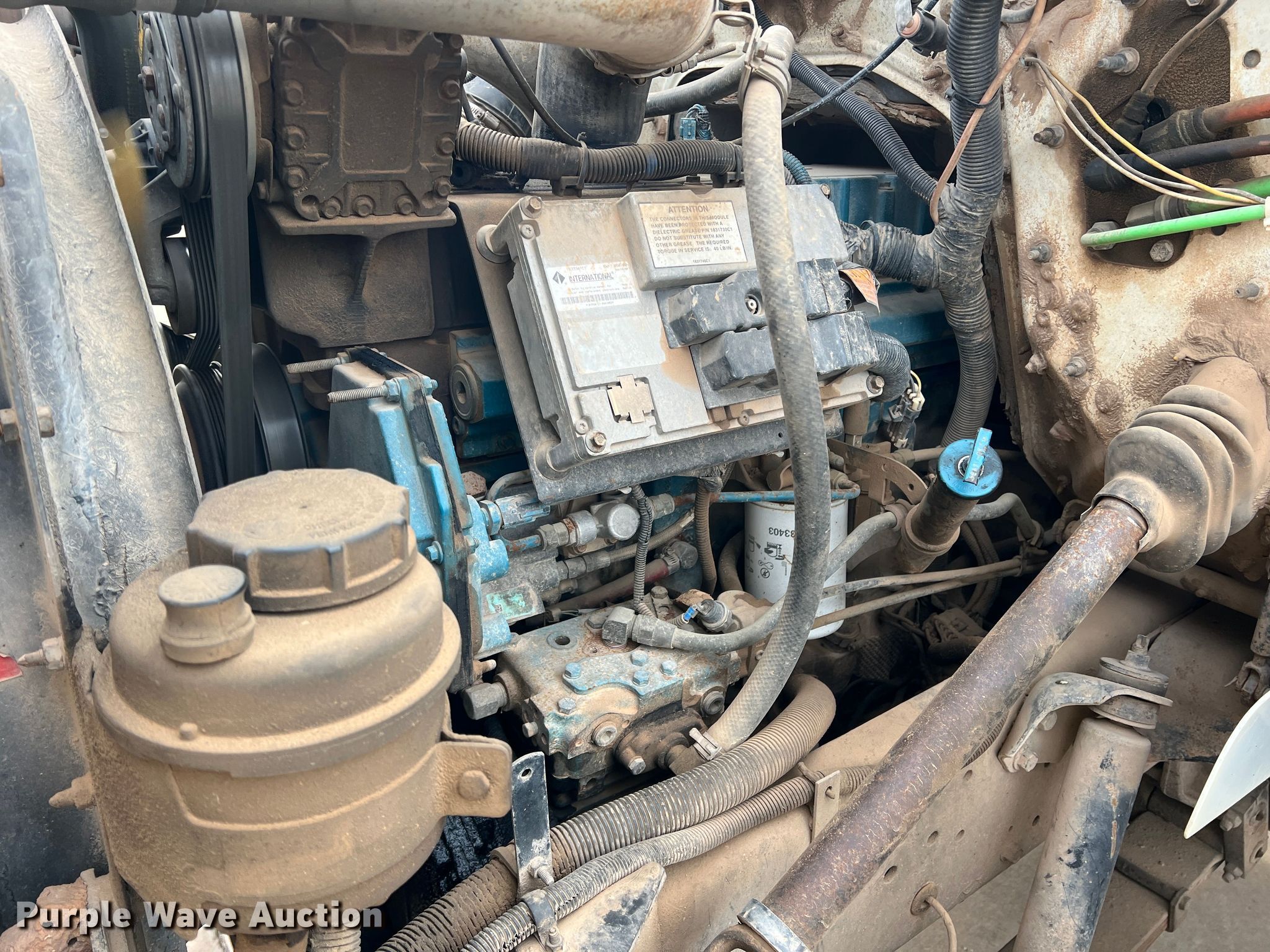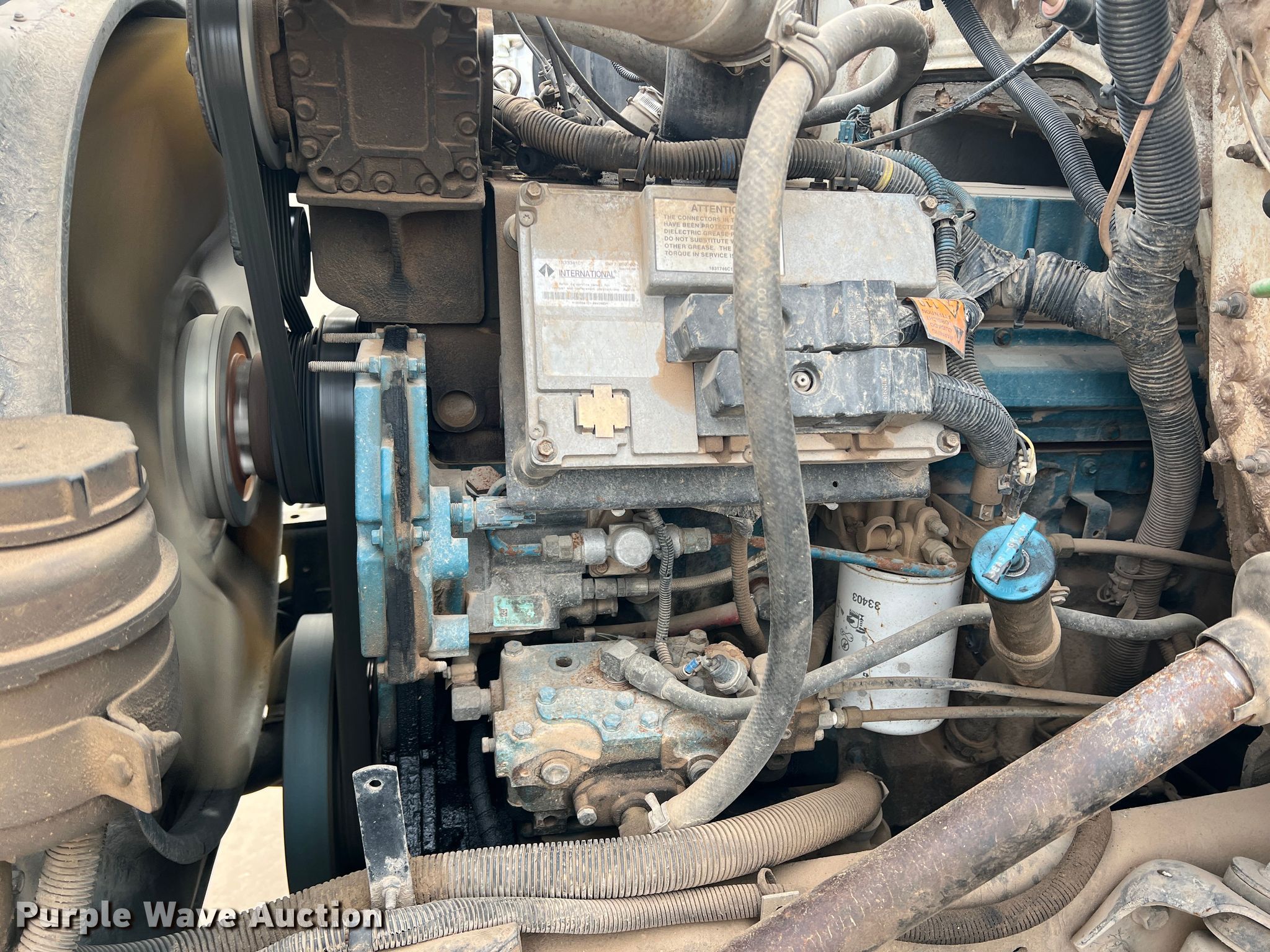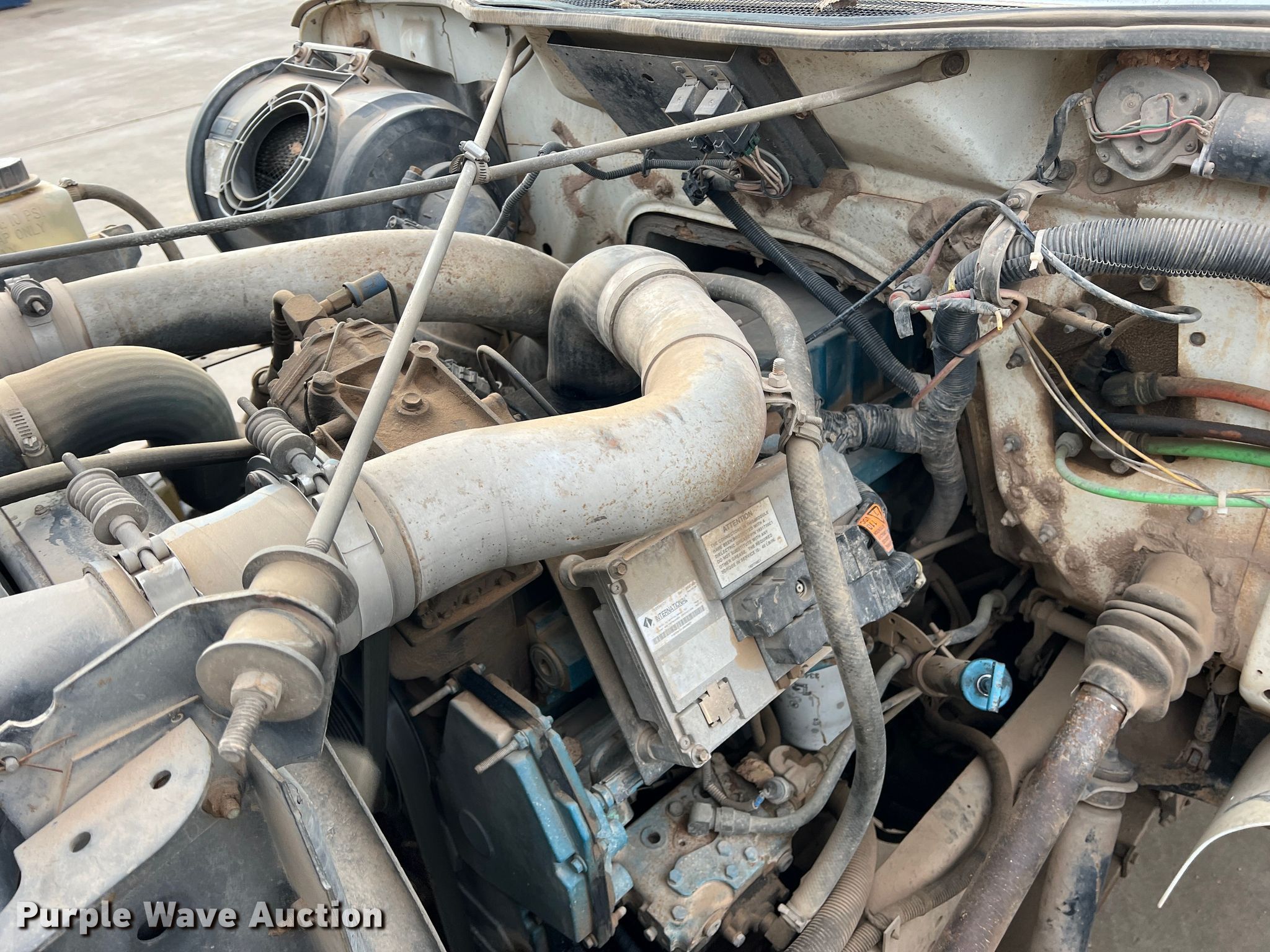 2001 International 4900 utility / service truck. Miles: 197,229 on odometer, Hours: 9,541 on meter, VIN: 1HTSDAAN51H387938, Unit #: 448. Engine Cylinders: 6, Fuel type: Diesel. Transmission Eaton Fuller, Manual, Speed: 8. Chassis Axles: Single, Suspension: Spring, Brakes: Air. Interior AC, Heat, Heated mirrors, Cruise control. Features Bed 13' L x 8' W. Tires Size: 11R22.5. Notes Intermittent dash illumination issues Possible wiring issues. Oklahoma title. Title distribution may be delayed up to 14 days from verification of funds. Cotton Electric COOP. 226 Broadway. Walters, OK 73572