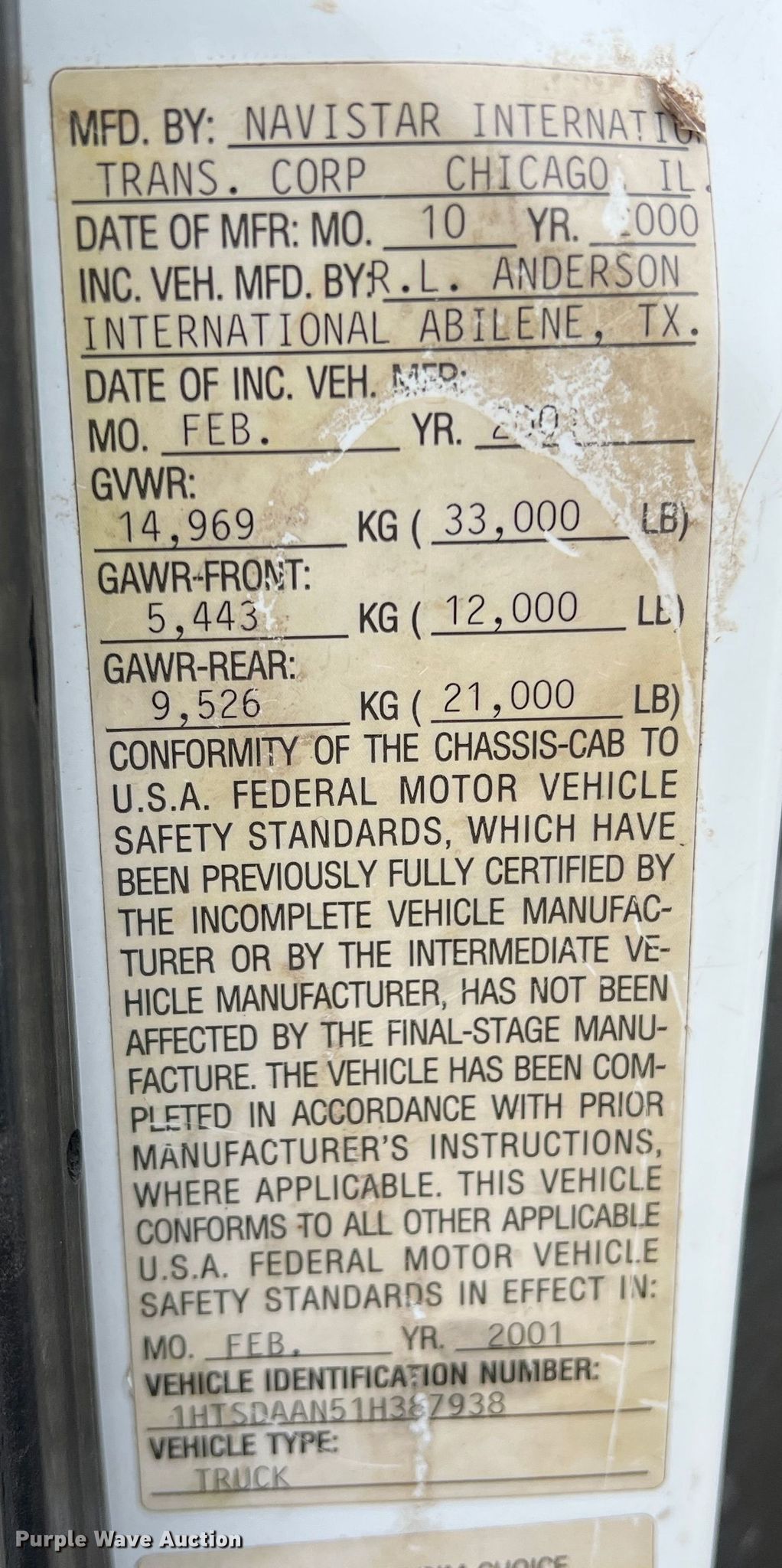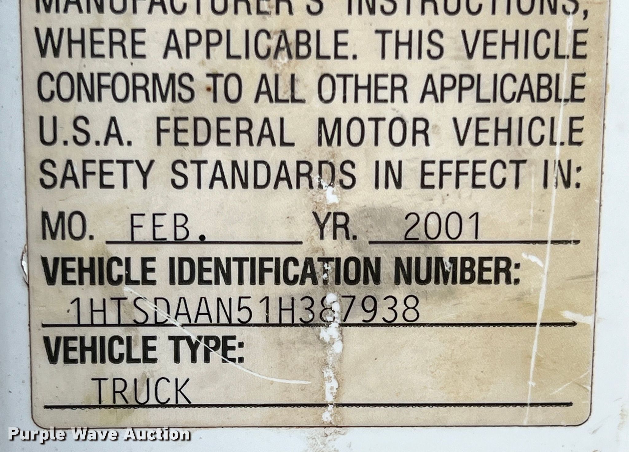 • VIN: 1HTSDAAN51H387938