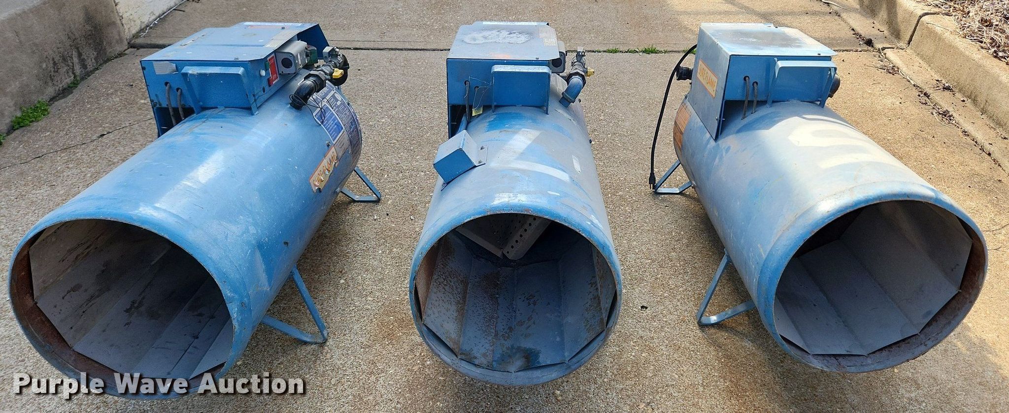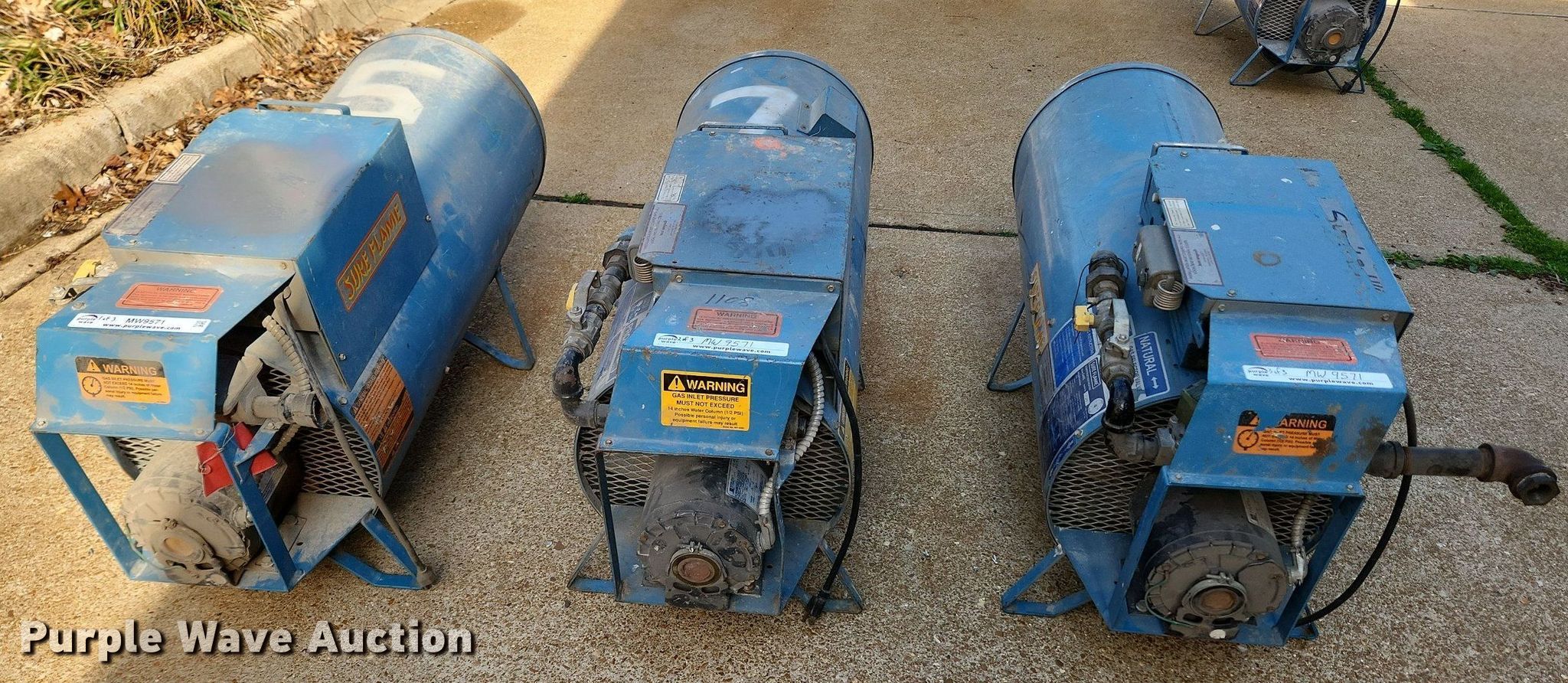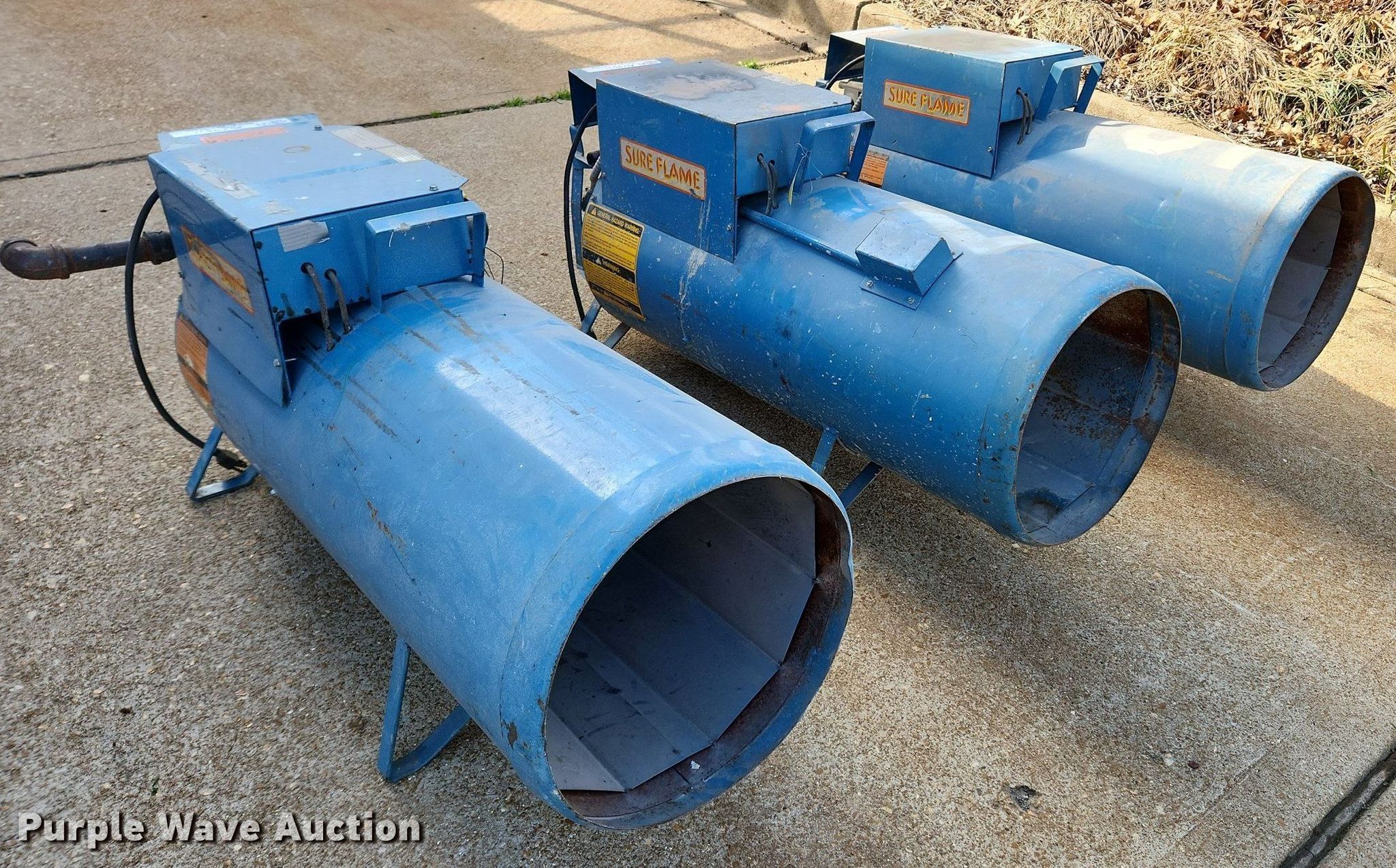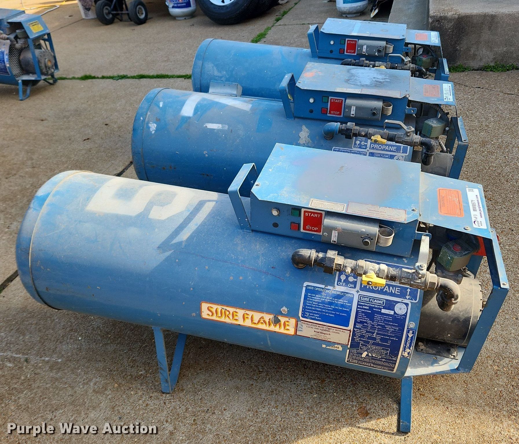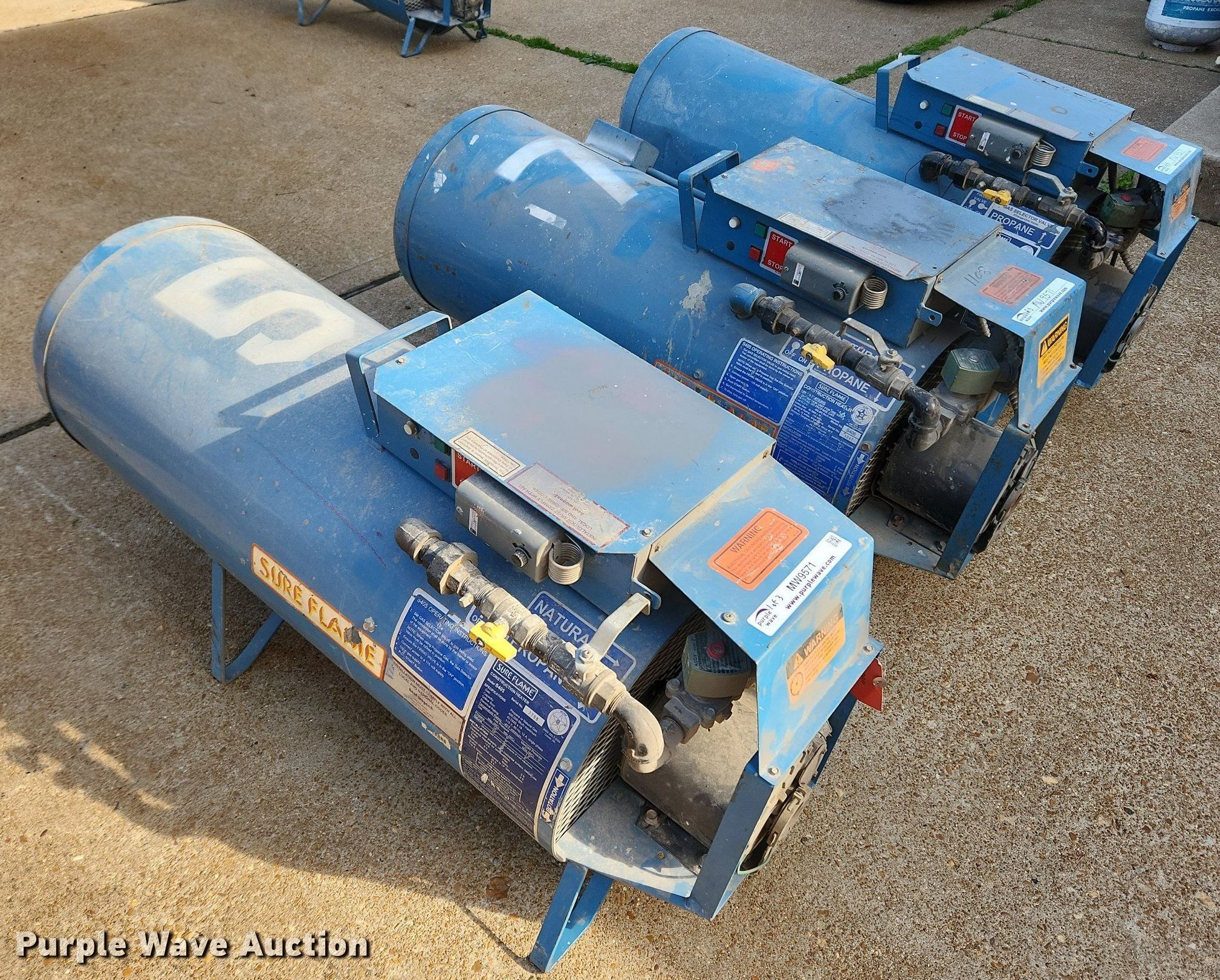 Purple Wave is selling a used Portable Heater or Fan in Missouri. This item is a (3) Sure Flame S405 heaters with the following: Volts: 115, Phase: Single, BTU: 400,000, Fuel type: LPG