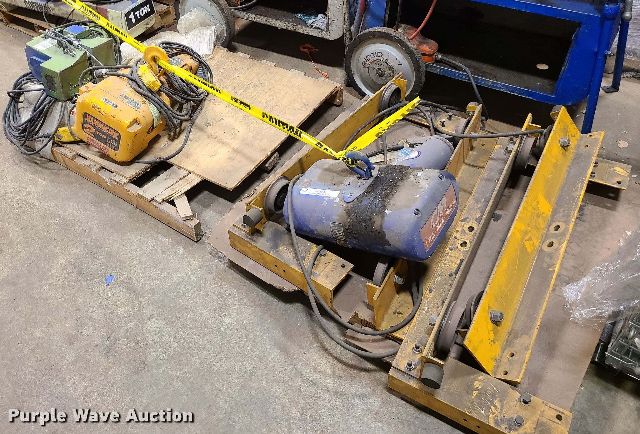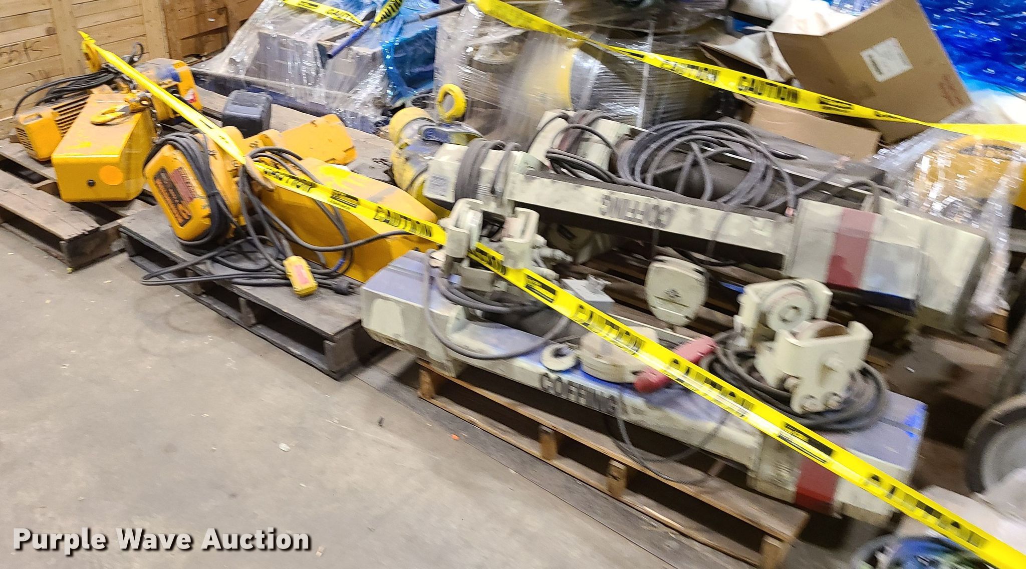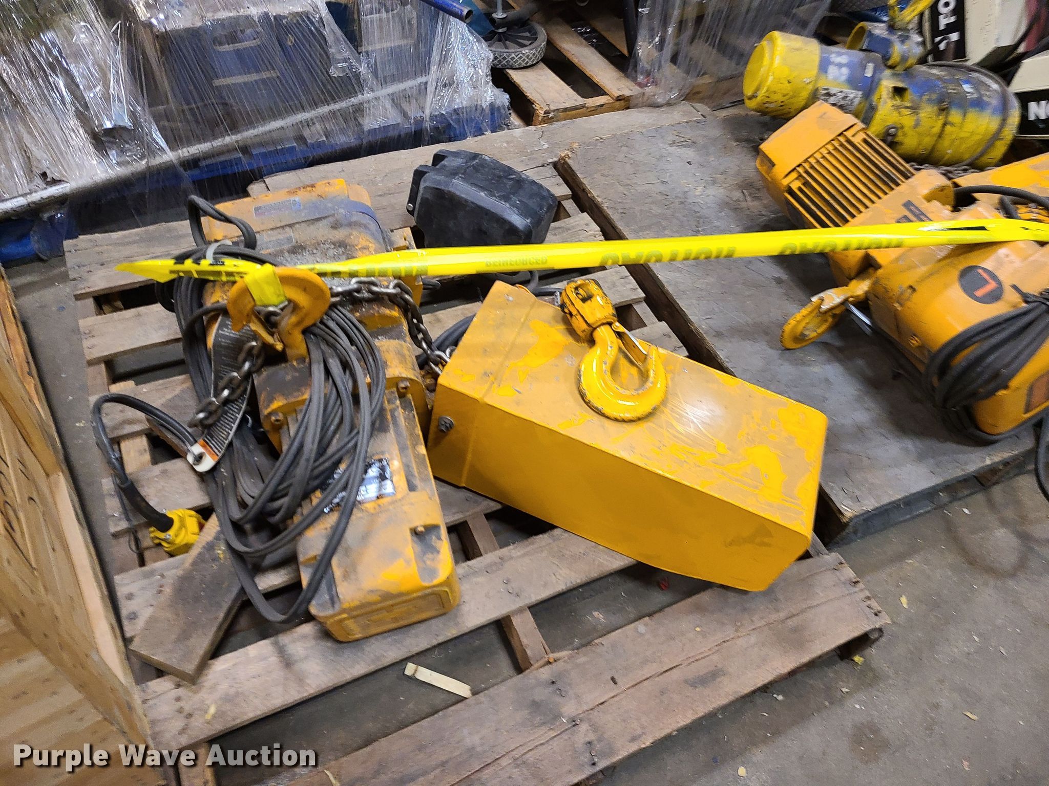 Purple Wave is selling a used Tools in Missouri. This item is a (9) hoists with the following: (3) Harrington, Capacity: 2 tons, Yale, Capacity: 2 tons, (3) Coffins, Capacity: 1 ton, CM, Capacity: 1 ton, Minifor TR50, Unknown operating conditions