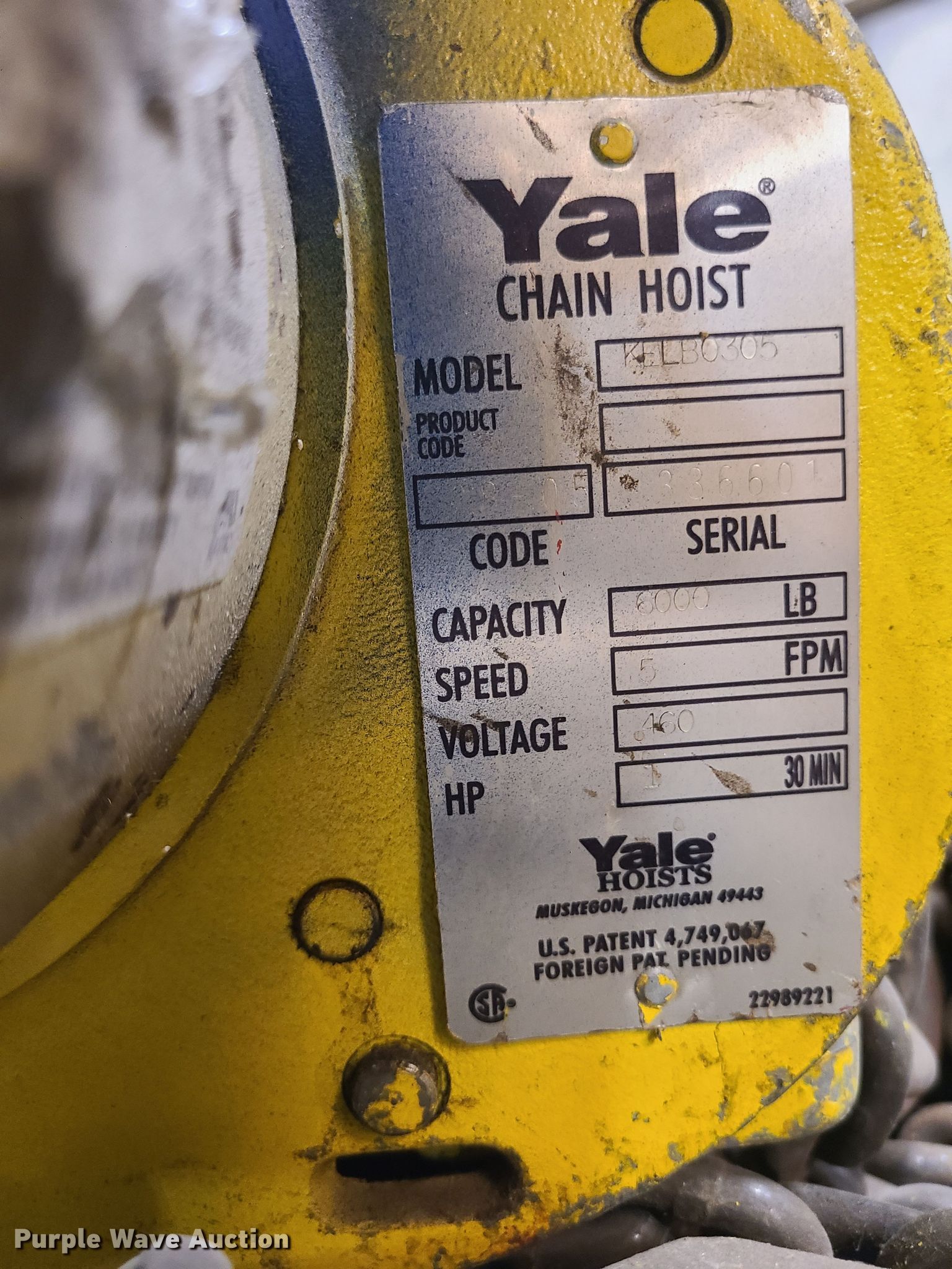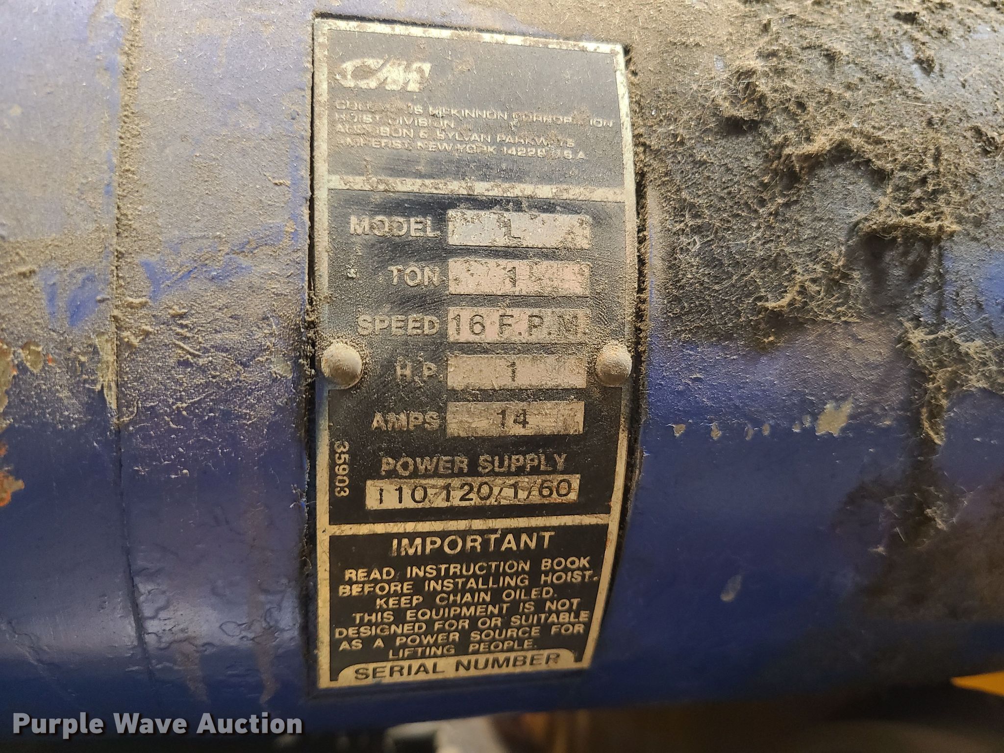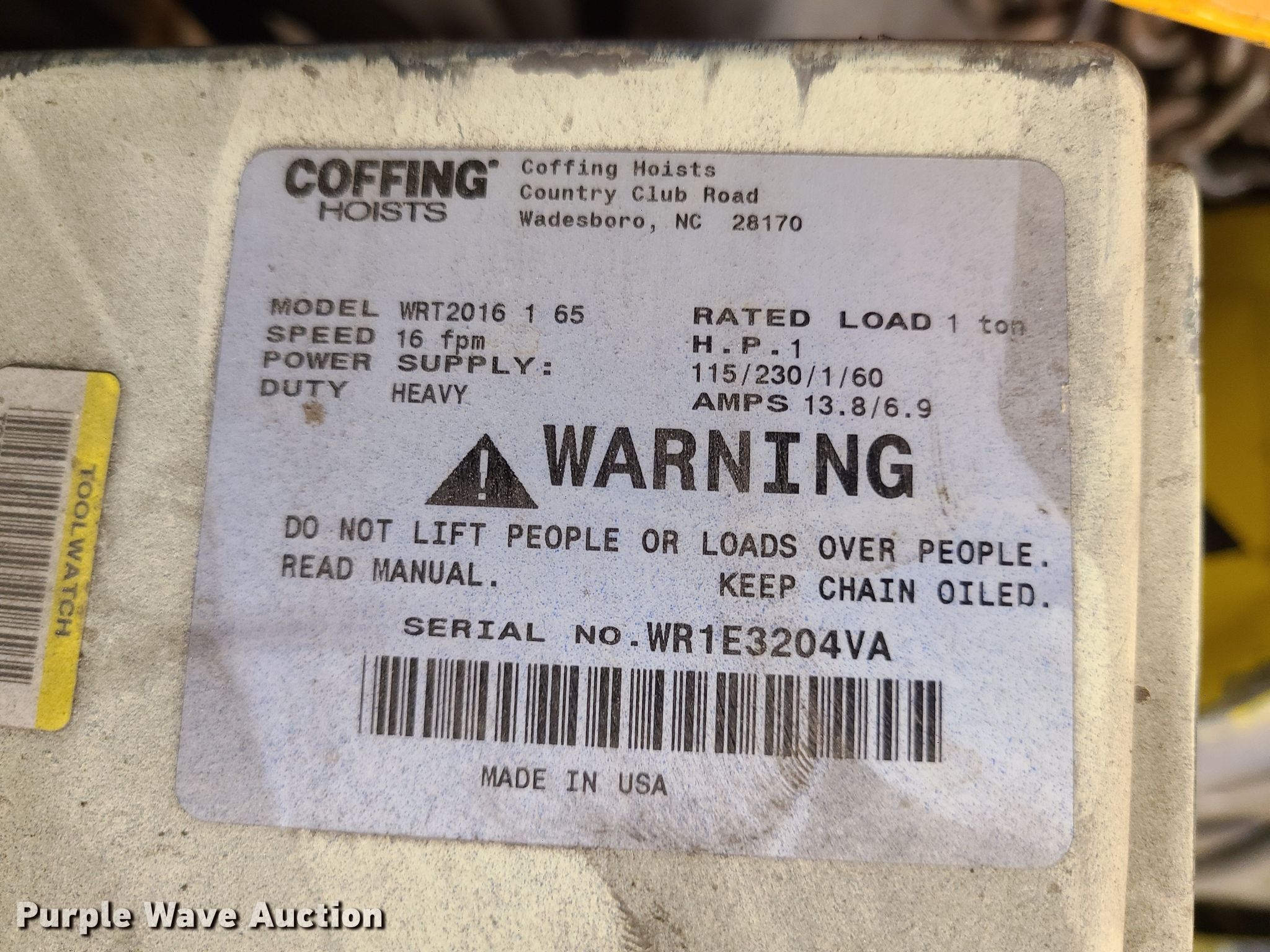 Purple Wave is selling a used Tools in Missouri. This item is a (9) hoists with the following: (3) Harrington, Capacity: 2 tons, Yale, Capacity: 2 tons, (3) Coffins, Capacity: 1 ton, CM, Capacity: 1 ton, Minifor TR50, Unknown operating conditions