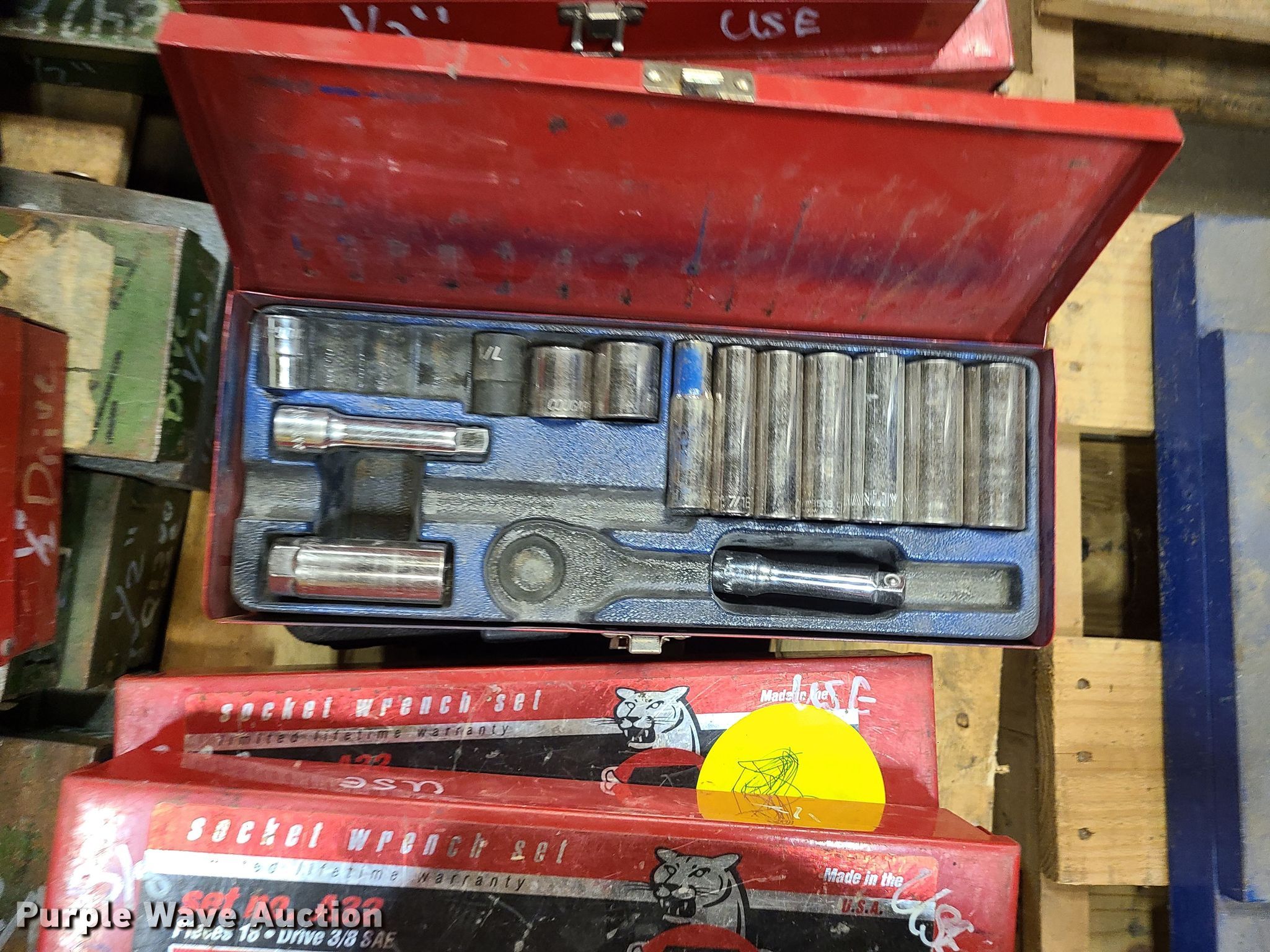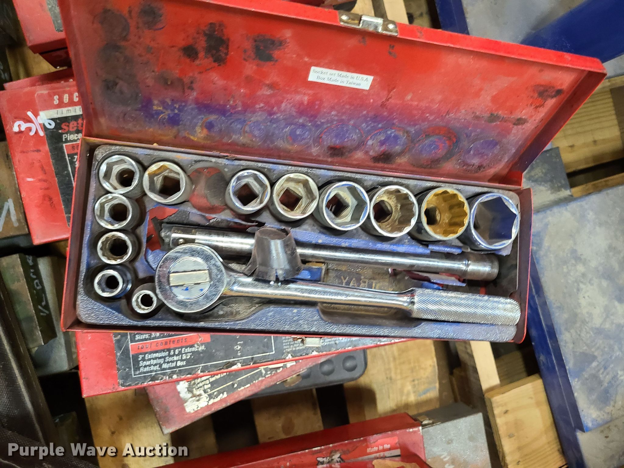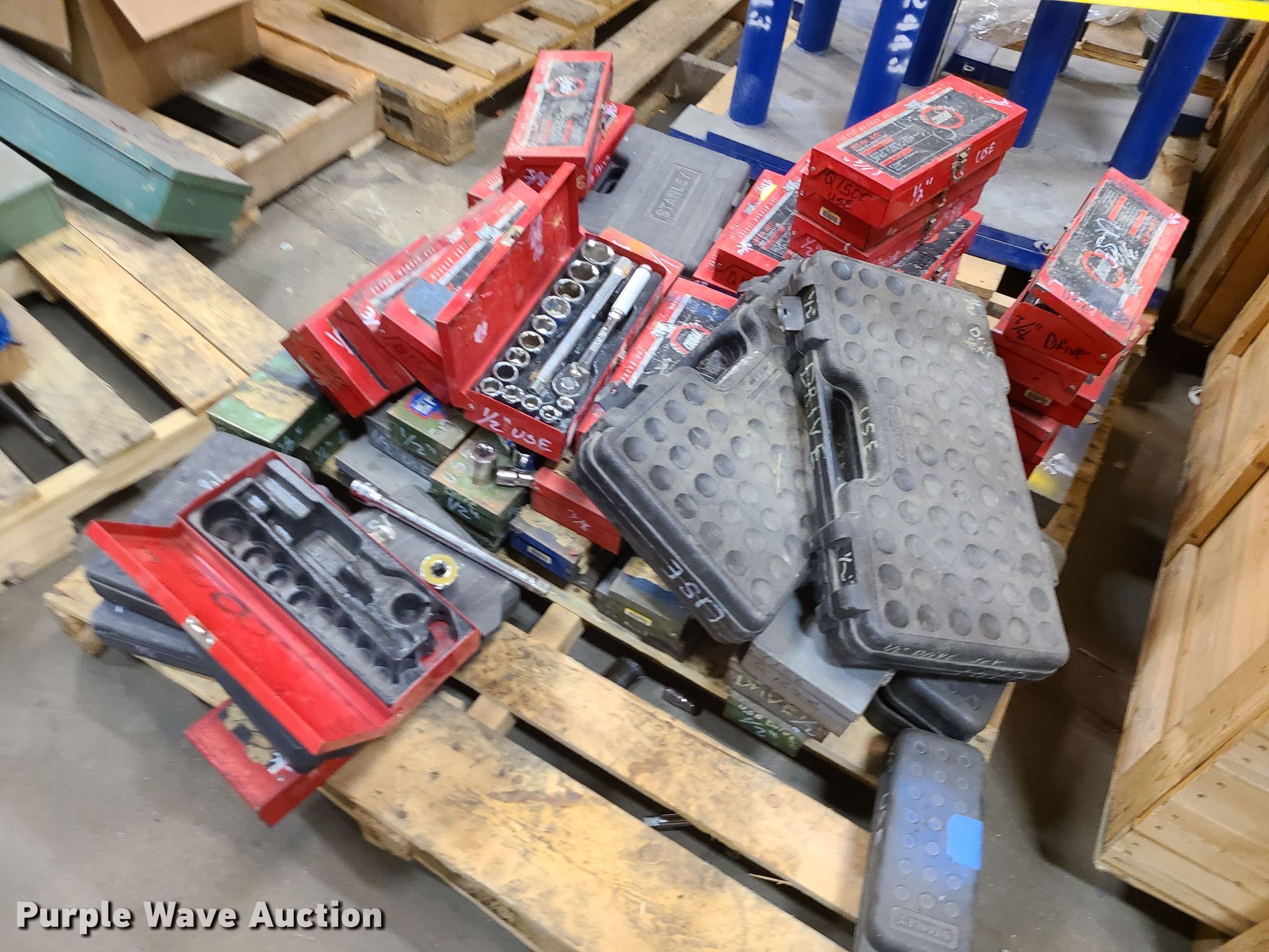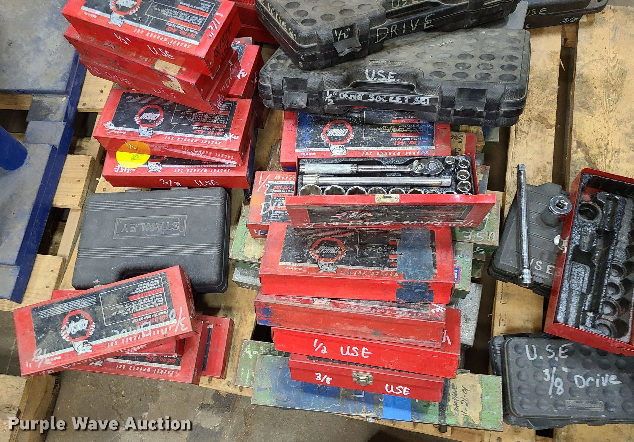 Purple Wave is selling a used Tools in Missouri. This item is a Tools with the following: Wrenches, Sockets, Socket sets, Parts may be missing, Flange spreader, 55 gallon drum stand