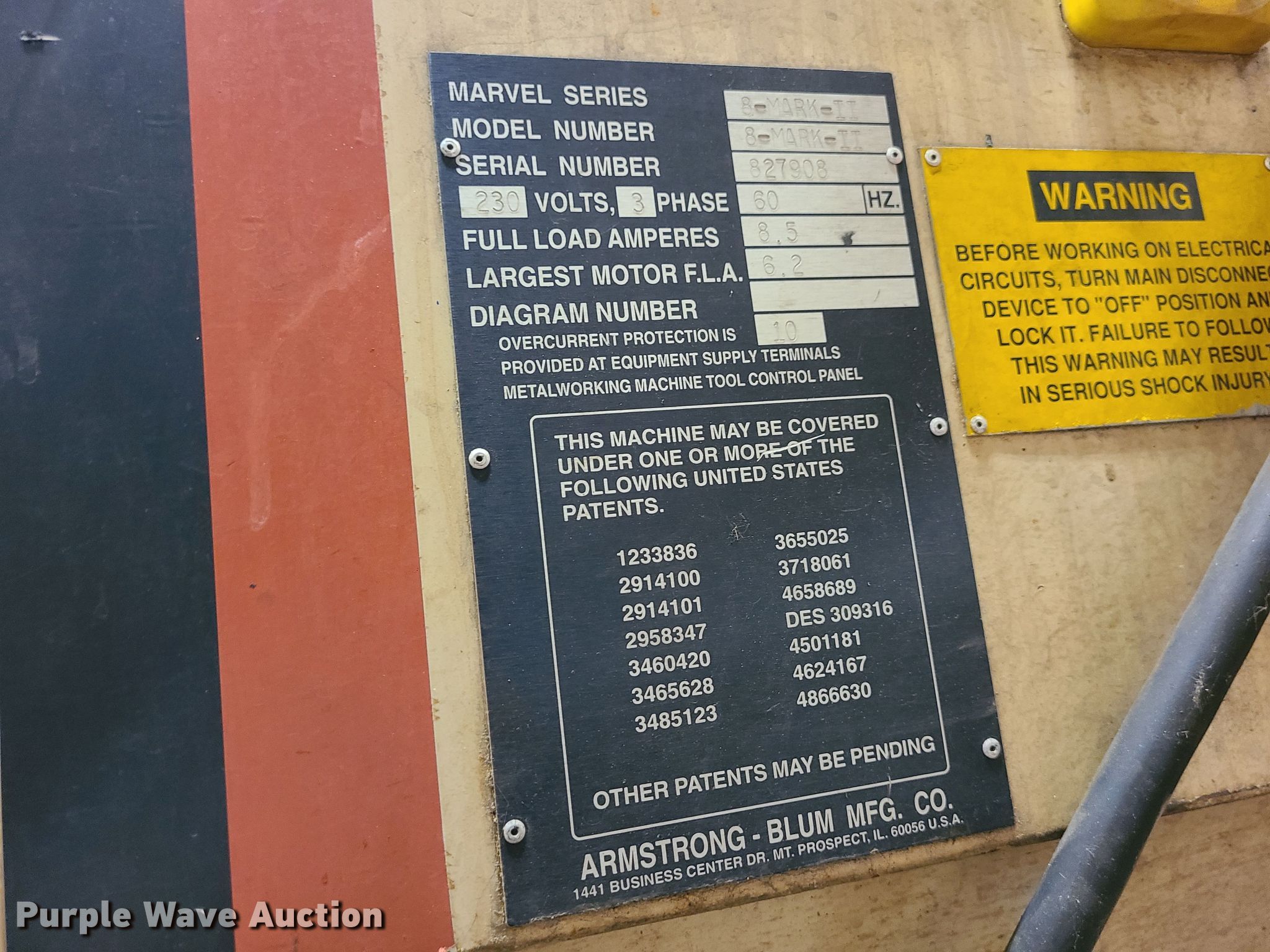 Purple Wave is selling a used Tools in Missouri. This item is a Marvel 8-Mark II bandsaw with the following: 230V, Three phase