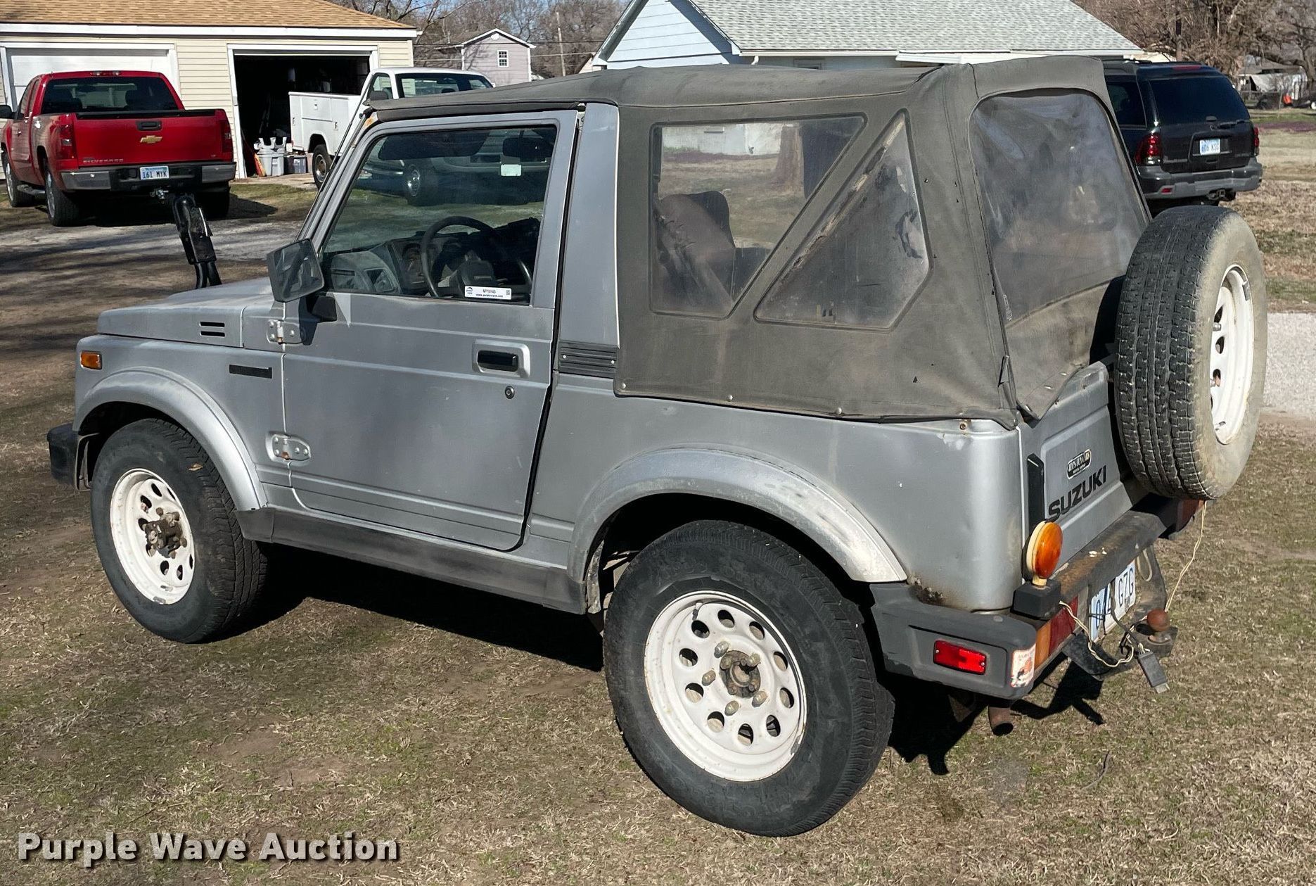 1988 Suzuki Samurai SUV. Miles: 35,879 on odometer, VIN: JS4JC51C1J4273442. Engine Displacement: 1.3L L4 SOHC, Cylinders: 4, Fuel type: Gas. Transmission Manual, Speed: 5, Four wheel drive. Interior Heat. Tires Size: 205/75R15. Notes Blue Ox tow bar. Kansas title. Title distribution may be delayed up to 14 days from verification of funds. Wichita, KS 67217