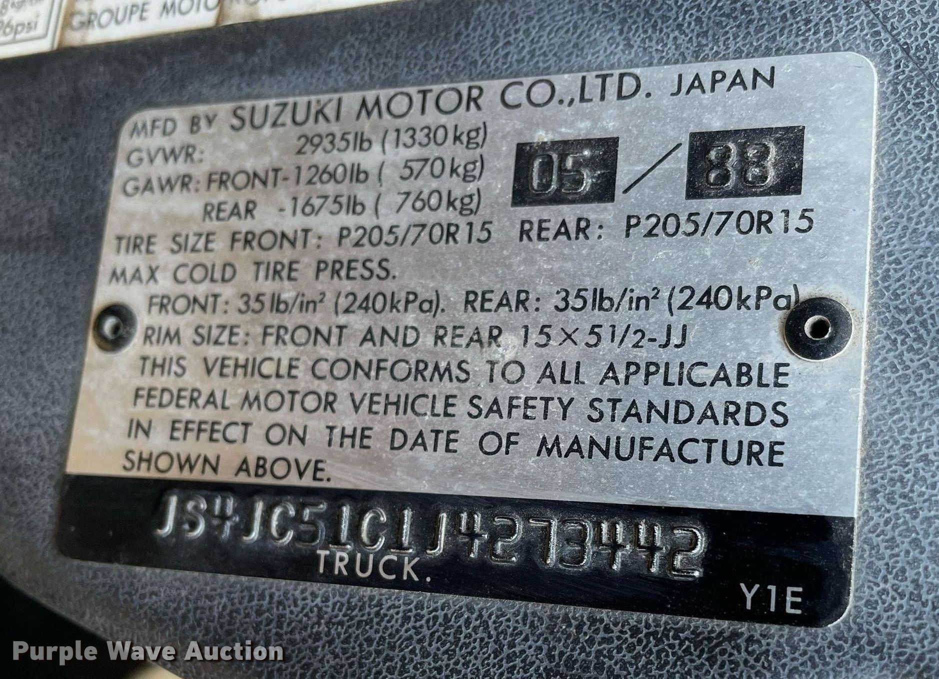 Purple Wave is selling a used Passenger Vehicle in Kansas. This item is a 1988 Suzuki Samurai SUV with the following: Miles: 35,879 on odometer, VIN: JS4JC51C1J4273442