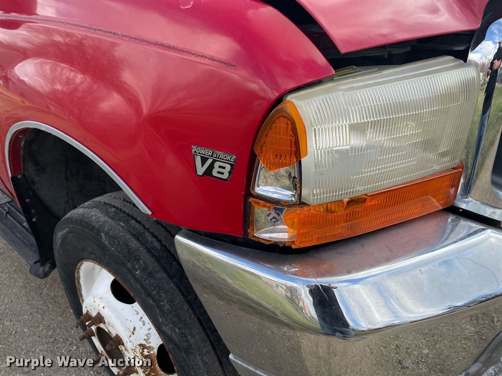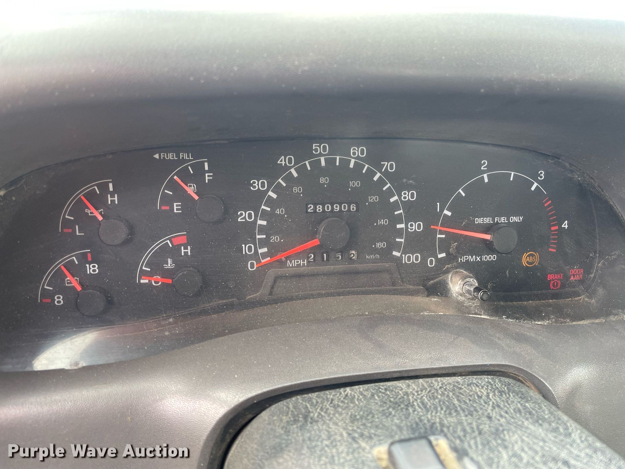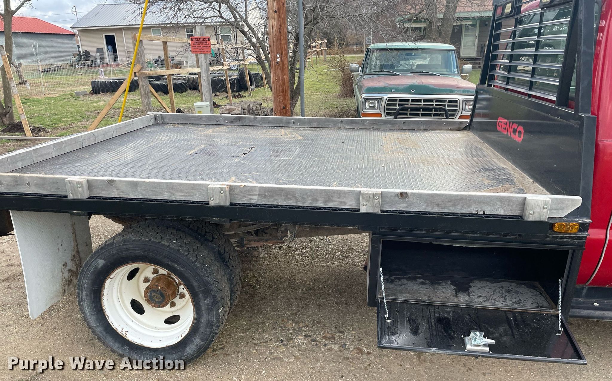 1999 Ford F550 Super Duty flatbed truck. Miles: 280,906 on odometer, VIN: 1FDAF56F9XEB09027. Engine Displacement: 7.3L V8 OHV, Cylinders: 8, Fuel type: Diesel. Transmission Manual, Speed: 6. Chassis Axles: Single, Suspension: Spring, Brakes: Hydraulic, GVWR: 17,500 lbs. Interior AC, Heat, Power windows, Power locks, Cruise control. Features Flatbed Genco, 11' 2" L x 100" W, Removable sides, Hitch: Gooseneck. Tires Size: 225/70R19.5. Notes Dash warning indicator: ABS, Brake, Hail damage, Dead battery. Kansas title. Title distribution may be delayed up to 14 days from verification of funds. Dwight, KS 66849