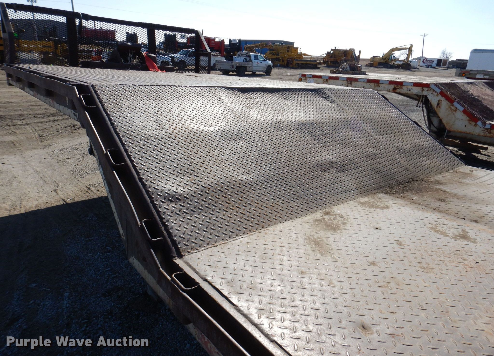 1999 Ledwell HT48102 drop deck trailer. VIN: 1L9GA72A7XL033851, Unit #: ST324. Dimensions Overall: 48' L x 102" W, Deck: 25' 6" L x 102" W, Top deck length: 8' 5", Deck height: 37", Hydratail length: 12', Ramps: Hydraulic. Features Deck type: Steel, Winch Tulsa, Hydraulic controls: Manual. Chassis Landing gear: Dual, Two speed, Suspension: Spring, Brakes: Air, Axles: Tandem, GVWR: 70,000 lbs, GAWR: 20,280 lbs. Tires Steel wheels, Size: 255/70R22.5. Iowa title. Title distribution may be delayed up to 14 days from verification of funds. Absolute Group Company. 1201 W. 6th Ave. Slater, IA 50244