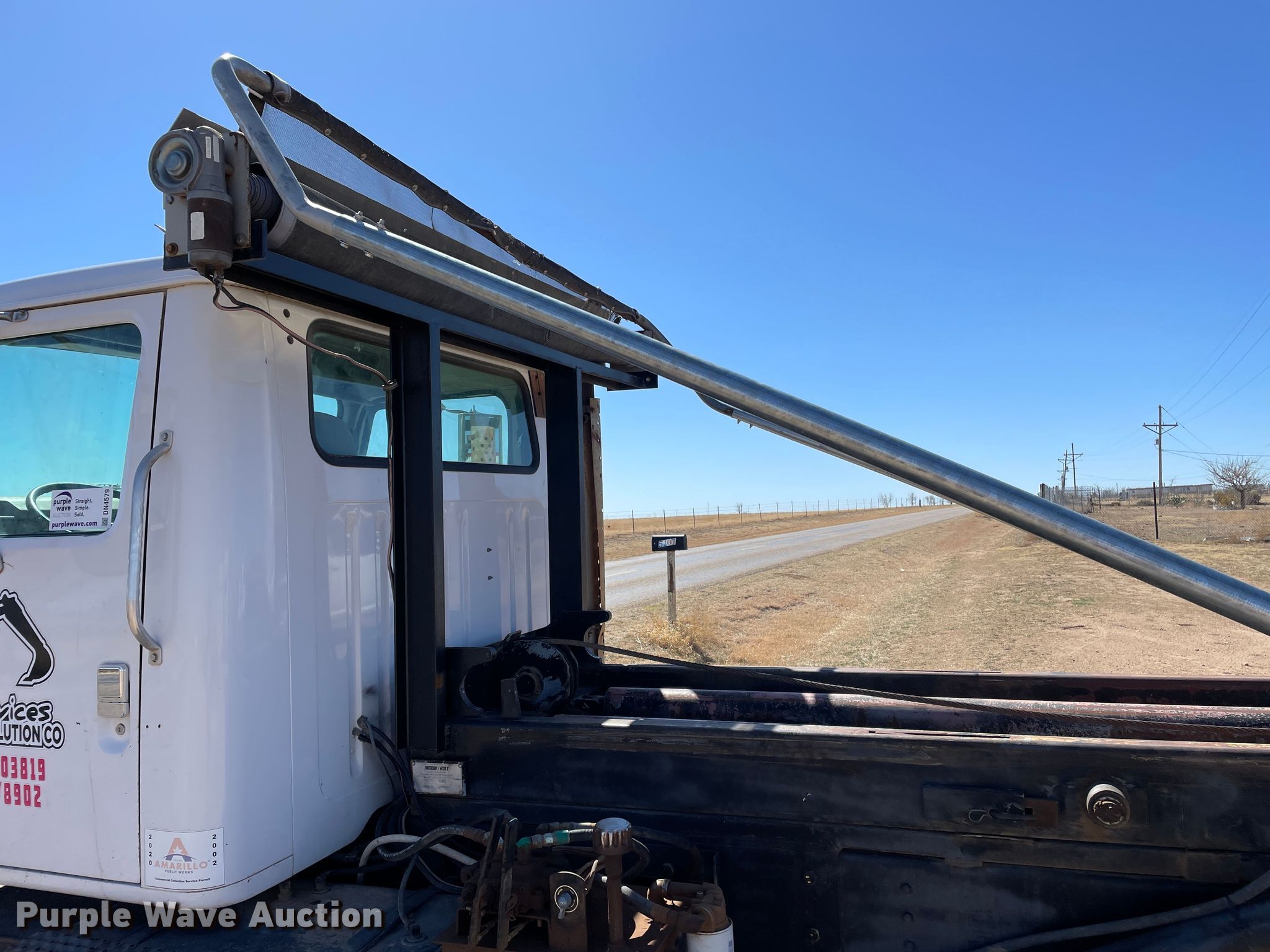 1997 International 4900 roll-off container truck. Miles: 646,634 on odometer, VIN: 1HTSDAAN9VH488714, Unit #: 15. Engine International DT466E, Displacement: 7.6L, Cylinders: 6, Fuel type: Diesel. Transmission Manual, Speed: 5. Chassis Axles: Single, Suspension: Spring, Brakes: Air, PTO, GVWR: 2,900 lbs. Interior AC, Heat, Heated mirrors, Cruise control. Features Roll-off bed Wastequip/Holt T140-192, Serial: 10073, 19' 8" L x 46" W, Roll tarp, Ram: Double, Winch. Tires Size: 295/75R22.5. Texas title. Title distribution may be delayed up to 14 days from verification of funds. R&J Services. 3101 Givens Ave. Amarillo, TX 79108