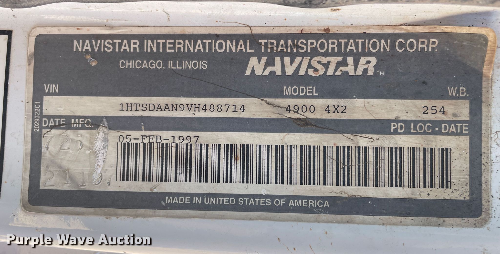 Purple Wave is selling a used Rollback or Tow Truck in Texas. This item is a 1997 International 4900 roll-off container truck with the following: Miles: 646,634 on odometer, VIN: 1HTSDAAN9VH488714, Unit #: 15
