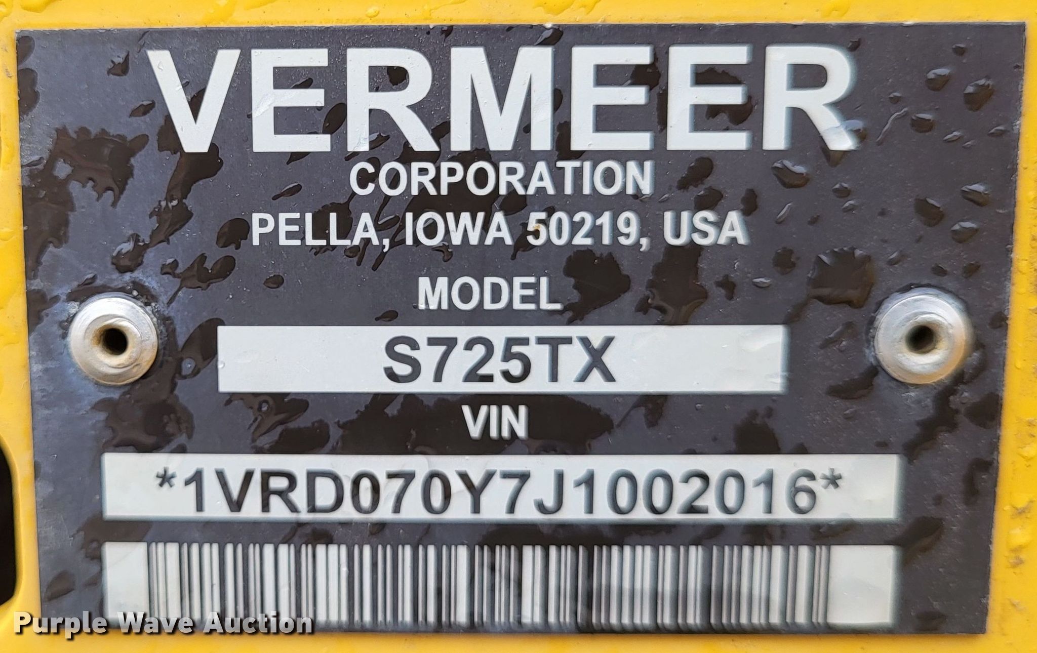 Purple Wave is selling a used Compact Utility Loader in Missouri. This item is a 2018 Vermeer S725TX compact utility loader with the following: Hours: 1,152 on meter, Serial: 1VRD070Y7J1002016
