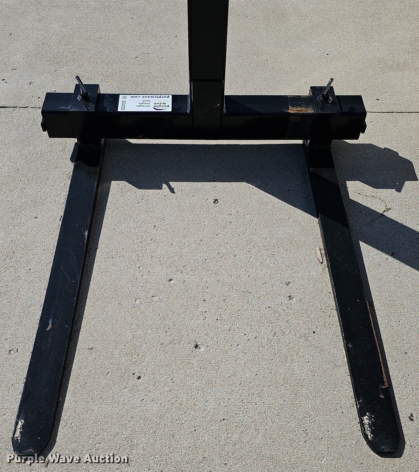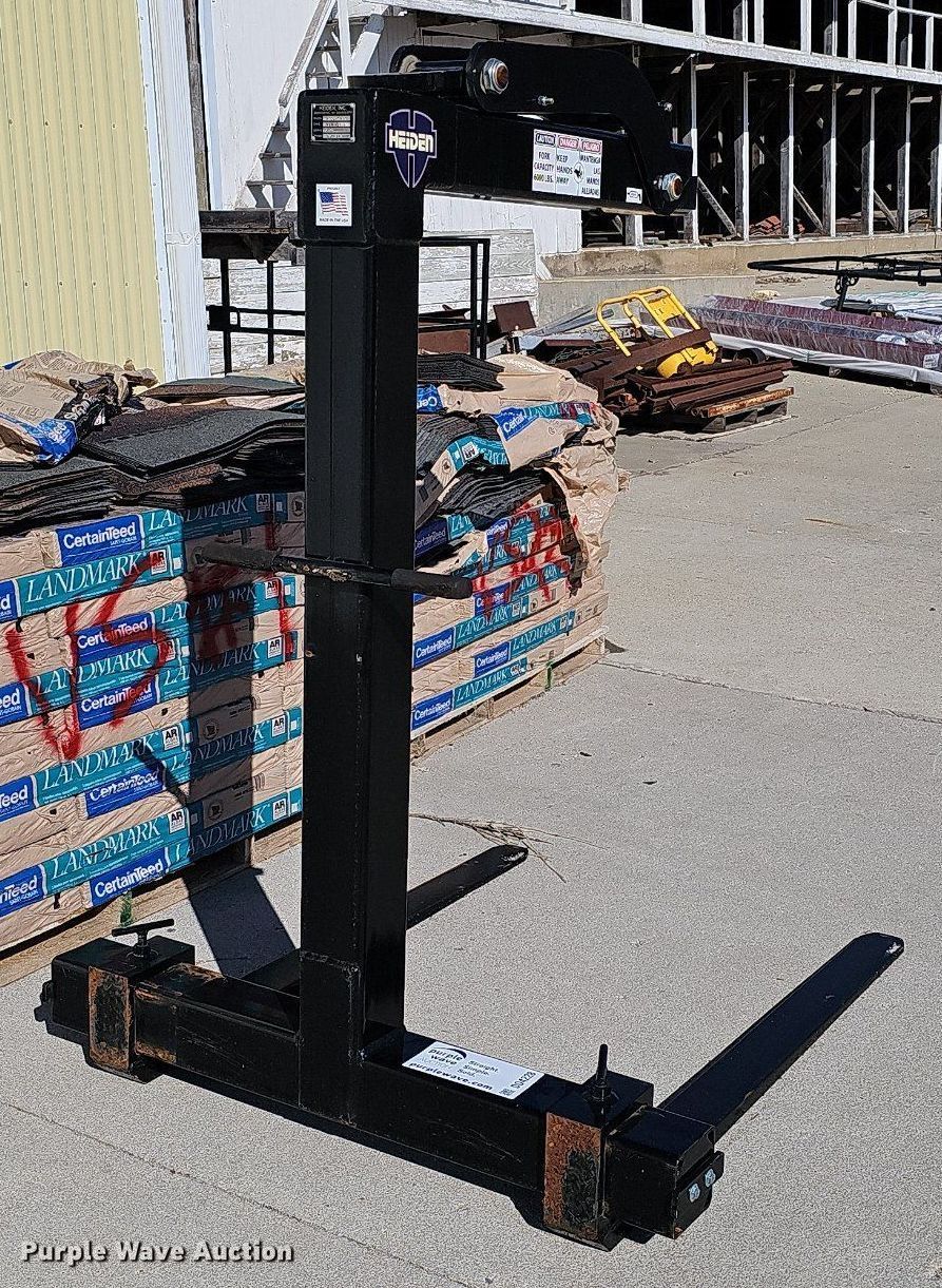 Heiden Inc HC10097-54 crane forks. Serial: 10333, Length: 46", Capacity: 420 lbs, Self leveling. Notes Unused. MODERN ROOFING LLC. 2112 Elm Street. Elk Horn, IA 51531