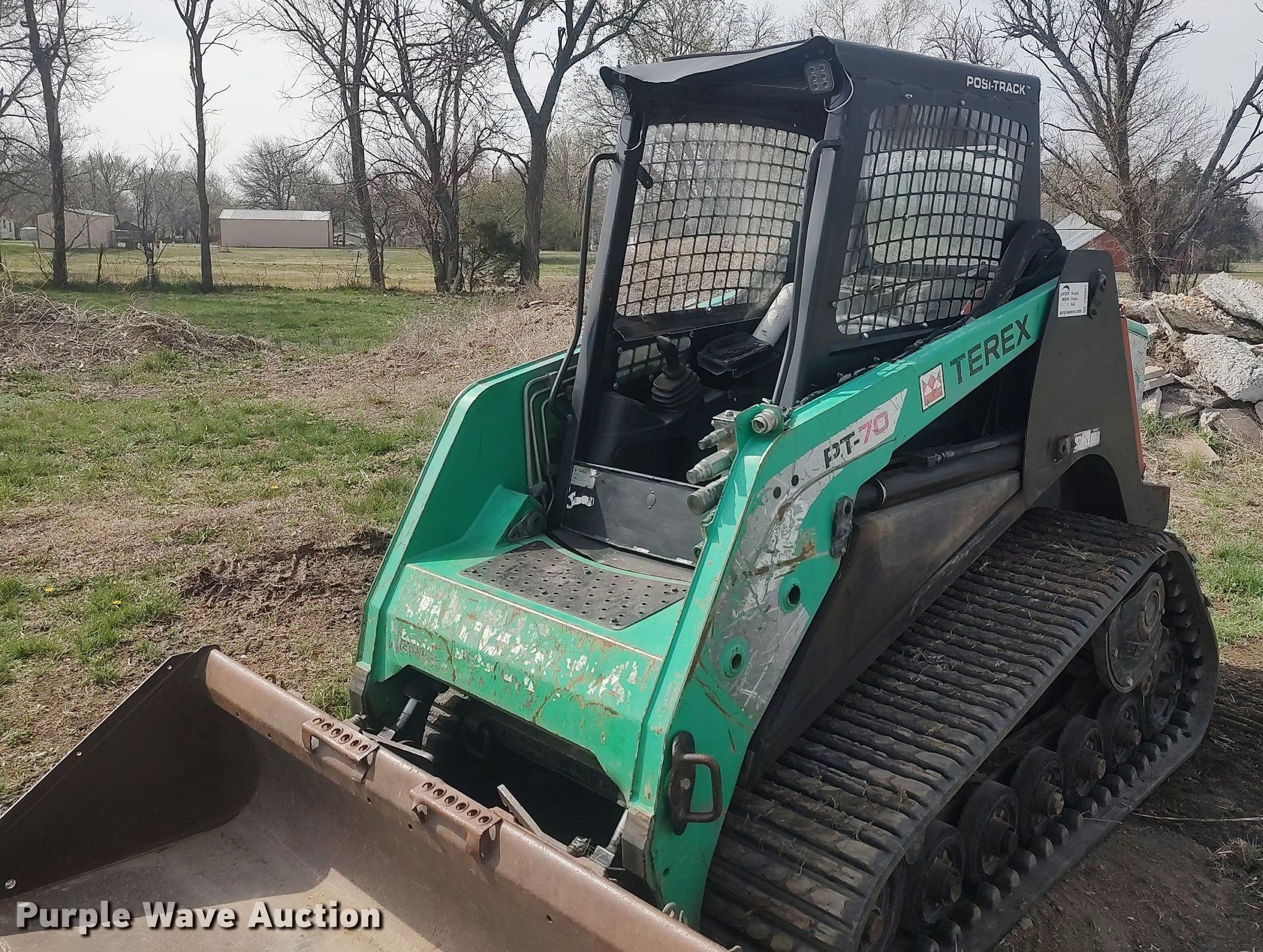Purple Wave is selling a used Tracked Skid Steer Loader in Kansas. This item is a 2011 Terex PT-70 tracked skid steer loader with the following: Hours: 1,452 on meter, Serial: DTH00805
