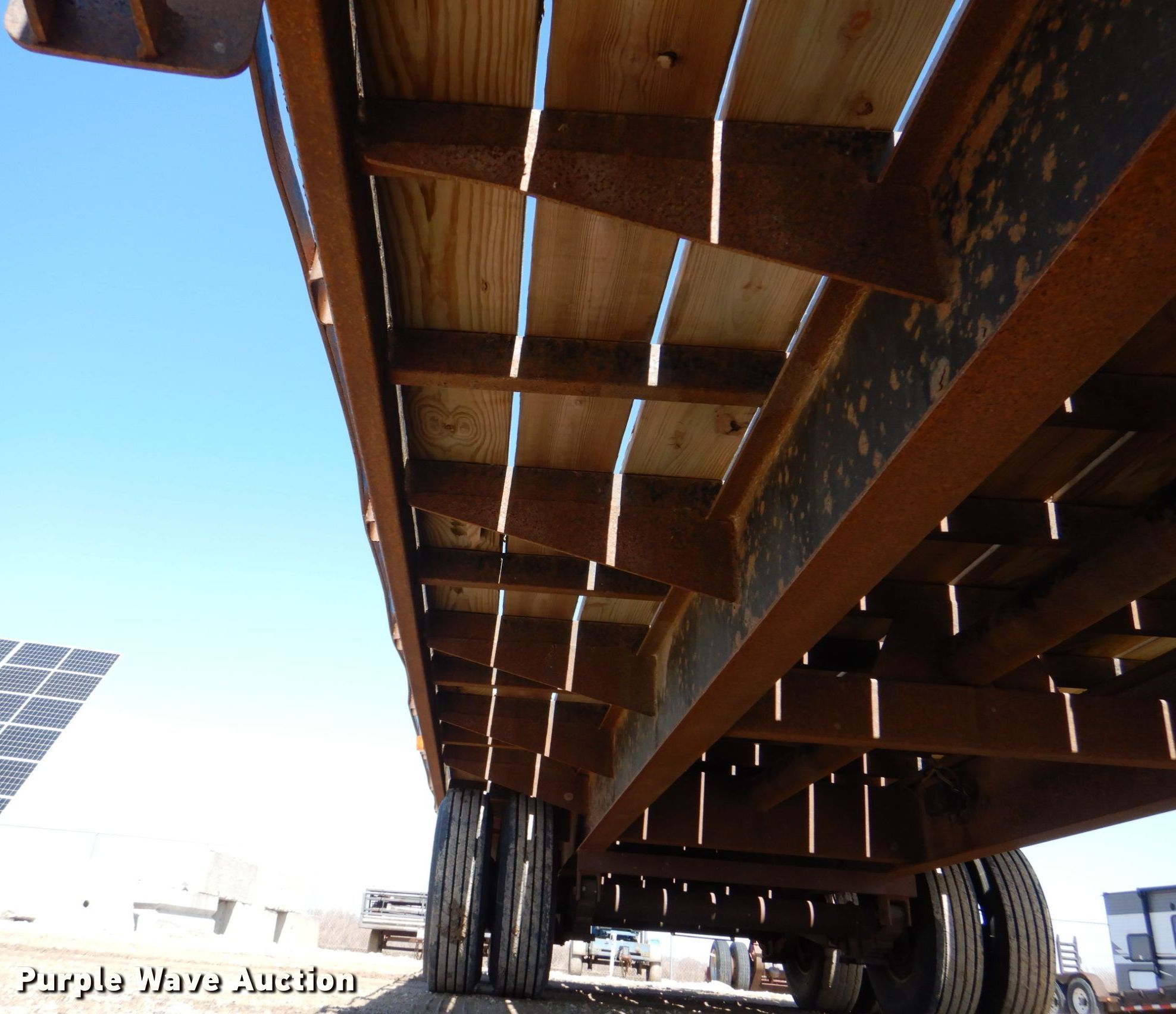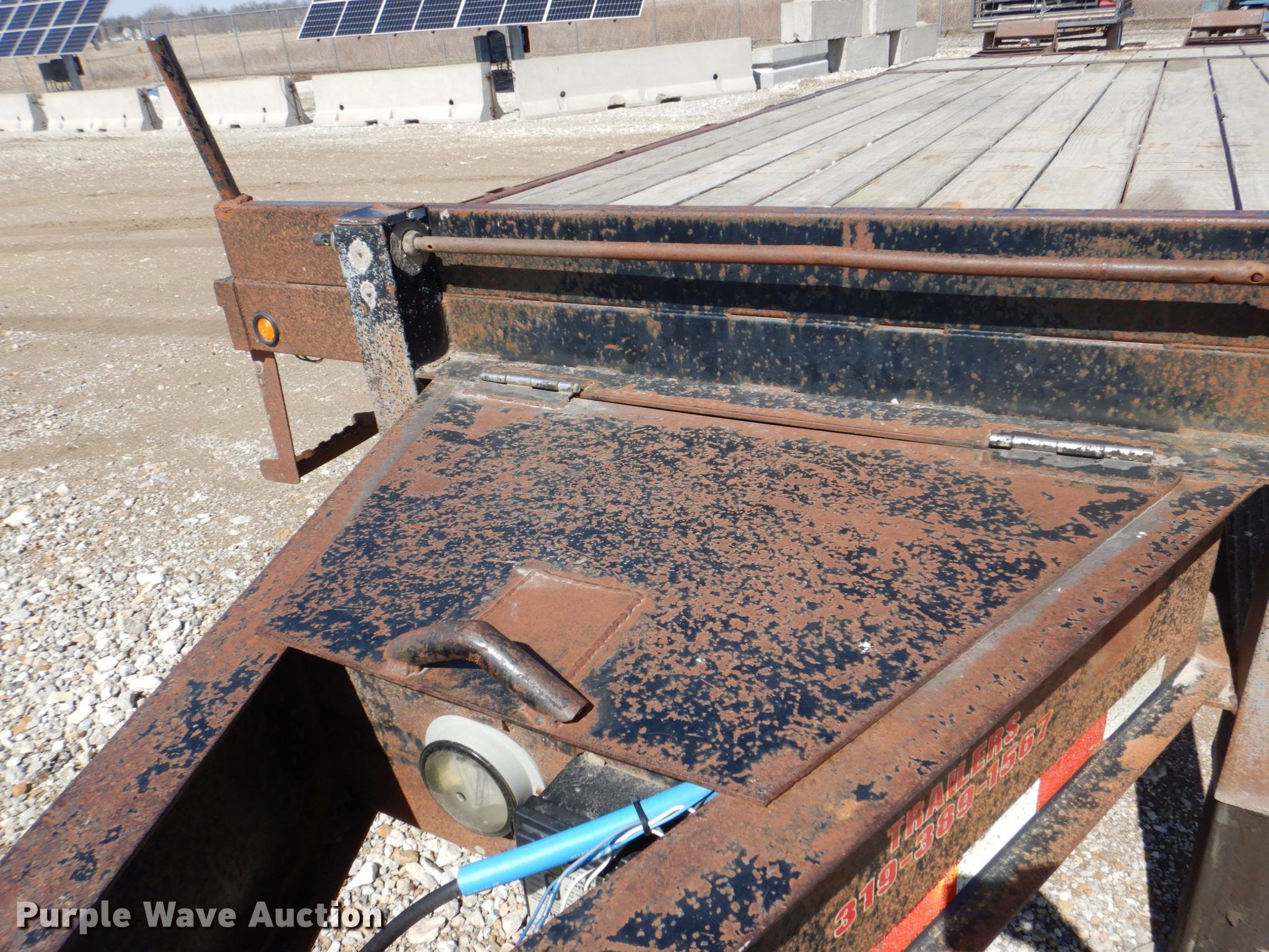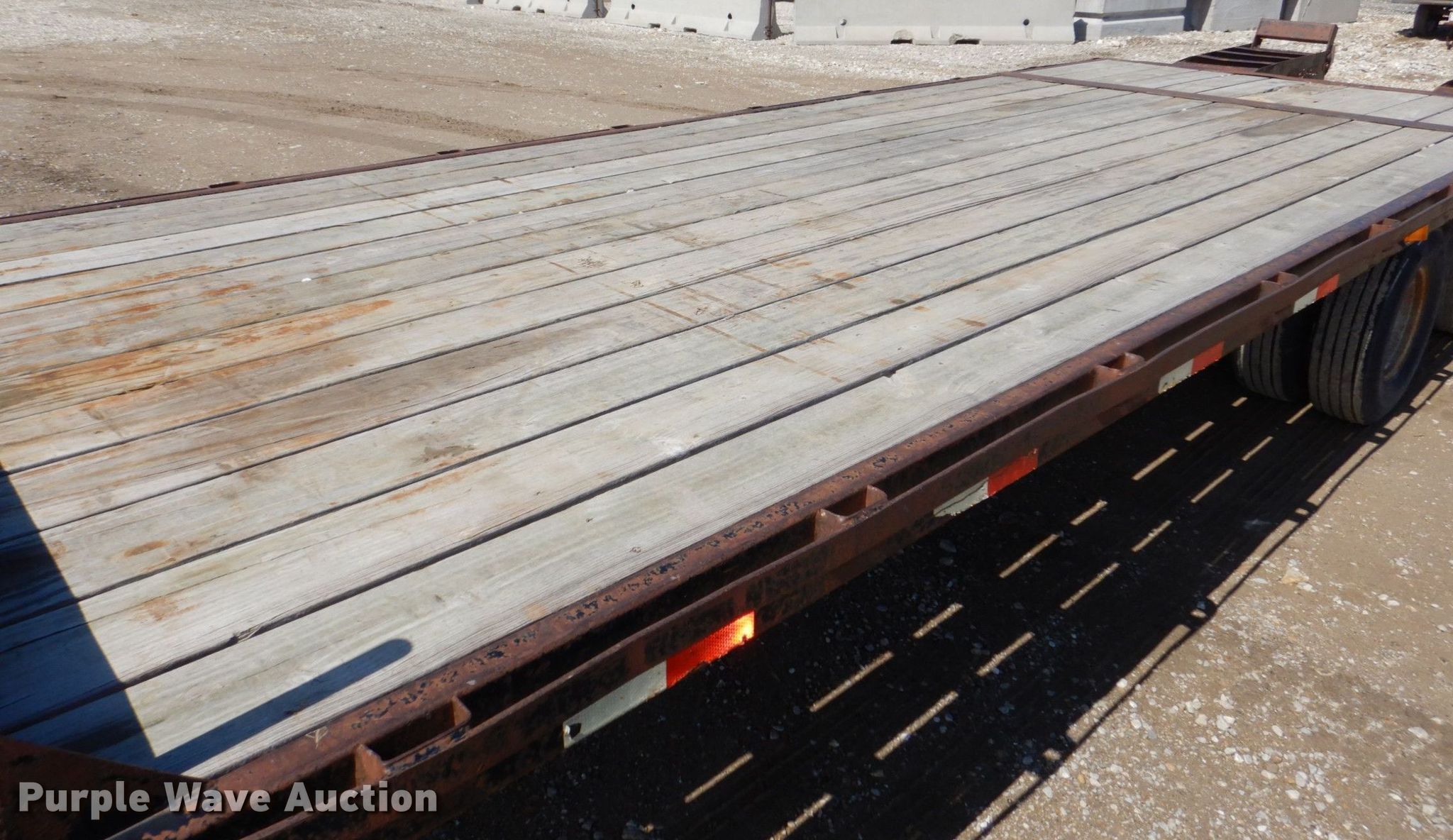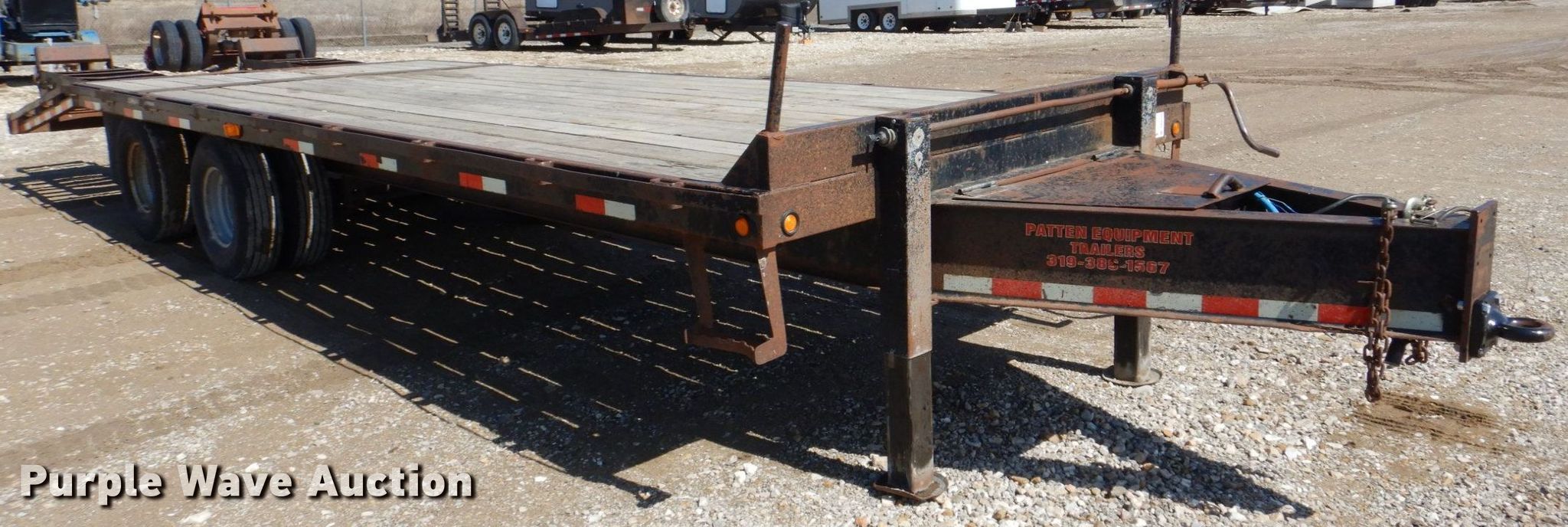 2007 T & B equipment trailer. VIN: 1T9BF26237L847139. Dimensions Overall: 32' 4" L x 8' 6" W, Deck: 21' L x 8' W, Deck height: 3', Tail length: 5' 6", Ramps: Manual Length: 5'. Features Deck type: Wood. Chassis Hitch: Pintle, Landing gear: Dual, Suspension: Walking beam, Brakes: Electric, Axles: Tandem, GVWR: 20,000 lbs. Tires Steel wheels, Size: 235/85R16. Notes Contents not included. Iowa title. Title distribution may be delayed up to 14 days from verification of funds. Triple B Construction Corp.. 710 Ayres Progress Dr. Wilton, IA 52778