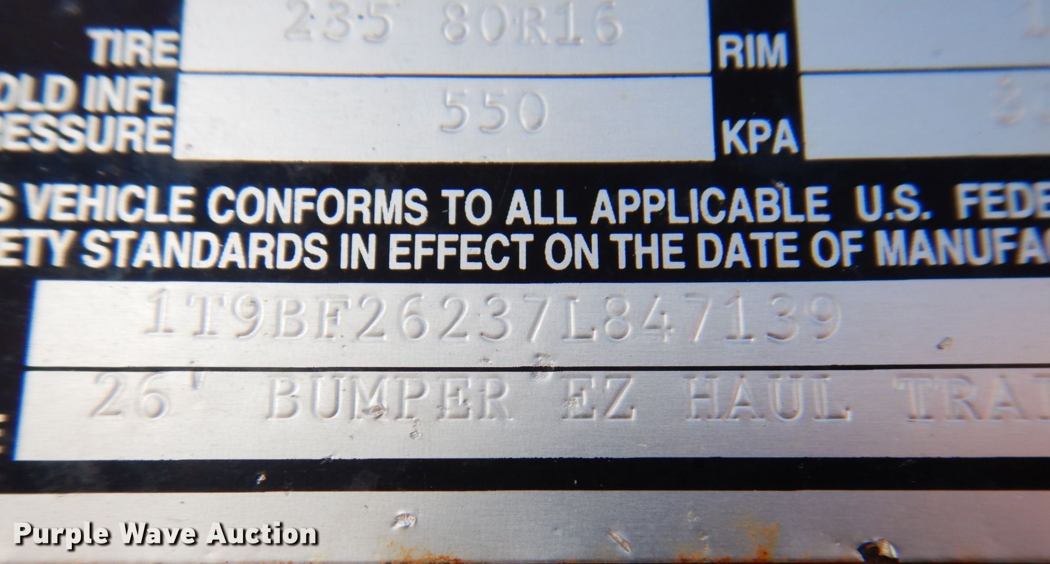Purple Wave is selling a used Equip. Trailer in Iowa. This item is a 2007 T & B equipment trailer with the following: VIN: 1T9BF26237L847139