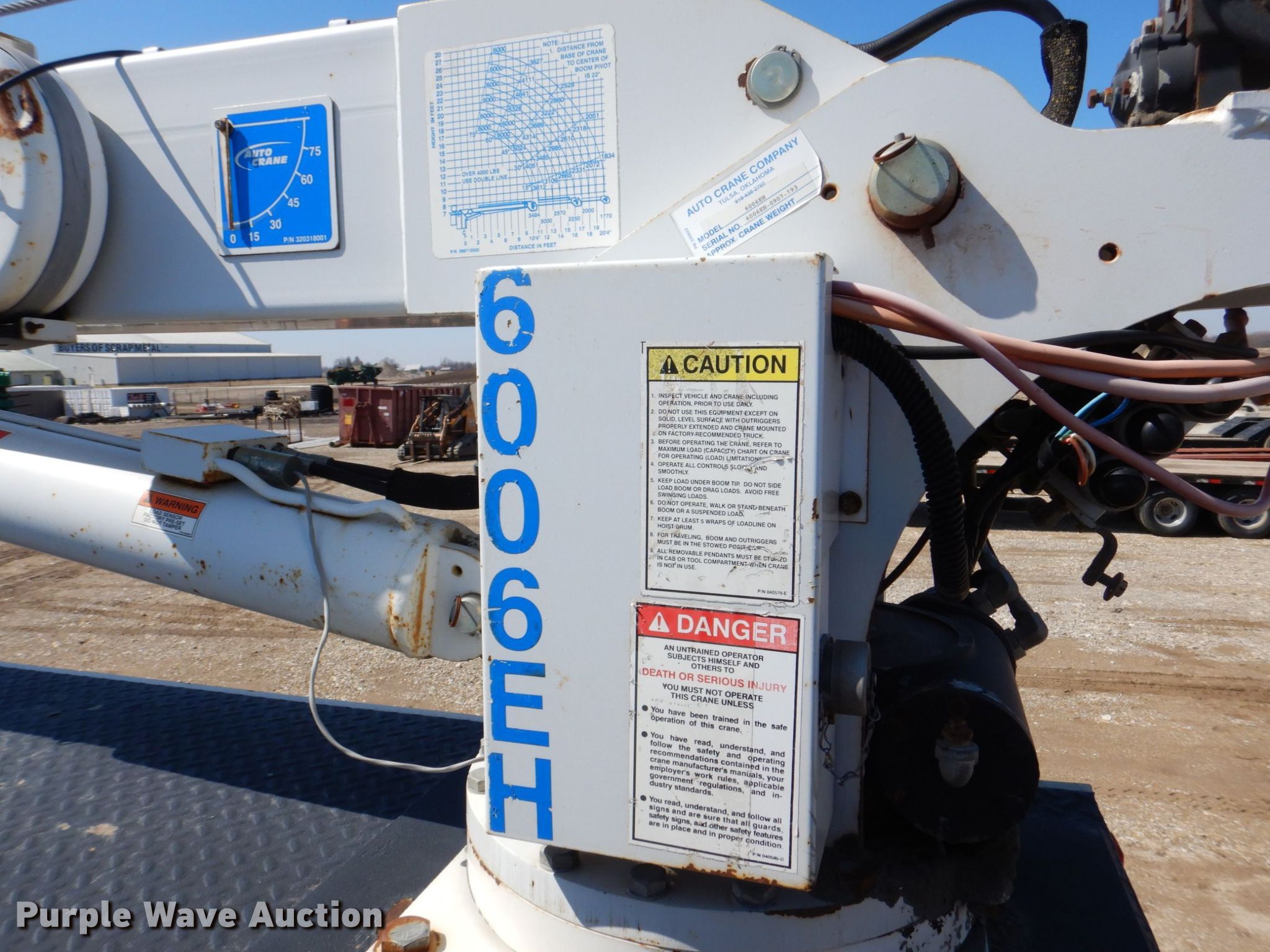 2001 Freightliner FL70 utility / service truck. Miles: 423,960 on odometer, VIN: 1FUBBTBS31HH66192. Engine Cummins ISC, Displacement: 8.3L L6, Cylinders: 6, Fuel type: Diesel. Transmission Eaton Fuller, Manual, Speed: 9. Chassis Axles: Single, Suspension: Spring, Brakes: Air, GVWR: 30,000 lbs. Interior AC, Heat, Cruise control. Features Bed 11' L x 8' W, Torch bottle rack, Crane Auto Crane 6006EH, Maximum boom length: 20', Maximum lift capacity: 6,000 lbs. Tires Size: 295/75R22.5. Notes Contents not included , Decals will be removed prior to auction, Possible crane hydraulic issues. Iowa title. Title distribution may be delayed up to 14 days from verification of funds. Triple B Construction Corp.. 710 Ayres Progress Dr. Wilton, IA 52778