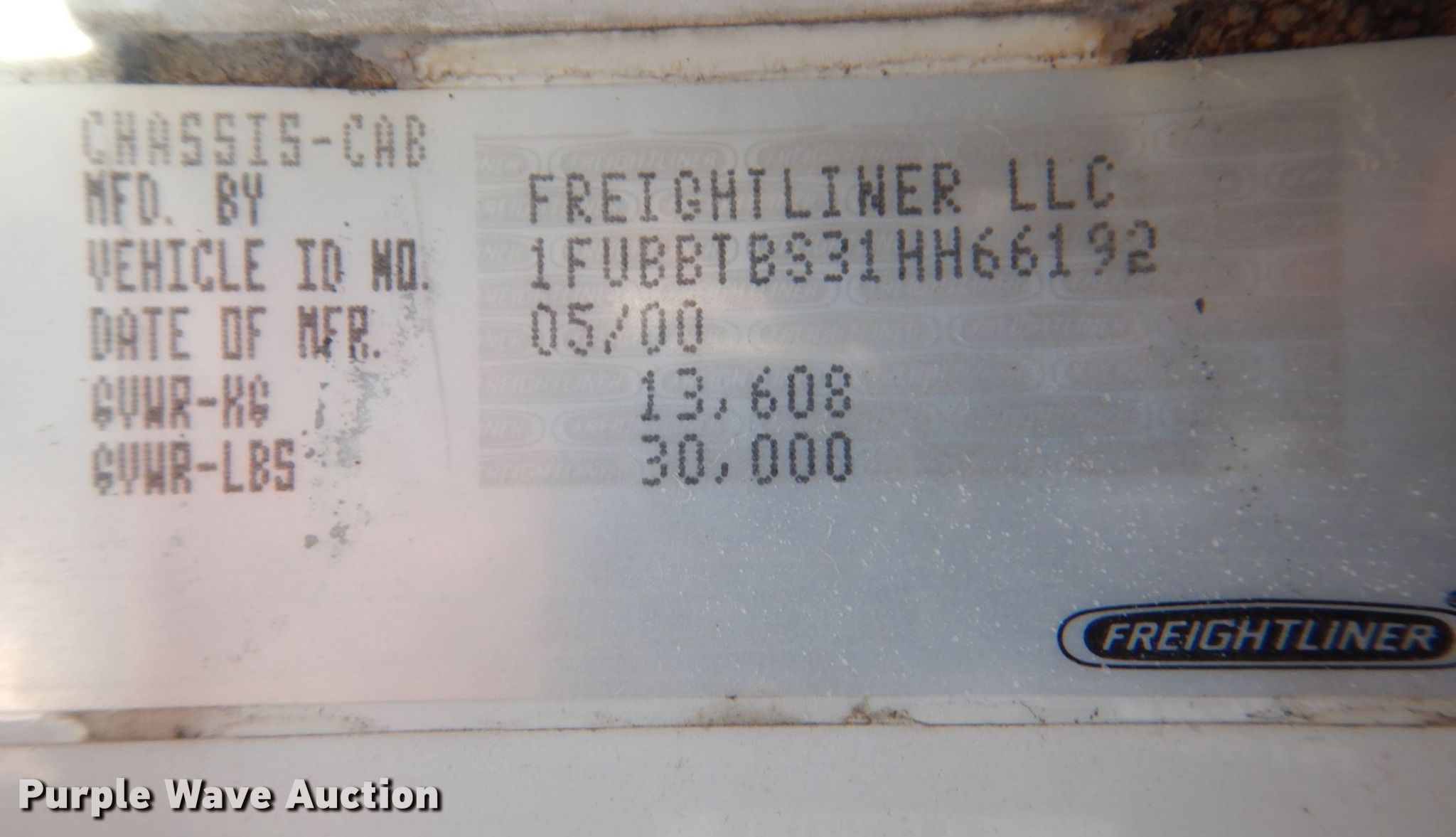 Purple Wave is selling a used Service Truck in Iowa. This item is a 2001 Freightliner FL70 utility / service truck with the following: Miles: 423,960 on odometer, VIN: 1FUBBTBS31HH66192