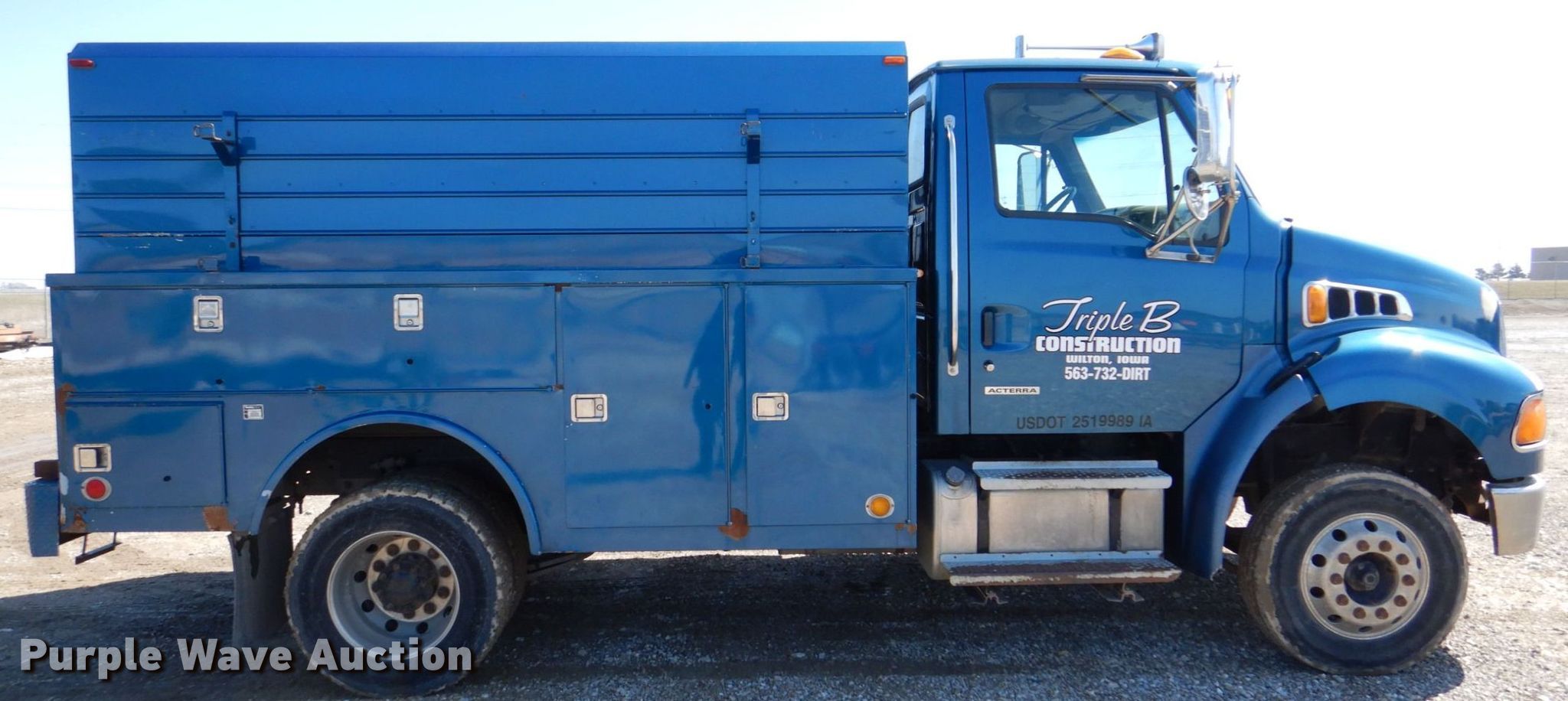 Purple Wave is selling a used Service Truck in Iowa. This item is a 2006 Sterling Acterra utility / service truck with the following: Miles: 114,239 on odometer, Hours: 7,482 on meter, VIN: 2FZACFCS56AV73357