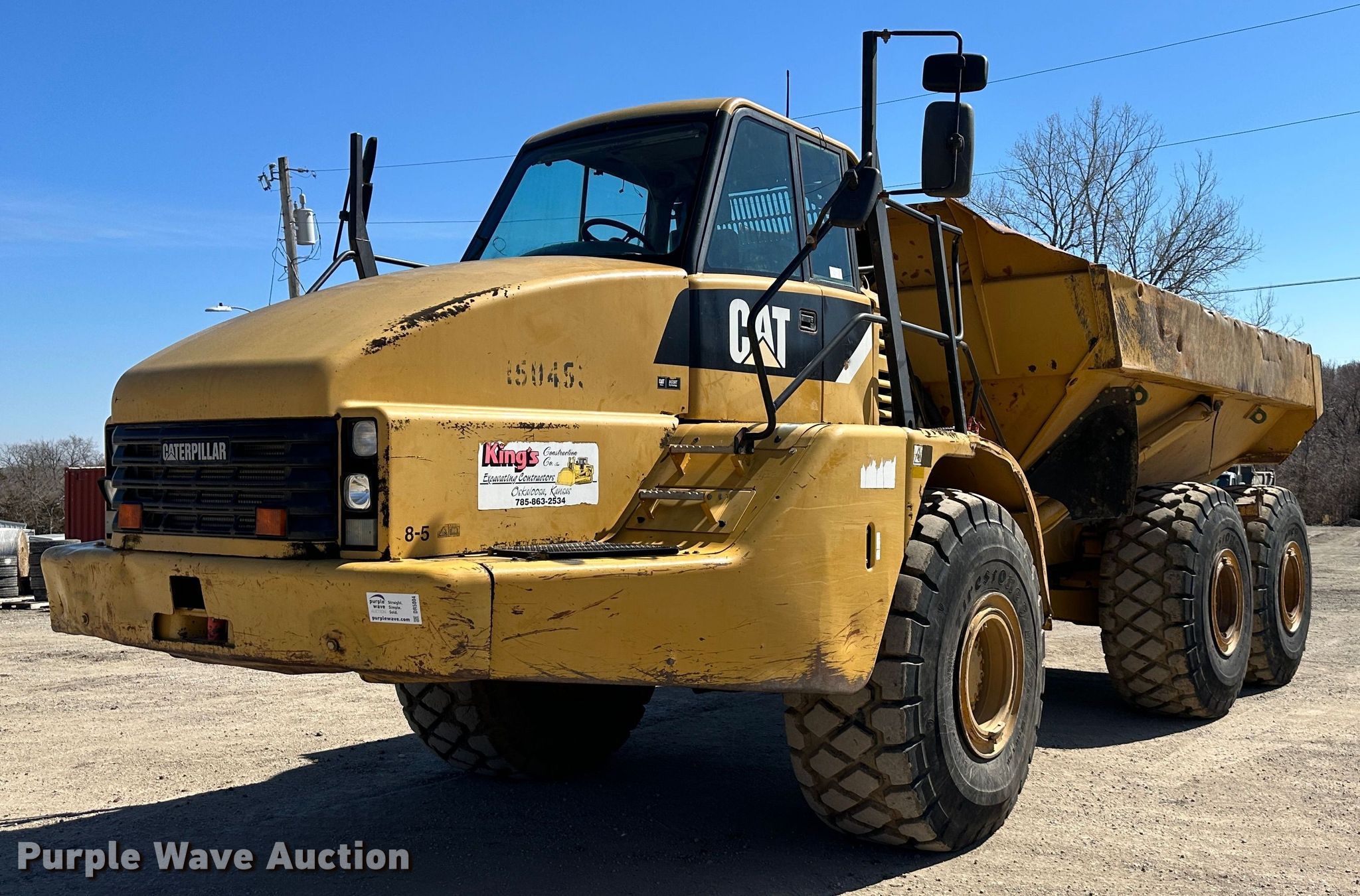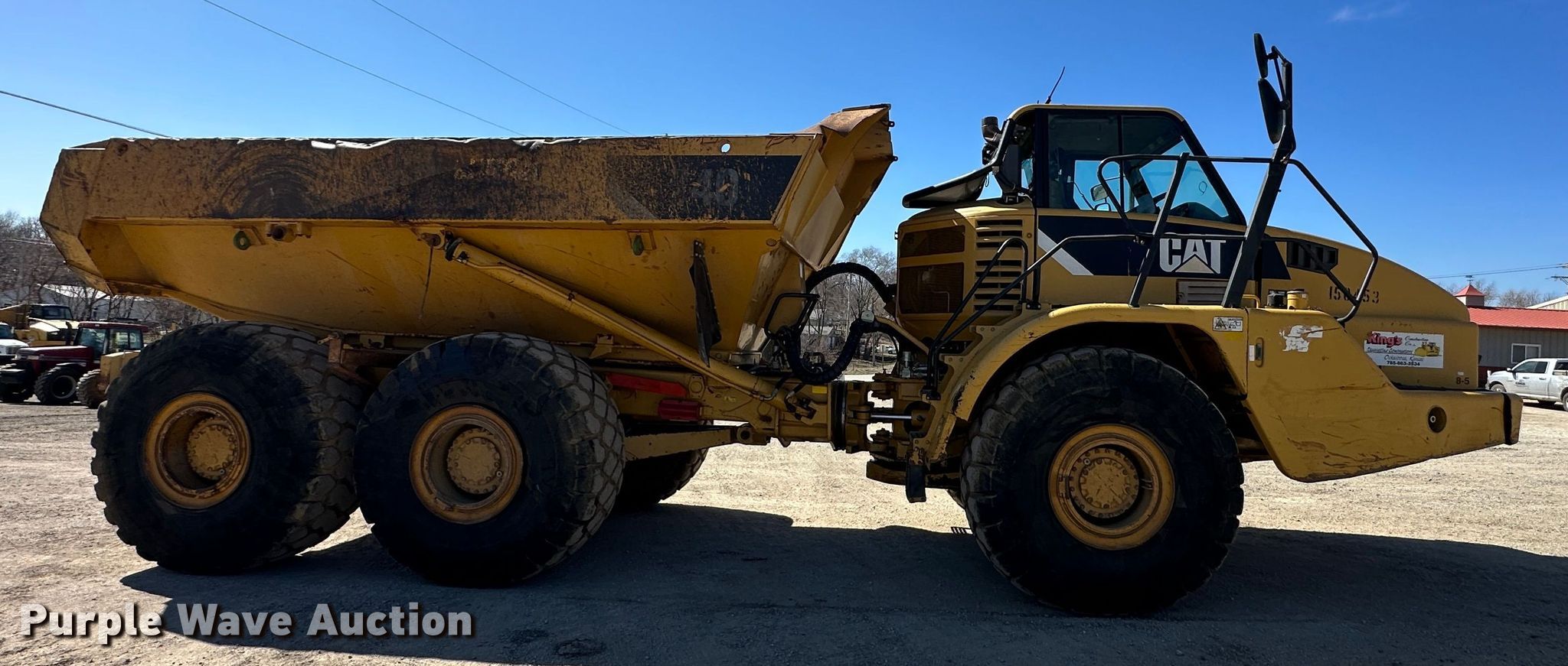2009 Caterpillar 740 haul truck. Hours: 14,369 on meter, Serial: CAT00740VB1P04946. Engine Caterpillar C15, Cylinders: 6, Fuel type: Diesel. Transmission Caterpillar , Automatic. Chassis Six wheel drive. Interior AC, Heat. Features Dump bed Capacity: 40 tons. Tires Size: 29.5R25, Brand: Firestone. King's Construction. Oskaloosa, KS 66066