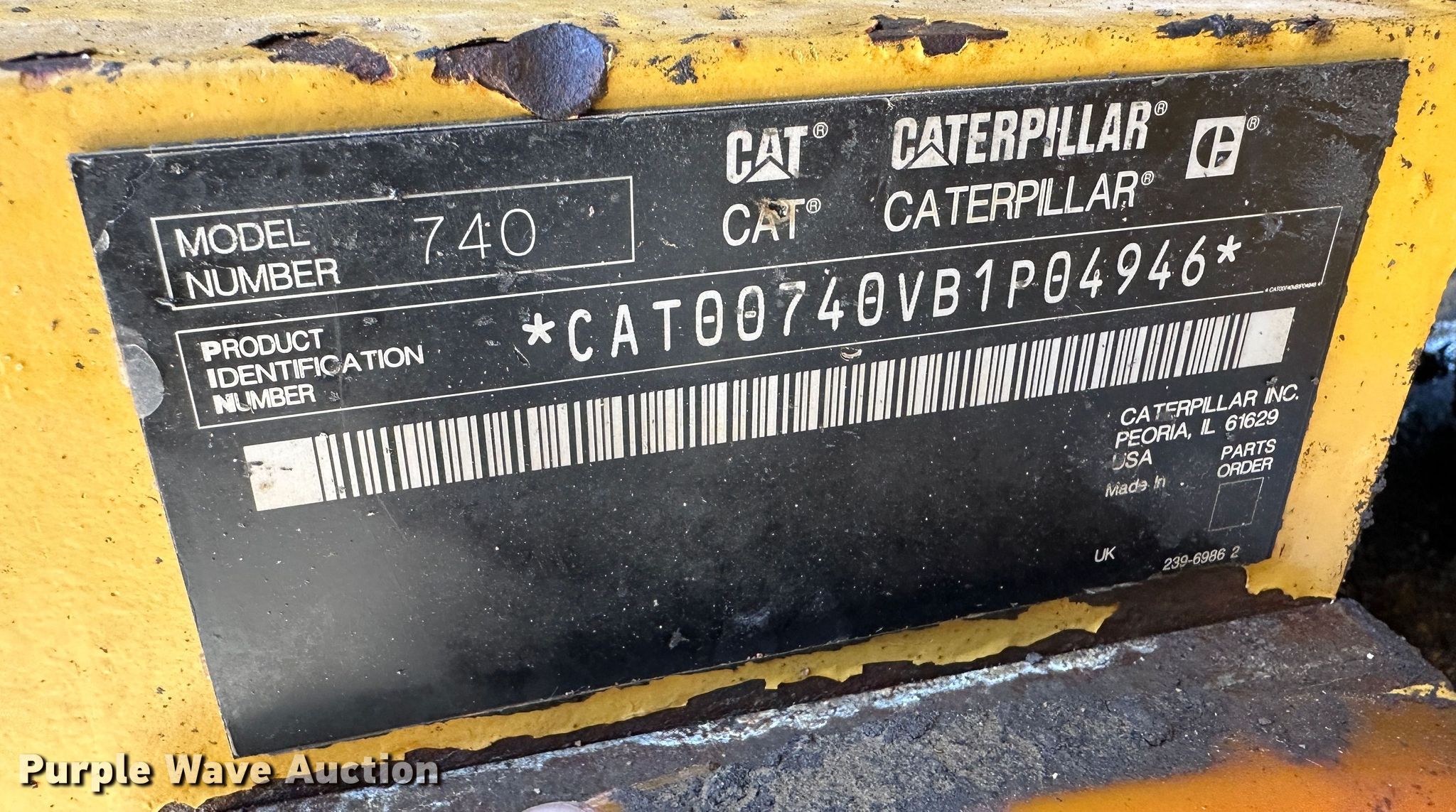 Purple Wave is selling a used Articulated Haul Truck in Kansas. This item is a 2009 Caterpillar 740 haul truck with the following: Hours: 14,369 on meter, Serial: CAT00740VB1P04946