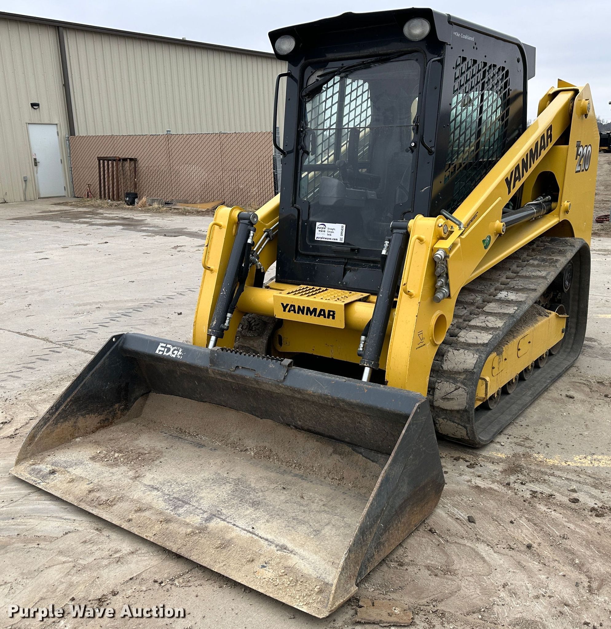 Yanmar T210 tracked skid steer loader. Hours: 735 on meter, Serial: MMCT210YD00461233. Engine Yanmar 4TTNACJ, Displacement: 3.3L, Cylinders: 4, Fuel type: Diesel. Transmission Hydrostatic, Two speed travel. Operators station Enclosed cab, AC, Heat, Bucket control: Hand, Electronic Monitoring System panel. Features Auxiliary hydraulics, Auxiliary electrical outlet, Quick coupler: Manual, Bucket Edge, Width: 72", Low profile, Cutting edge: Bolt-on. Tracks Width: 17". View repairs. Larson Construction, Inc.. Manhattan, KS 66502