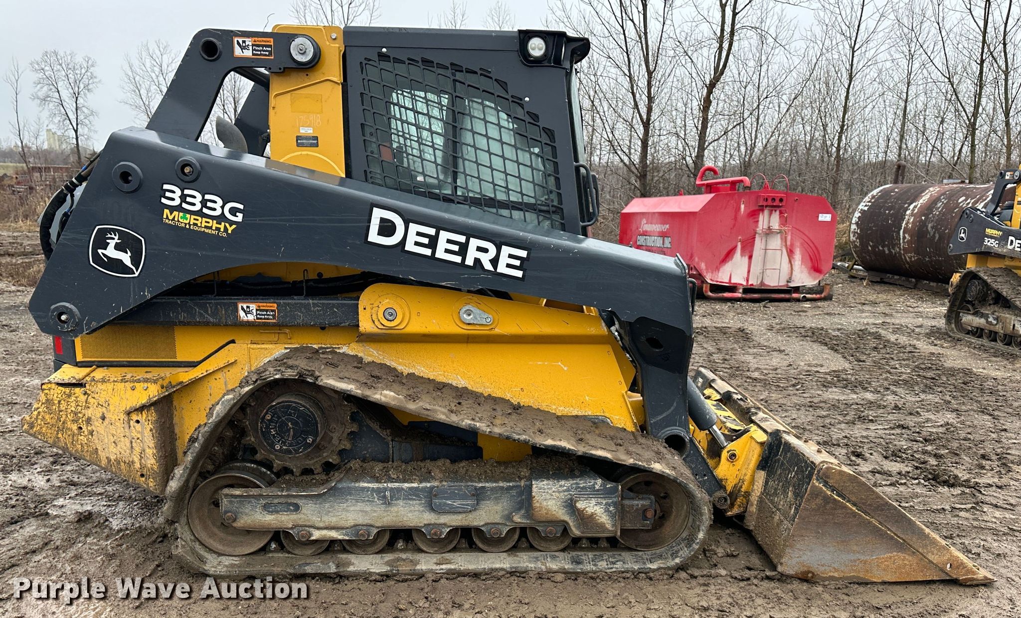 2019 John Deere 333G tracked skid steer loader. Hours: 2,009 on meter, Serial: 1T0333GKPKF361884. Engine Yanmar, Cylinders: 4, Fuel type: Diesel. Transmission Hydrostatic, Two speed travel. Operators station Enclosed cab, AC, Heat, Bucket control: Hand, Pattern changer. Features Auxiliary hydraulics, Auxiliary electrical outlet, Quick coupler: Hydraulic, Bucket John deere, Width: 84", Low profile, Cutting edge: Bolt-on. Tracks Width: 17". Notes Possible DEF issue. Linaweaver Construction, Inc.. 719 East Gilman Road. Lansing, KS 66043