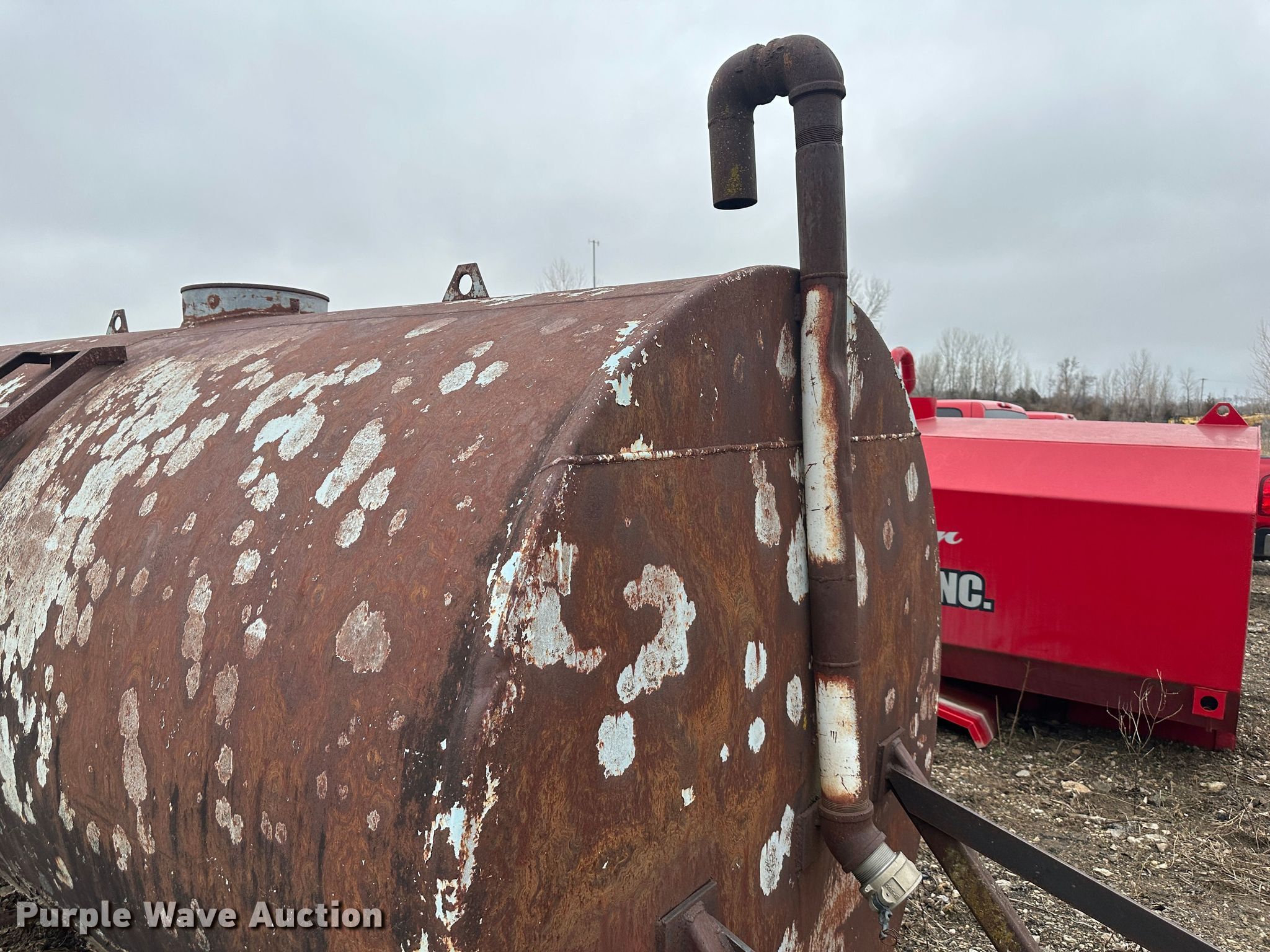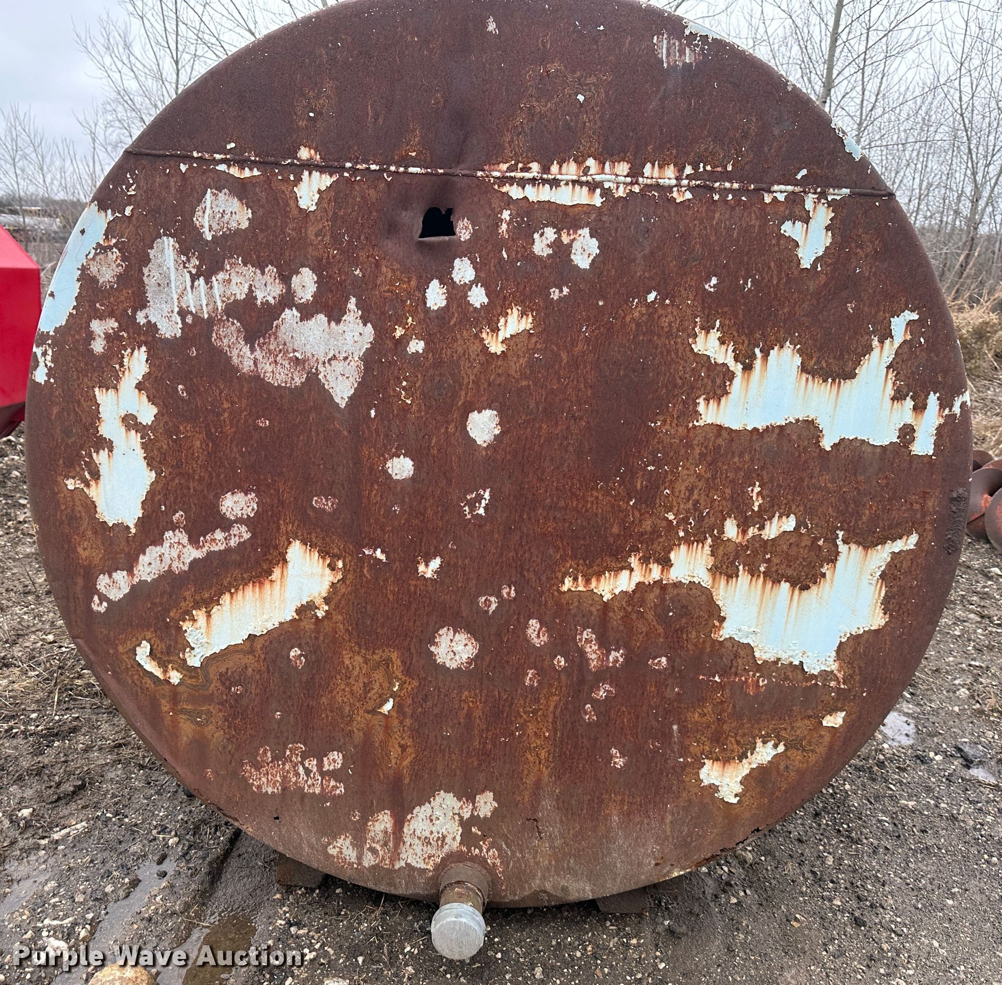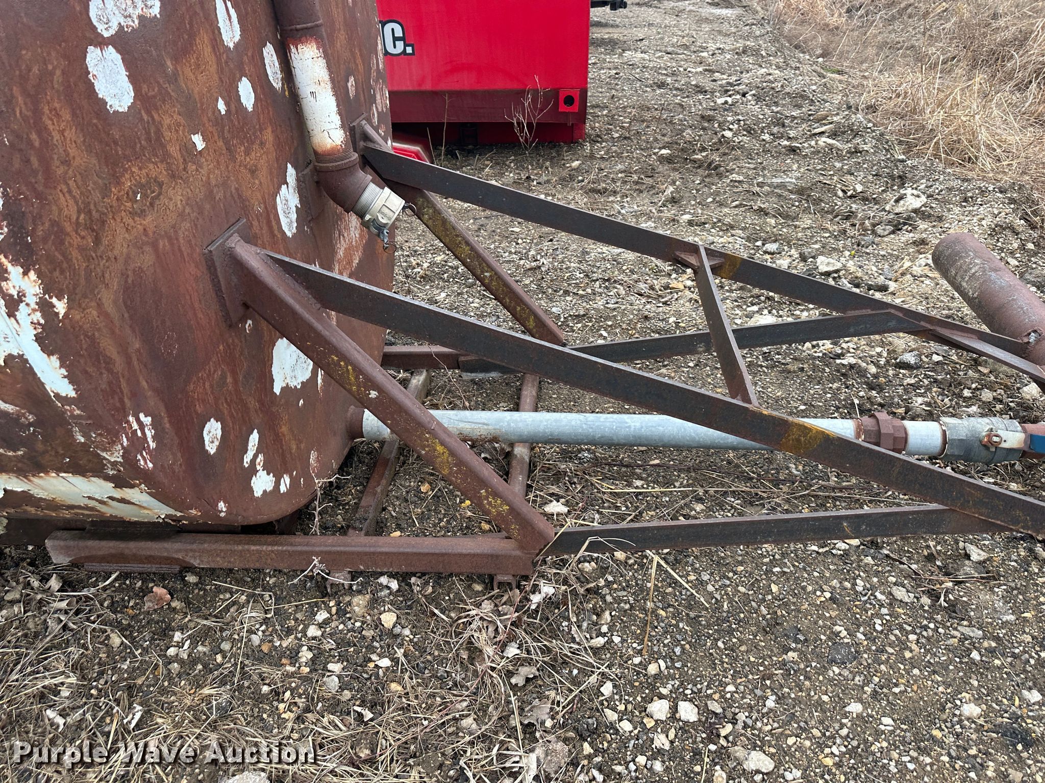 Purple Wave is selling a used Truck Part and Attach. in Kansas. This item is a (2) water tanks with the following: Red tank, 13' L x 93" W x 67" H, Brown tank, 12' L x 72" W x 72" H, Possible rust issue
