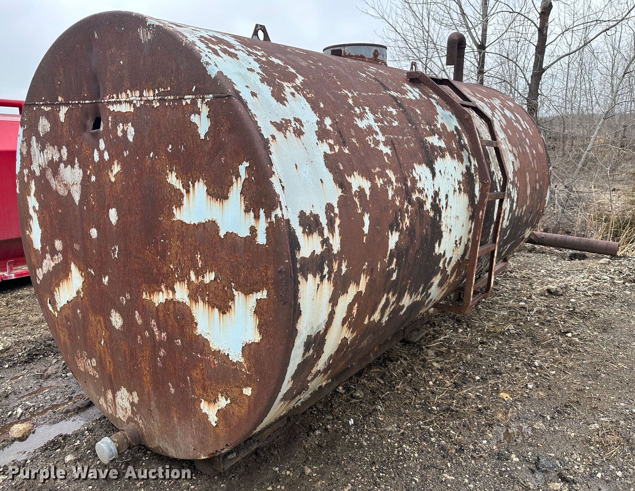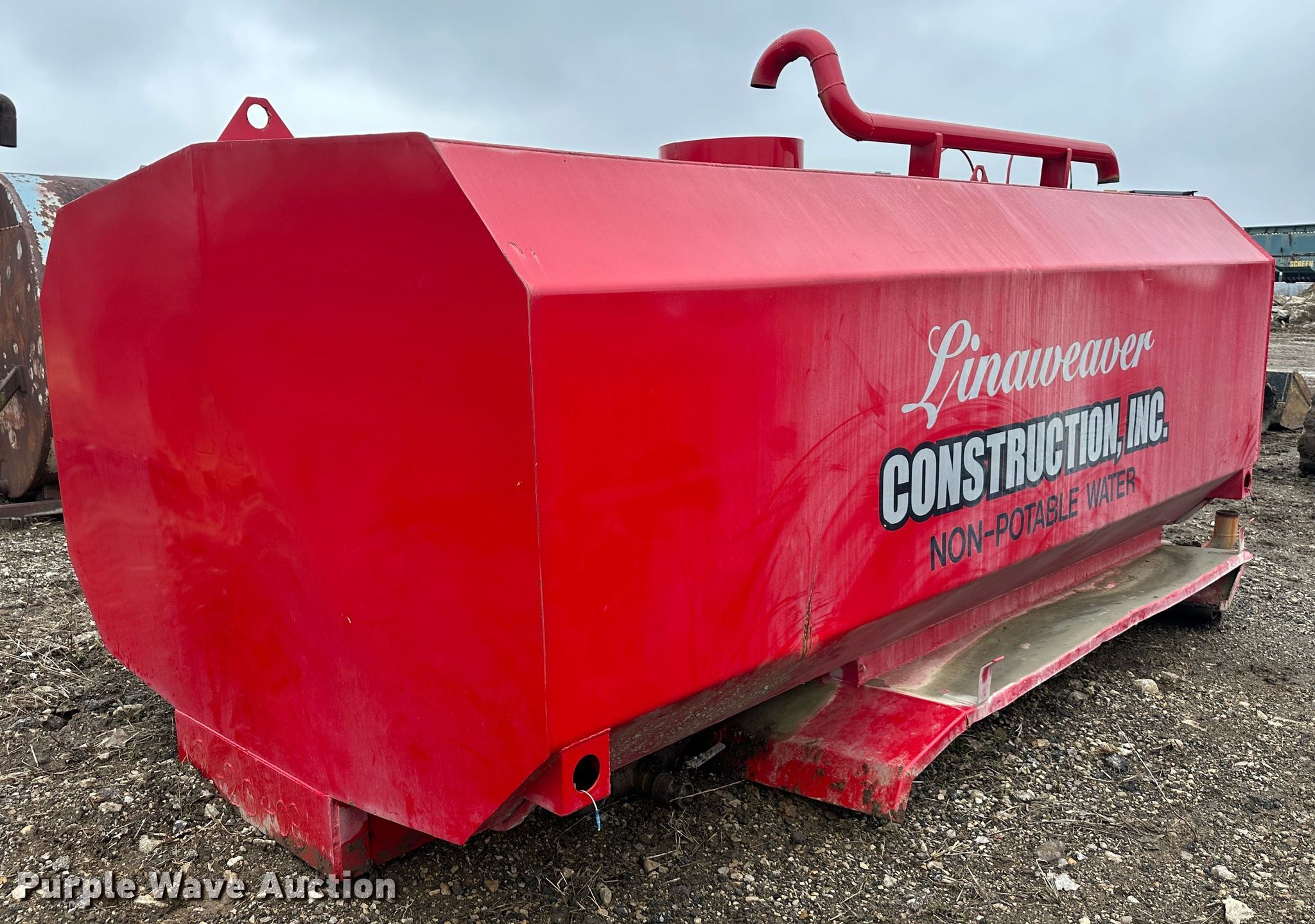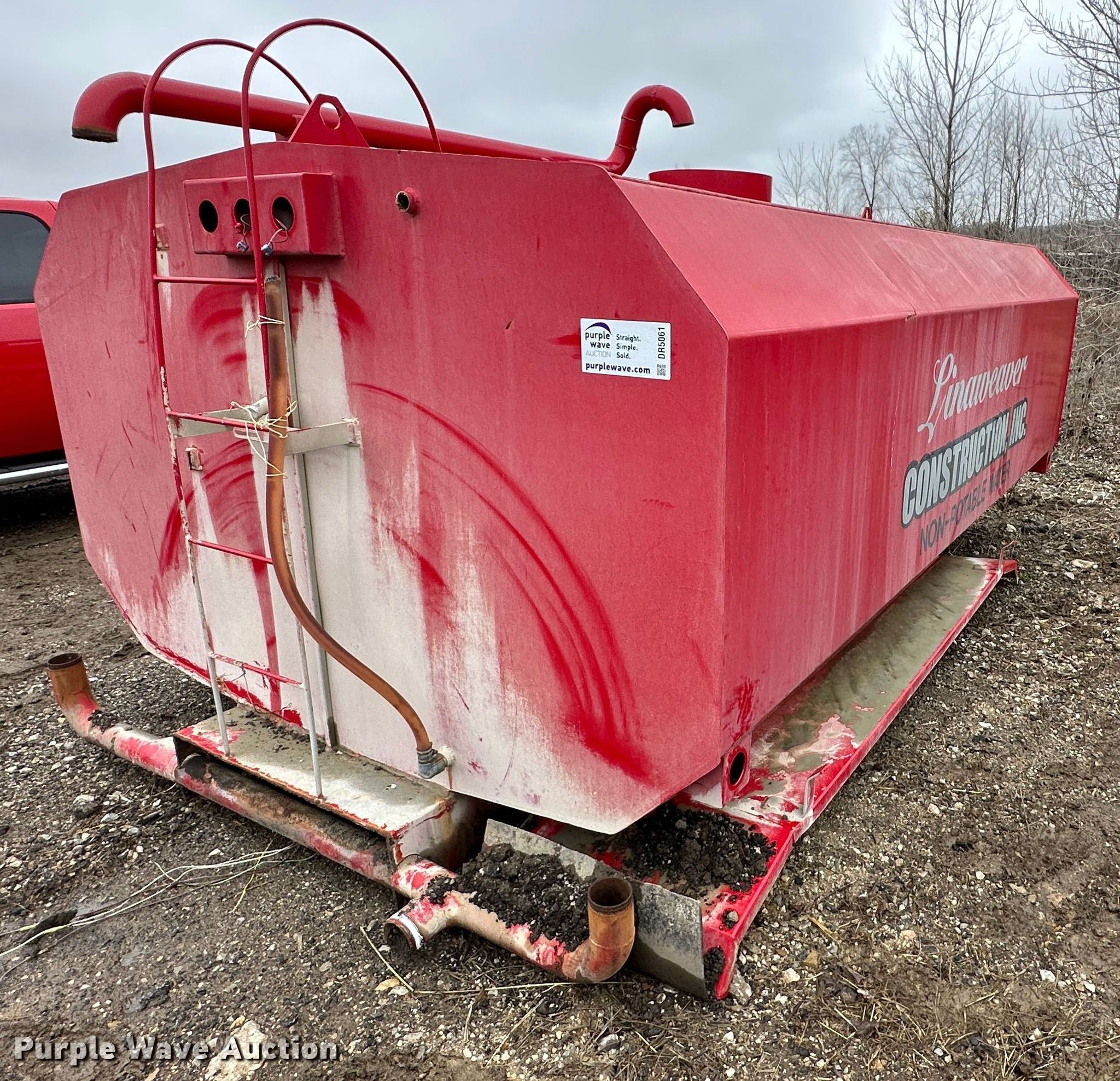 Purple Wave is selling a used Truck Part and Attach. in Kansas. This item is a (2) water tanks with the following: Red tank, 13' L x 93" W x 67" H, Brown tank, 12' L x 72" W x 72" H, Possible rust issue