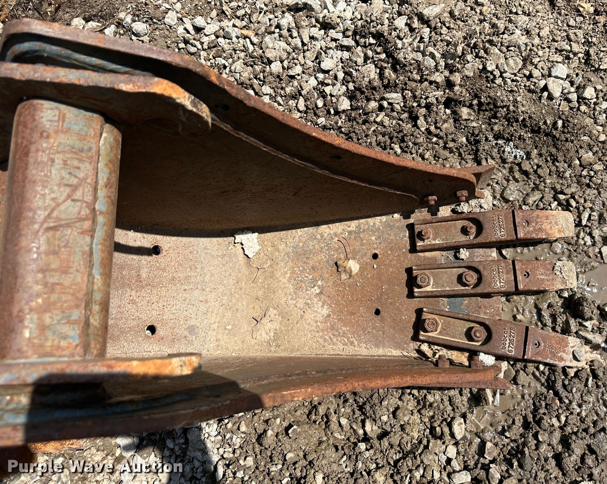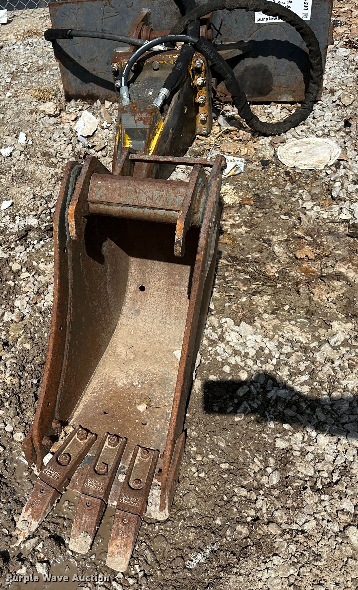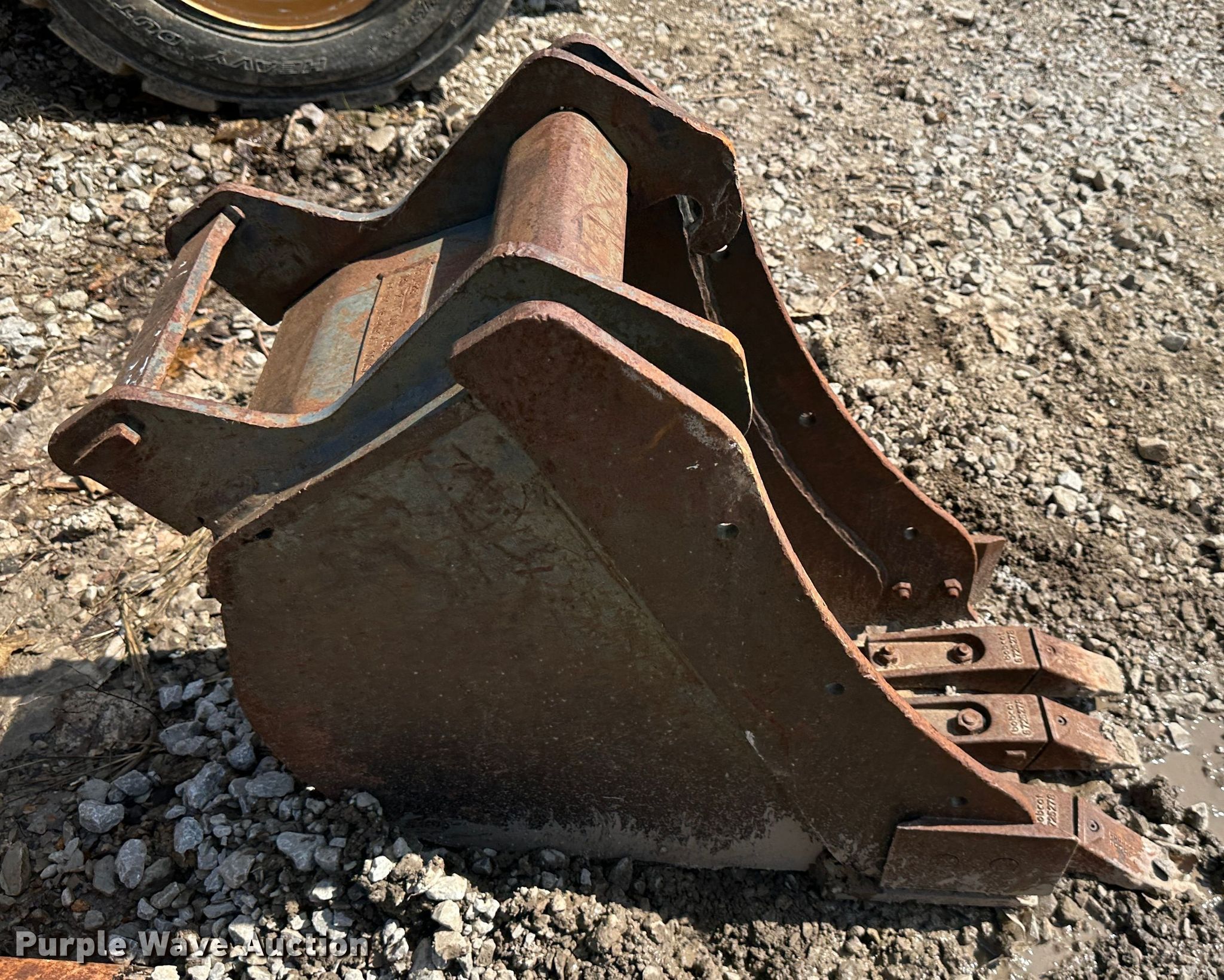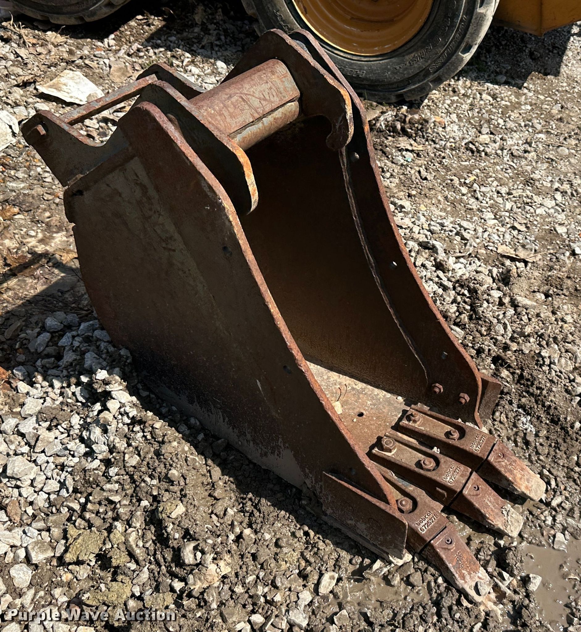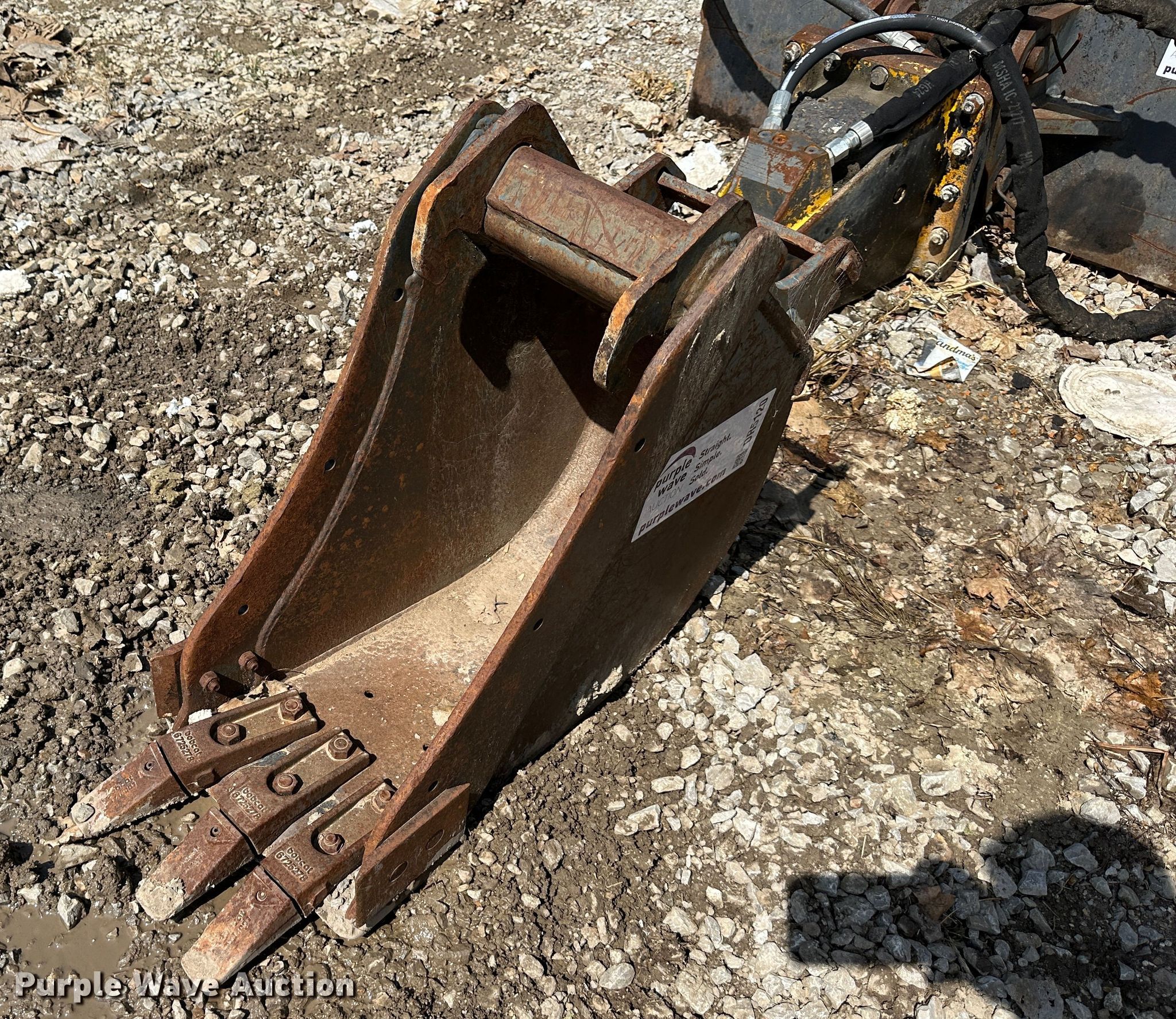 Purple Wave is selling a used Excavator Attach. in Missouri. This item is a Bobcat excavator bucket with the following: Width: 12", Cutting edge: Weld-on, Teeth: 3