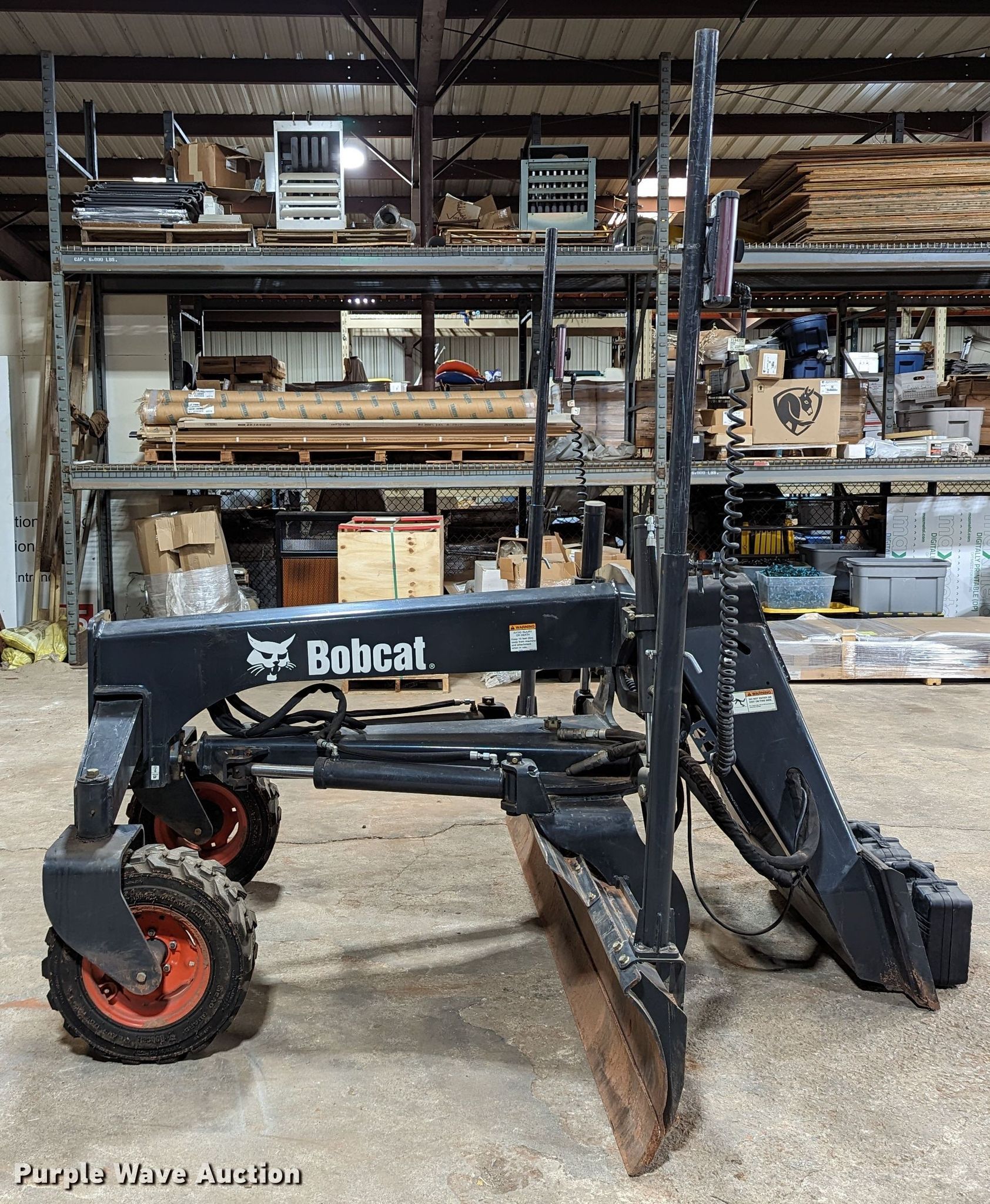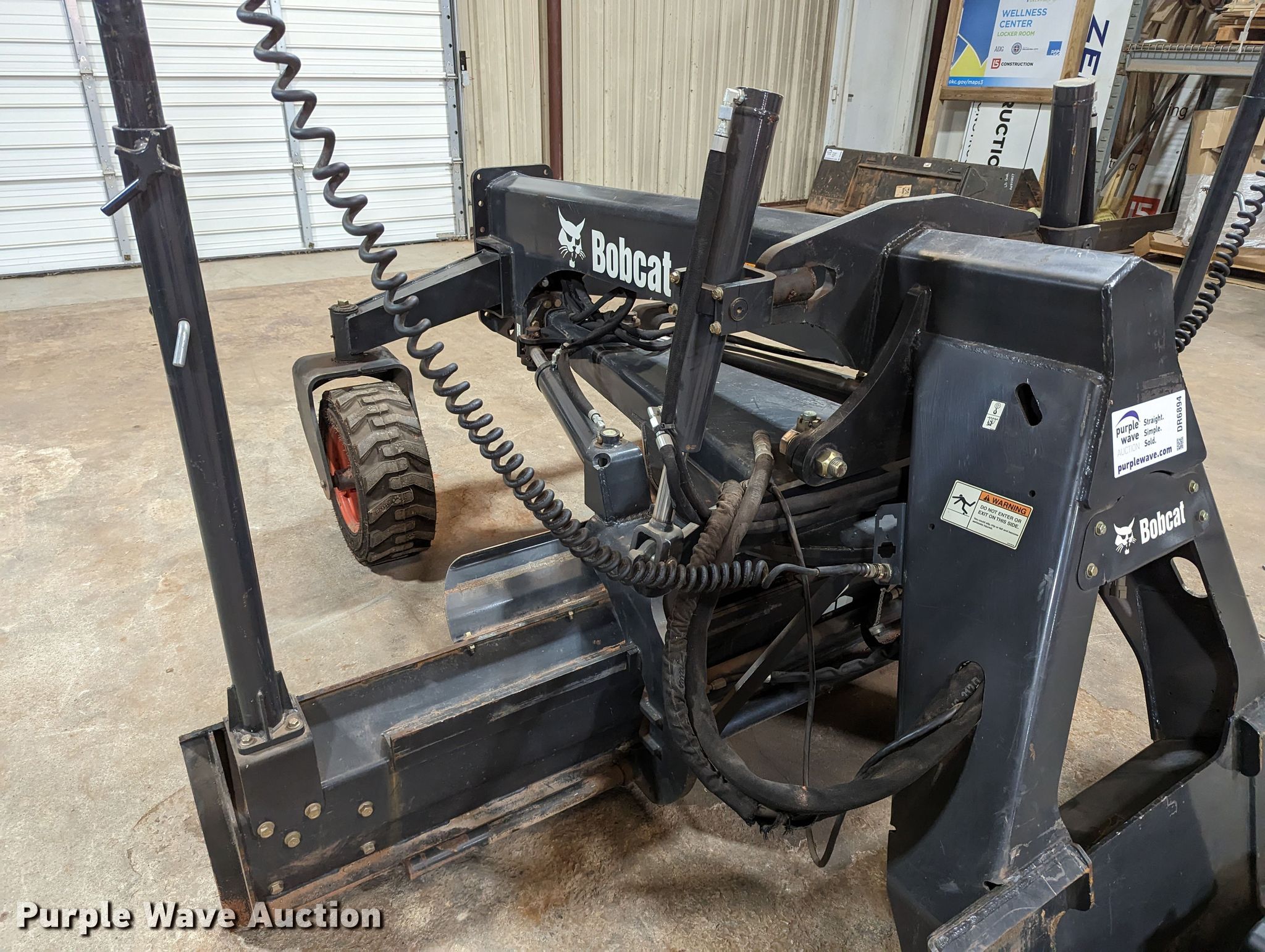 Purple Wave is selling a used Skid Steer Attach. in Oklahoma. This item is a 2014 Bobcat Grader 108 skid steer grader with the following: Serial: AJ2E00735, Width: 108", Moldboard: Angle, tilt, side shift, Laser system: Bobcat BLR2, Tires: 23X8.50-12 NHS