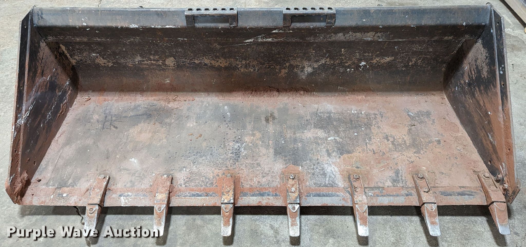 Purple Wave is selling a used Skid Steer Attach. in Oklahoma. This item is a Bobcat 84 HD C/I skid steer bucket with the following: Serial: 7126917, Width: 84", Low profile, Cutting edge: Weld-on, Teeth: Bolt-on