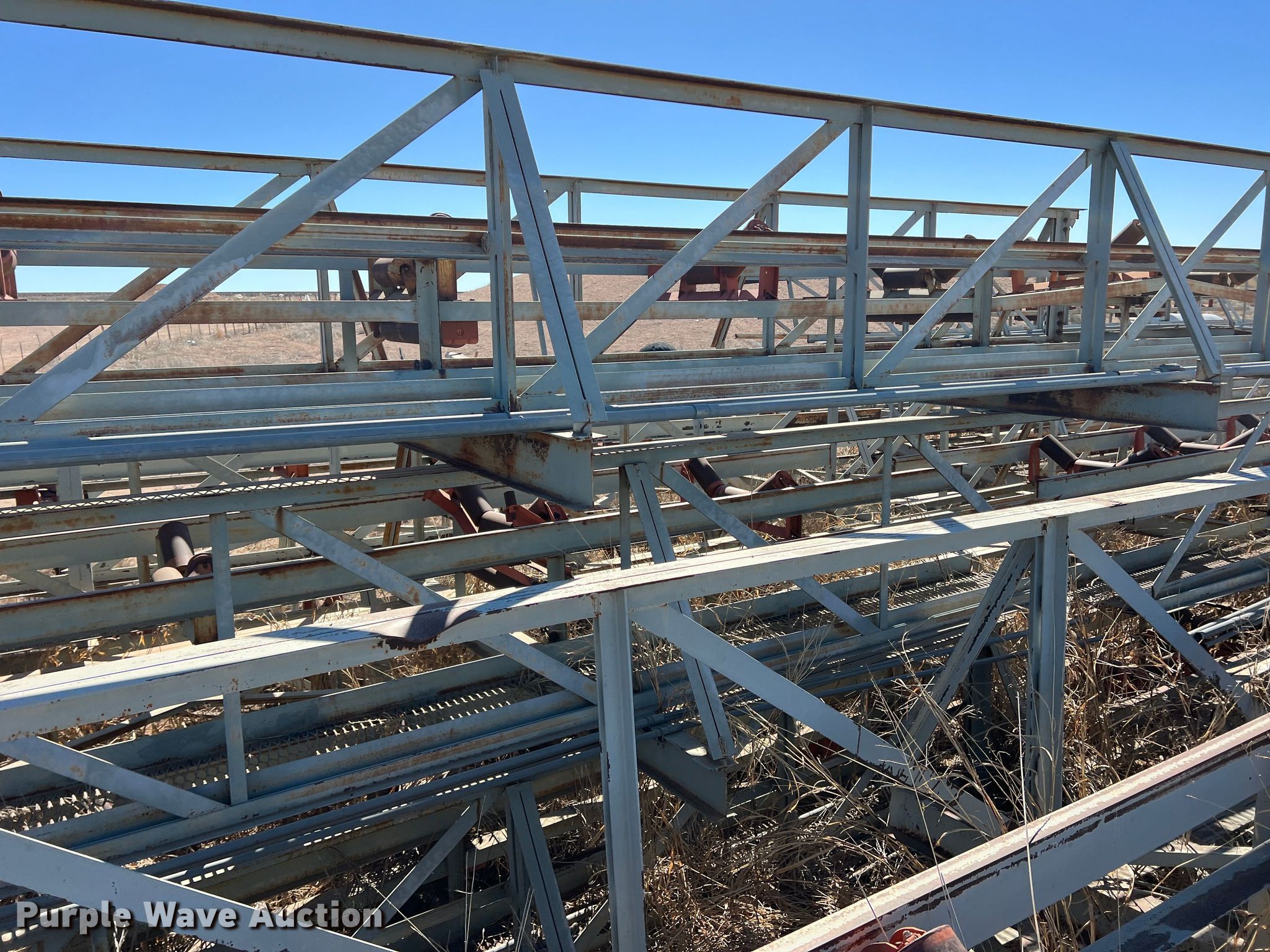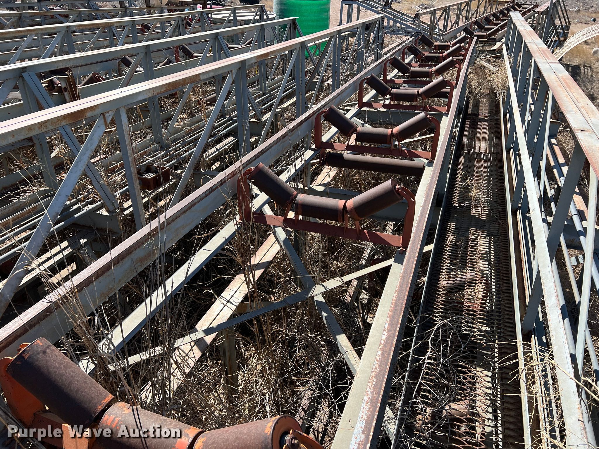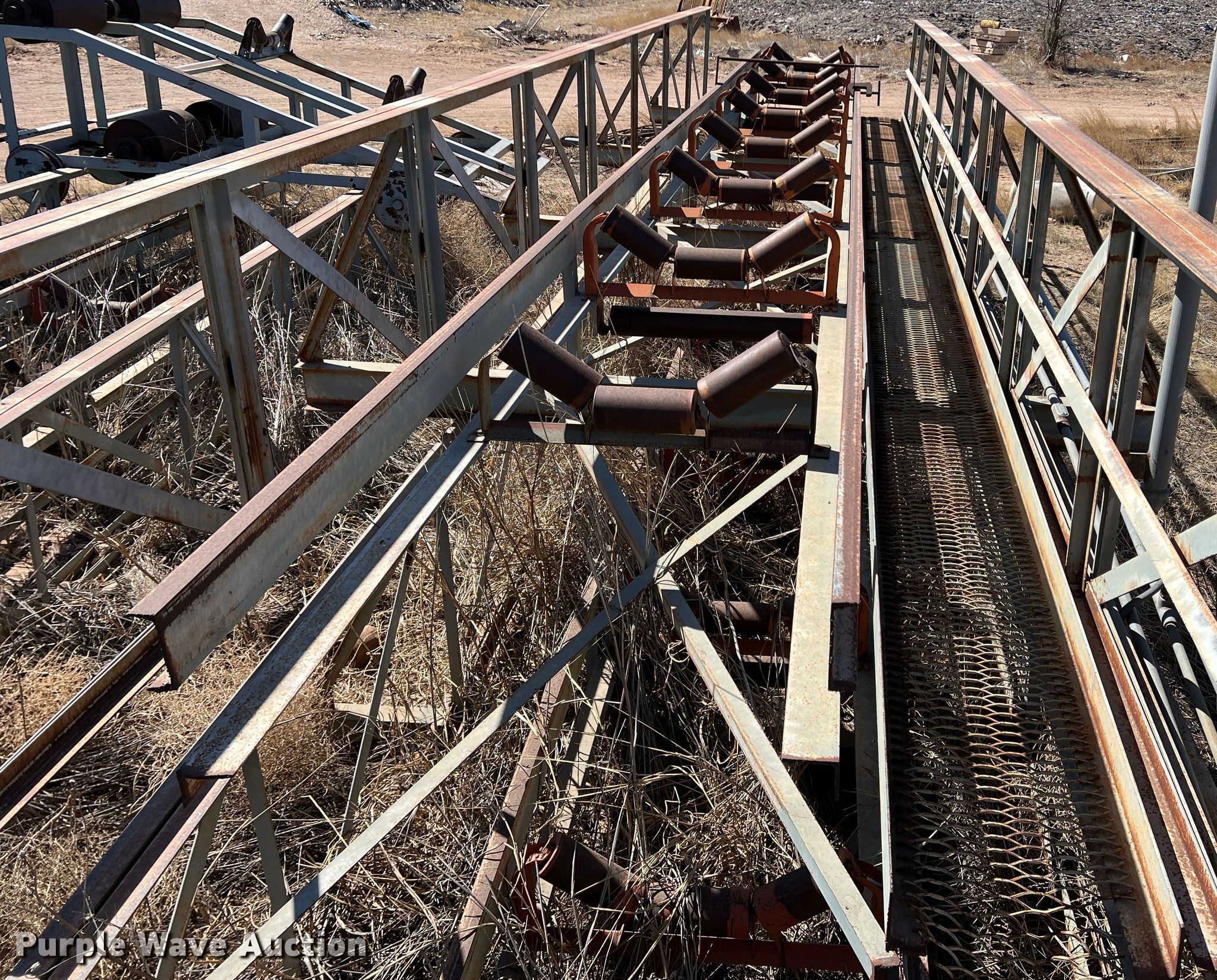 Purple Wave is selling a used Conveyor in Texas. This item is a Conveyor with the following: Overall: Approx. 800' L x 12' W, 40' L sections, Belt width: 32"