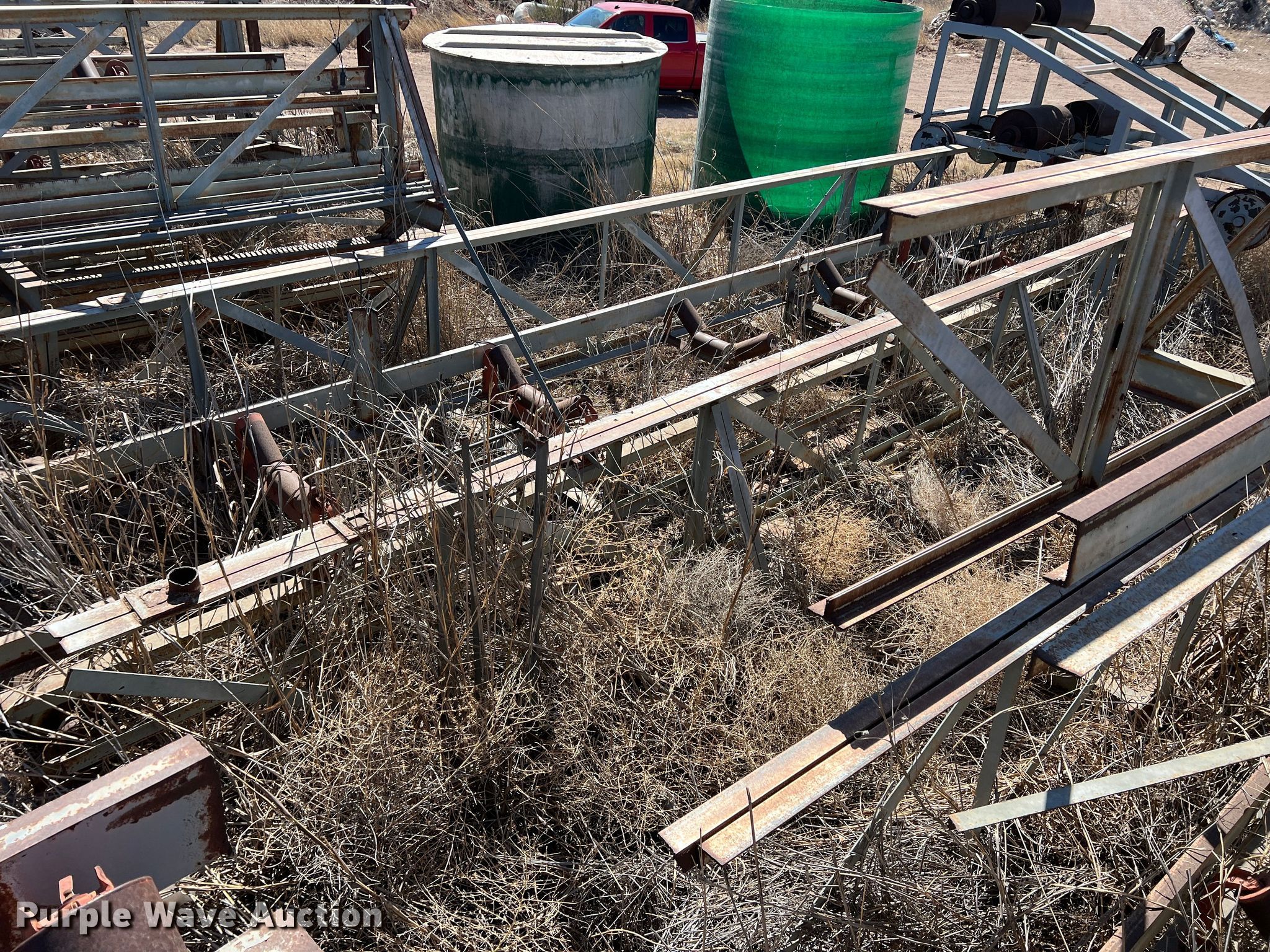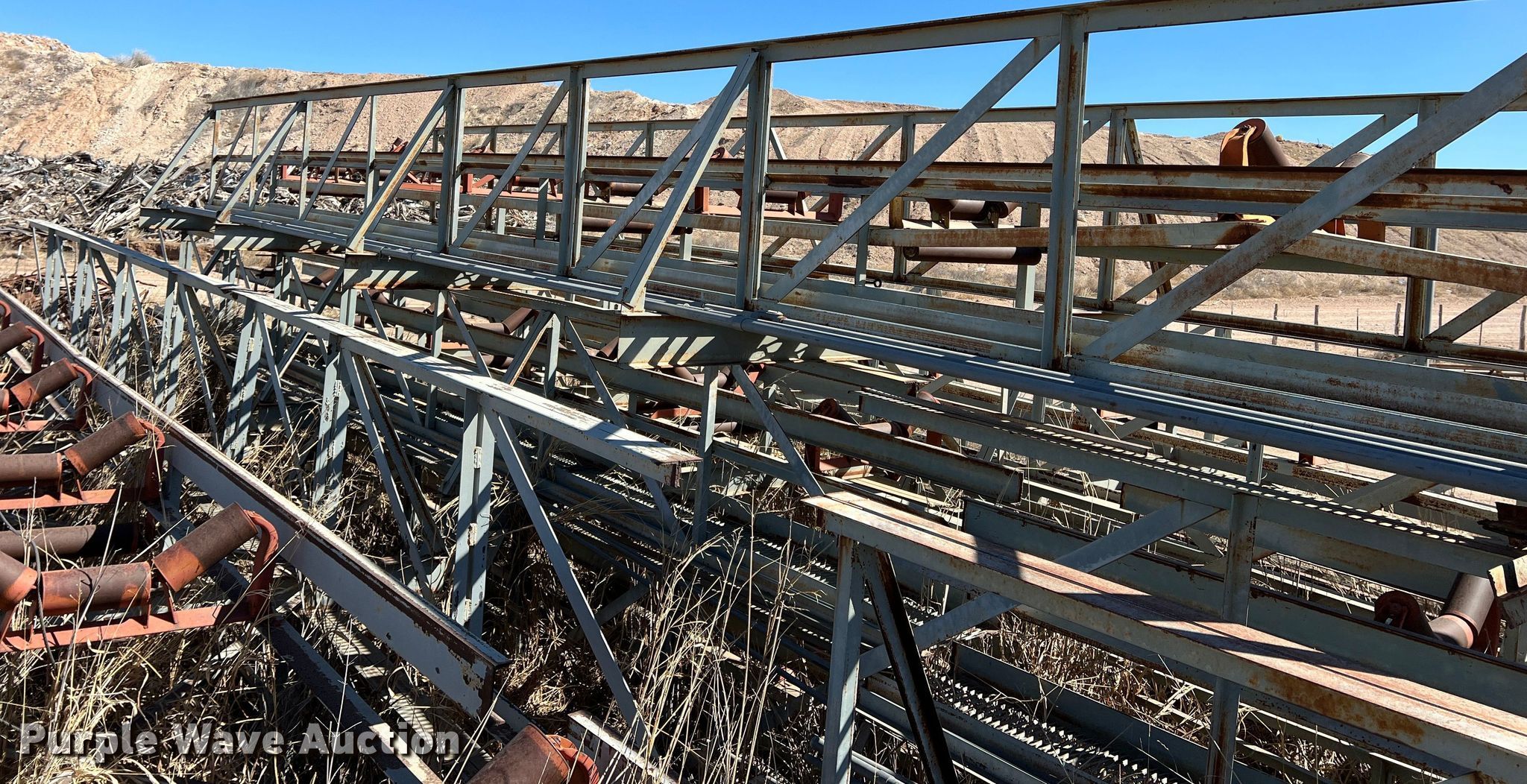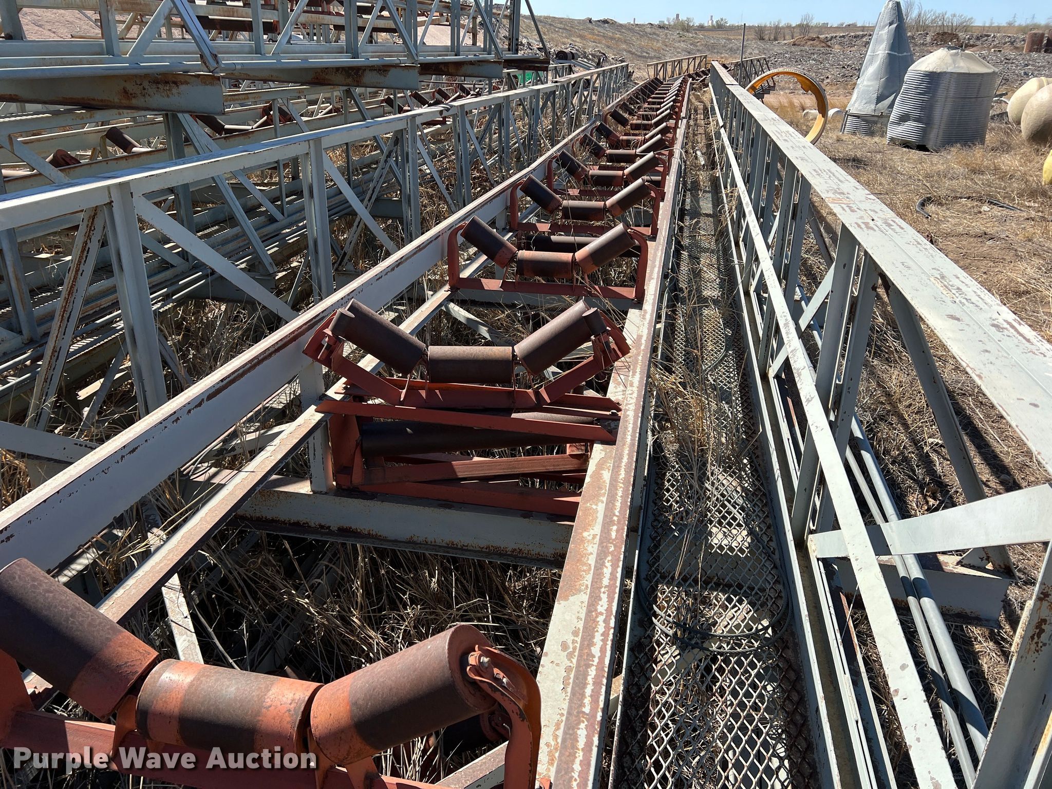 Purple Wave is selling a used Conveyor in Texas. This item is a Conveyor with the following: Overall: Approx. 800' L x 12' W, 40' L sections, Belt width: 32"