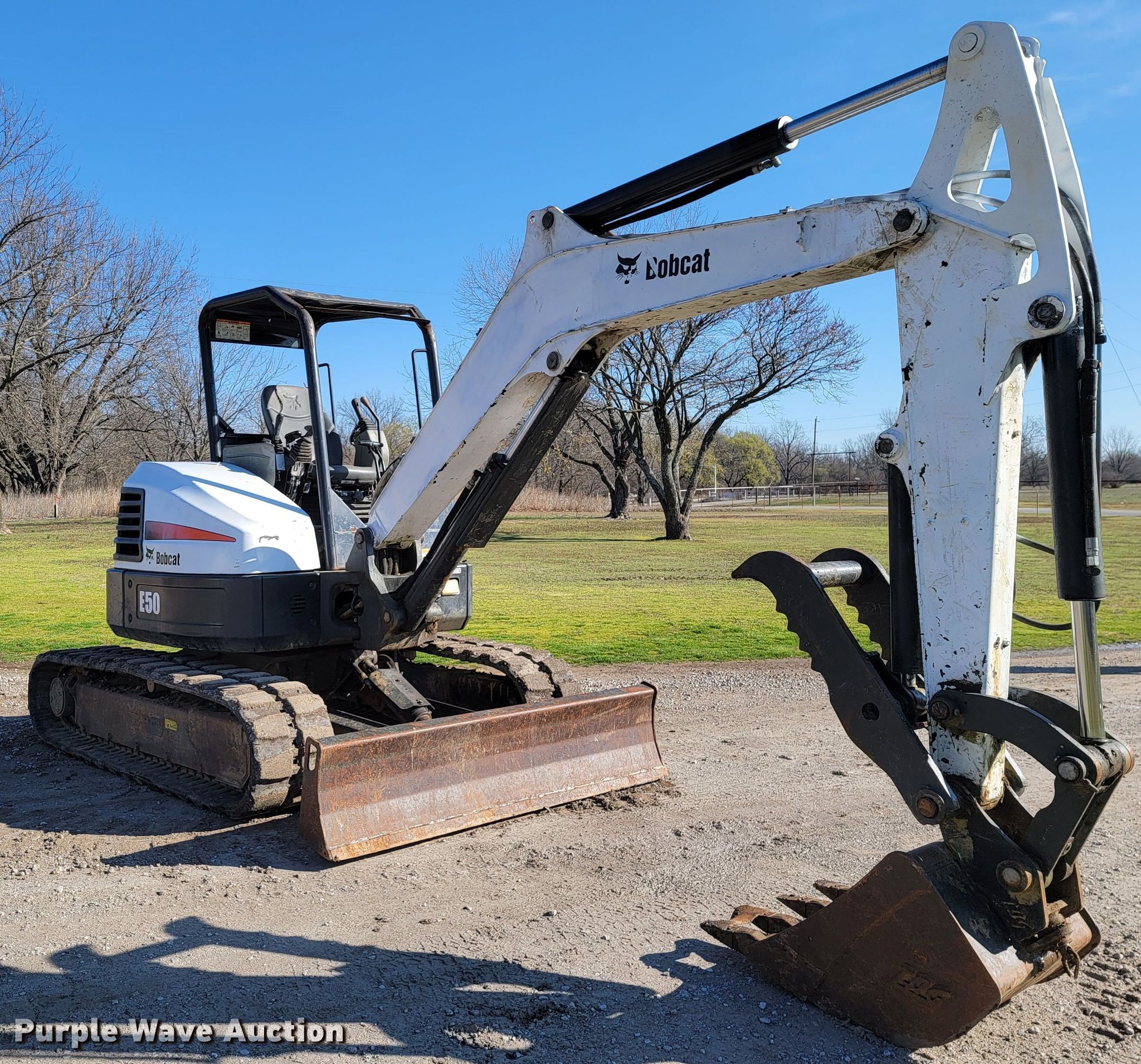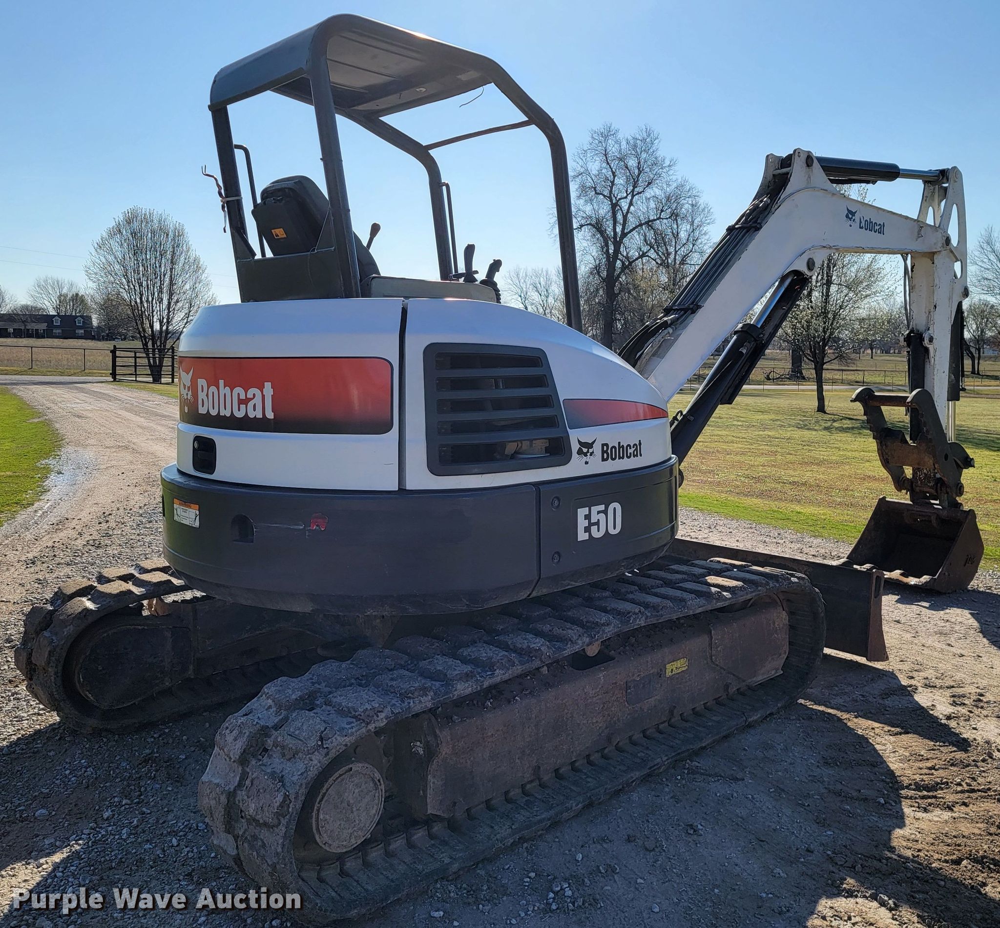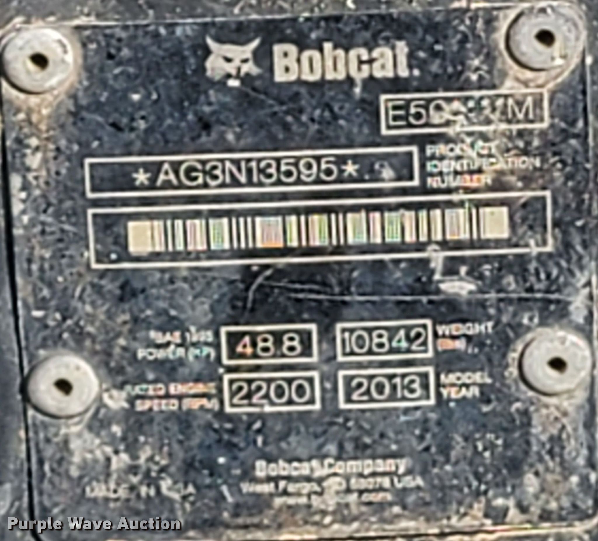 Purple Wave is selling a used Mini Excavator in Oklahoma. This item is a 2013 Bobcat E50 mini excavator with the following: Hours: 3,180 on meter, Miles or hours may vary, unit still in use, Serial: AG3N13595