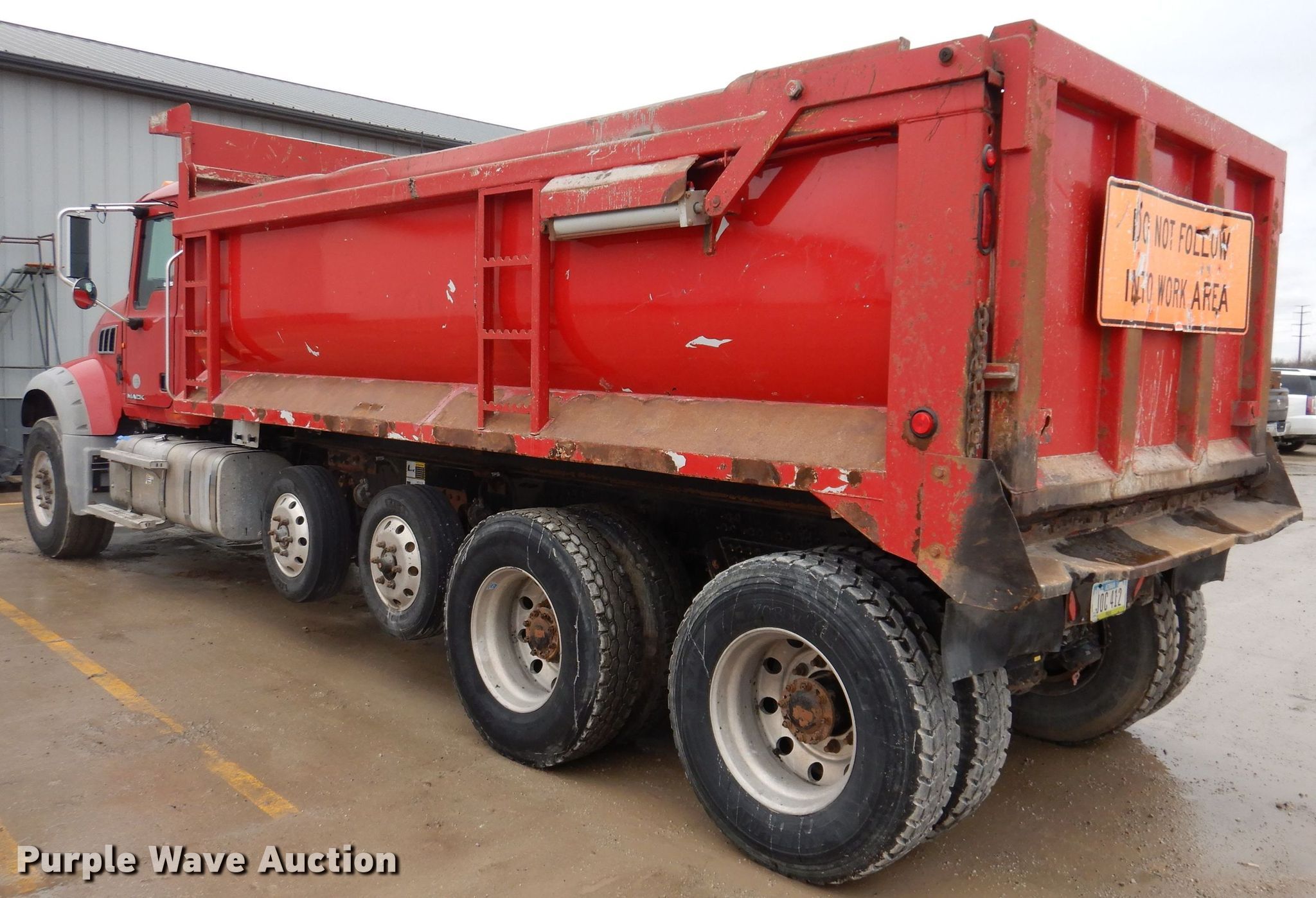 Purple Wave is selling a used Construction Dump Truck in Iowa. This item is a 2014 Mack Granite dump truck with the following: Miles: 448,492 on odometer, Hours: 18,671 on meter, VIN: 1M2AX07C5EM020904