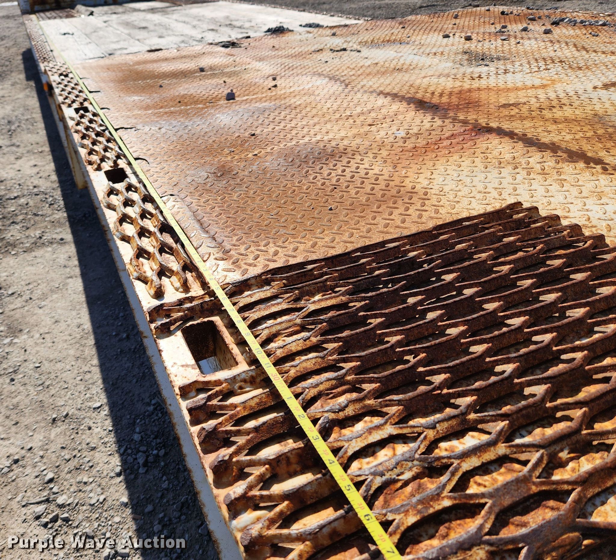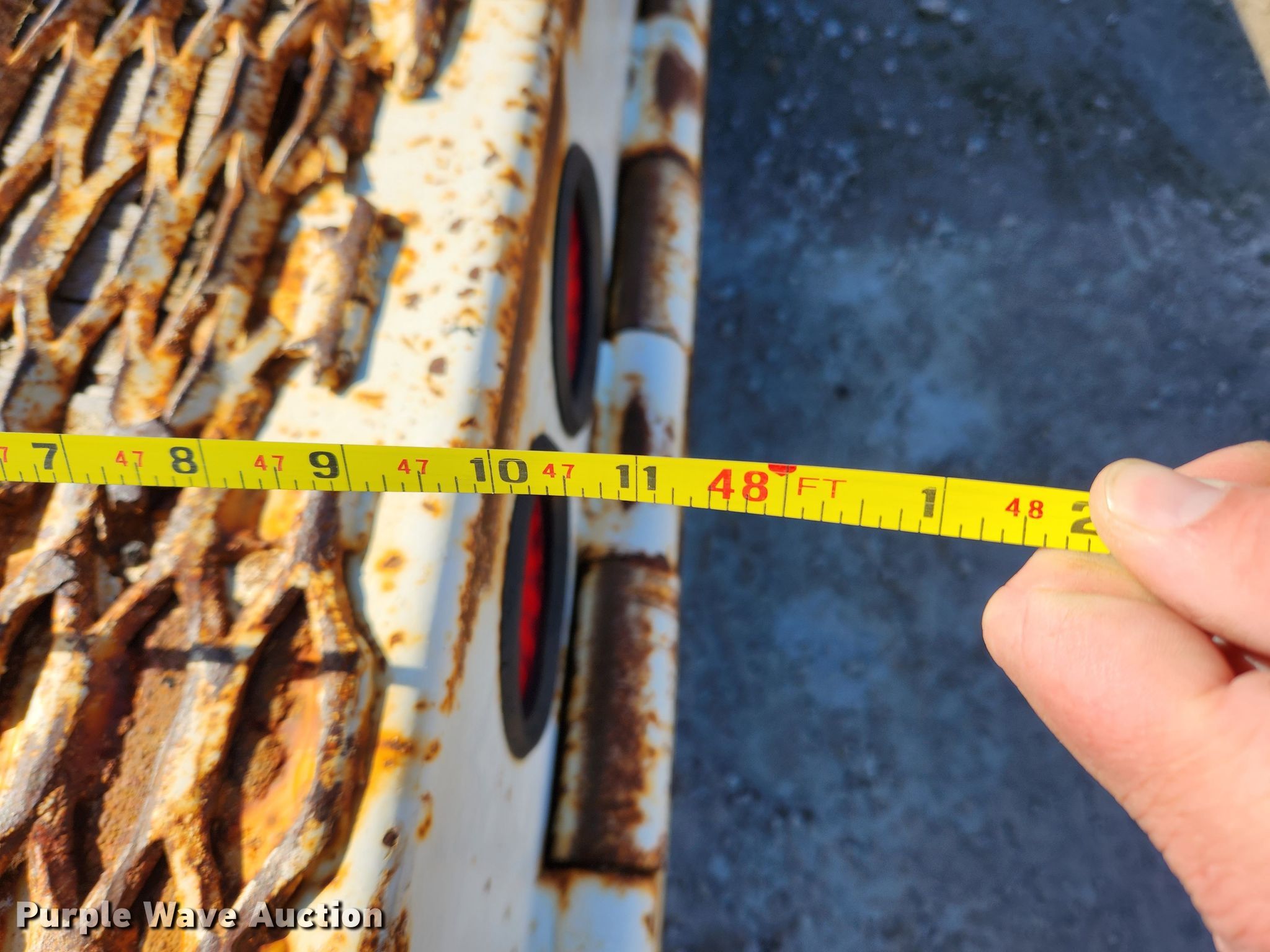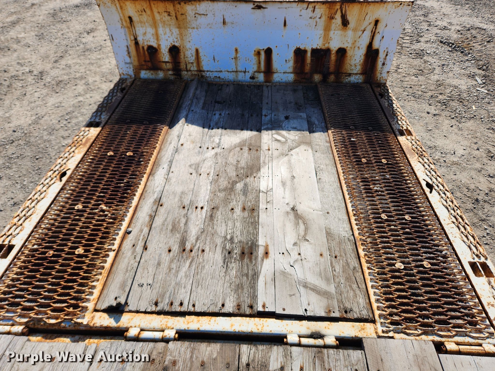 2000 Trail King TK70HT-482 drop deck equipment trailer. VIN: 1TKA04826YM021708. Dimensions Overall: 48' L x 102" W, Deck: 31' L x 102" W, Top deck length: 9', Hydratail length: 12'. Features Deck type: Steel, Wood, Winch. Chassis Landing gear: Dual, Suspension: Air, Brakes: Air, Axles: Tandem, GVWR: 85,780 lbs, GAWR: 20,000 lbs. Tires Steel wheels, Size: 235/75R17.5. Notes Hydraulic ramp issues, hoses may need to be replaced. Missouri title. Title distribution may be delayed up to 14 days from verification of funds. Parking Lot Maintenance. Wentzville, MO 63385