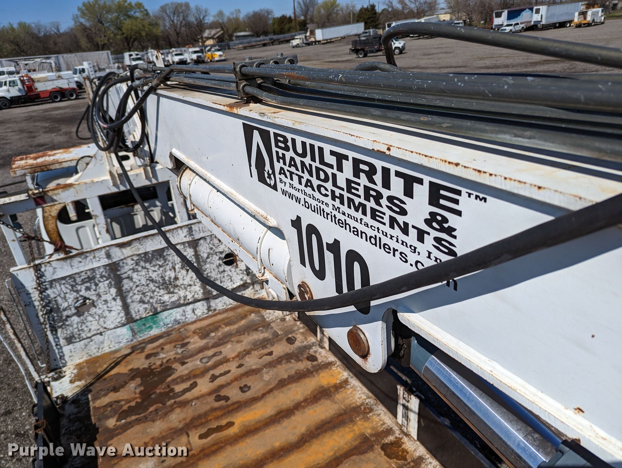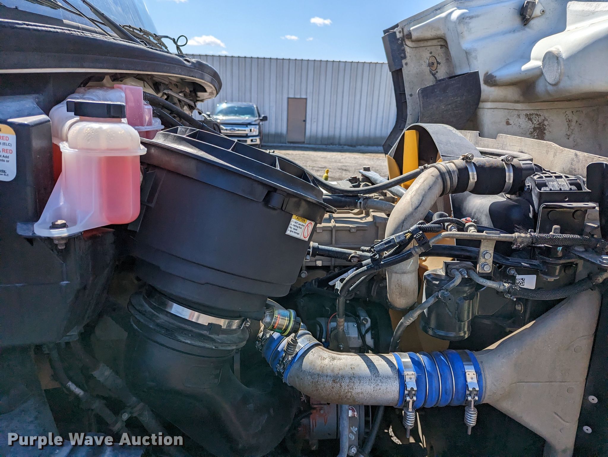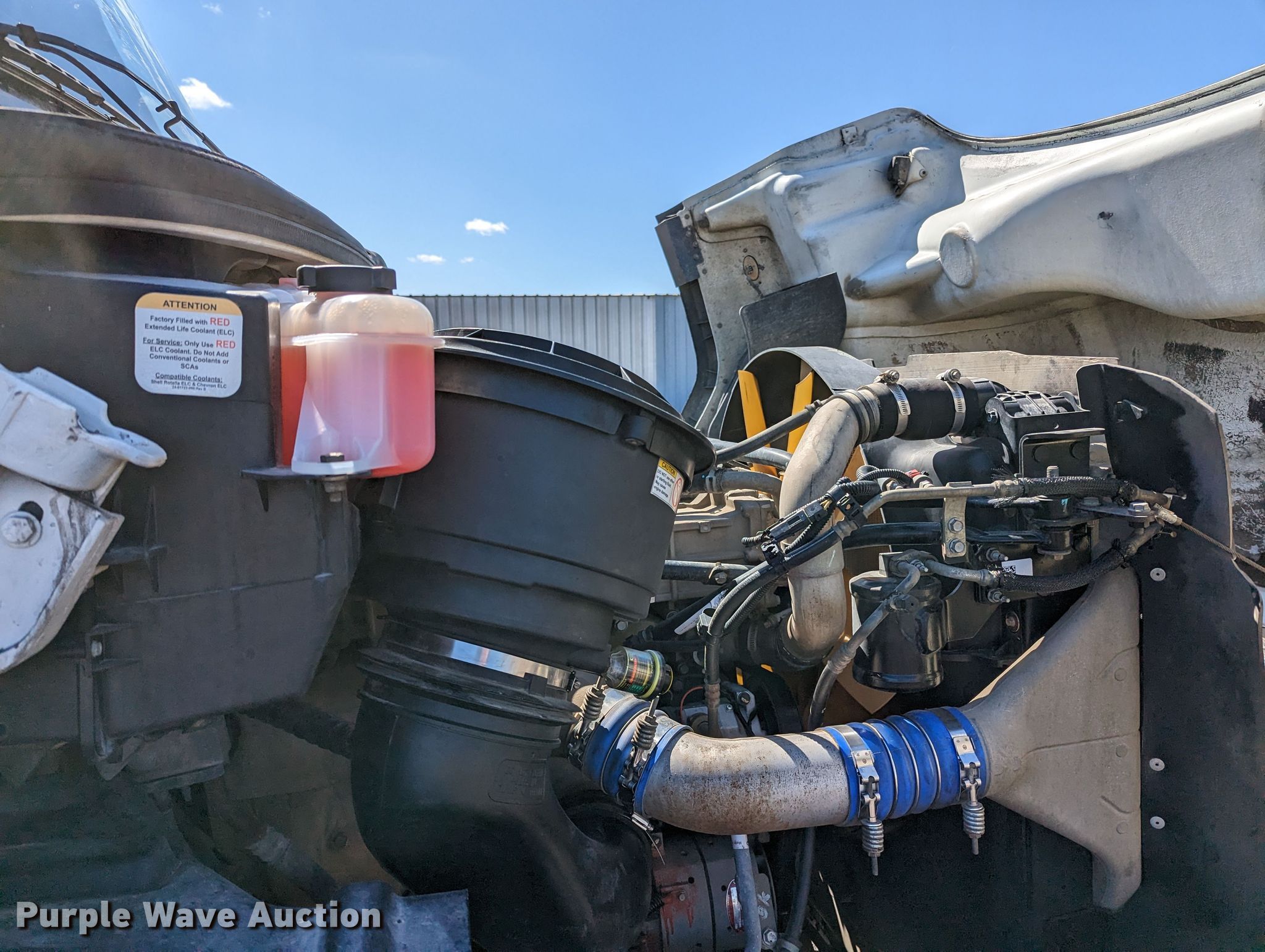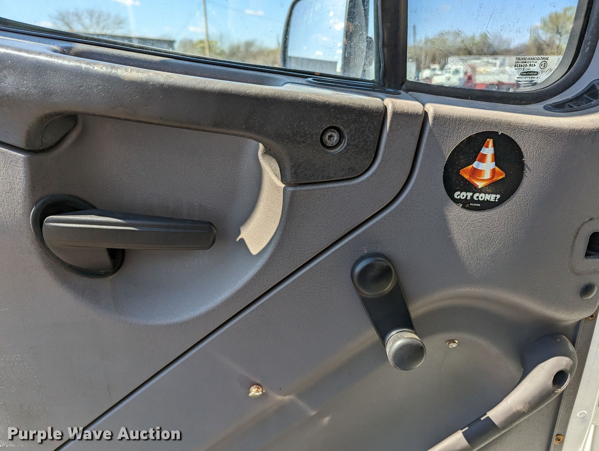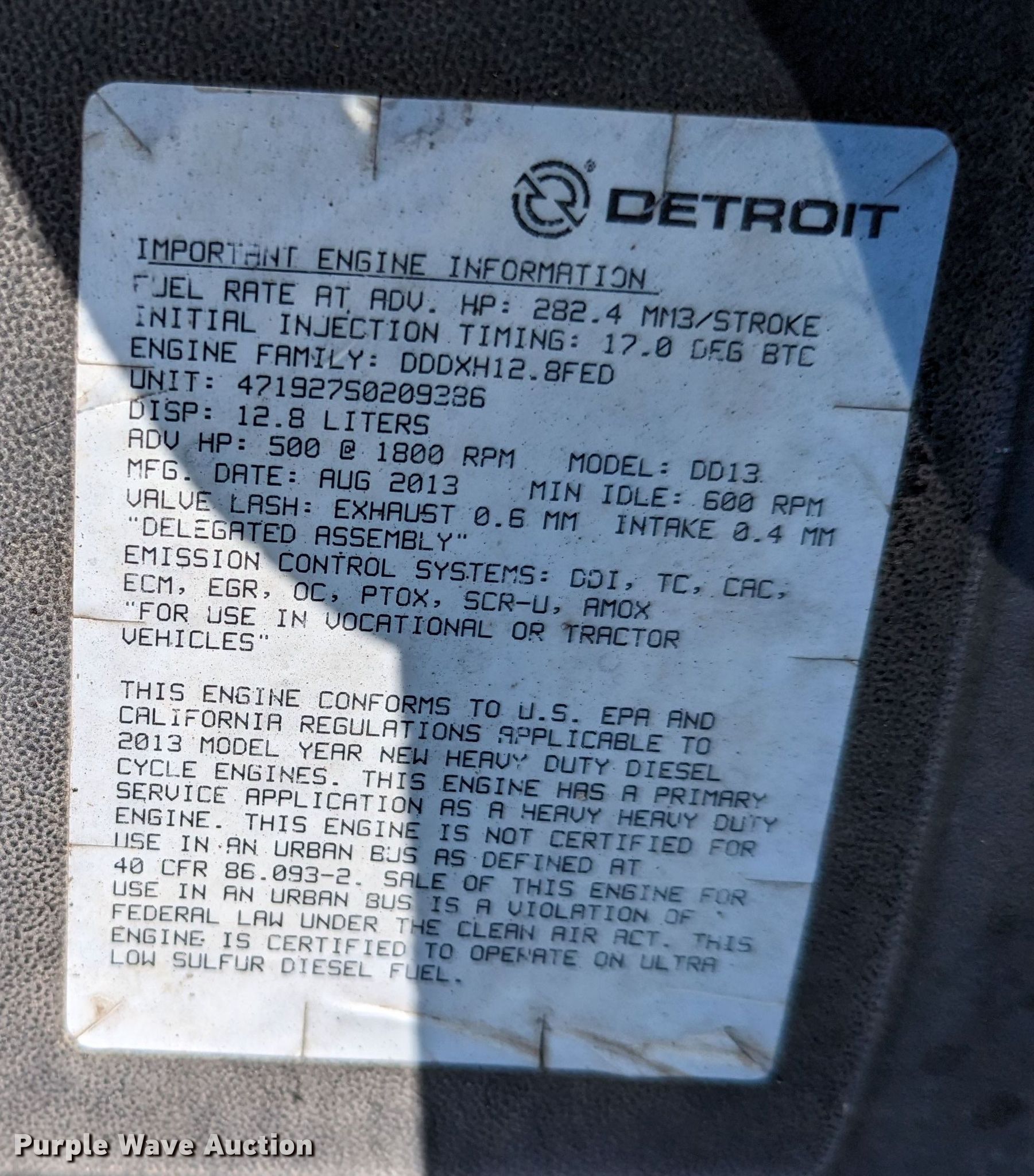 2014 Freightliner 114SD crane truck. Miles: 357,492 on odometer, VIN: 3ALMG3DV1EDFW4394. Engine Detroit Diesel DD13, Displacement: 12.8L, Cylinders: 6, Fuel type: Diesel, HP: 282.4, Engine brake. Transmission Eaton Fuller, Manual, Speed: 10. Chassis Axles: Tandem, Pusher axle, Suspension: Air, Brakes: Air, PTO, GVWR: 56,500 lbs FAWR: 16,000 lbs, RAWR: 42,500 lbs. Interior AC, Heat, Heated mirrors, Cruise control. Features Flatbed 16' 6" L x 96" W, Crane Builtrite Handlers 1010, Maximum boom length: 13' 10" Maximum lift capacity: 10,000 lbs, Boom controls Platform, Grapple 64" W. Tires Front: 315/80R22.5, Rear: 11R22.5, Lift axle: 295/75R22.5. Notes Dash warning indicator: Check engine. Oklahoma title. 15107 North 137th East Avenue. Collinsville, OK 74021