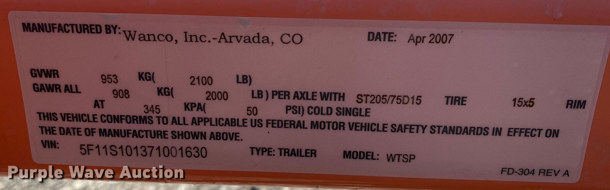 Purple Wave is selling a used Road Safety Equip. in Oklahoma. This item is a 2007 Wanco WTSP arrow board trailer with the following: VIN: 5F11S101371001630