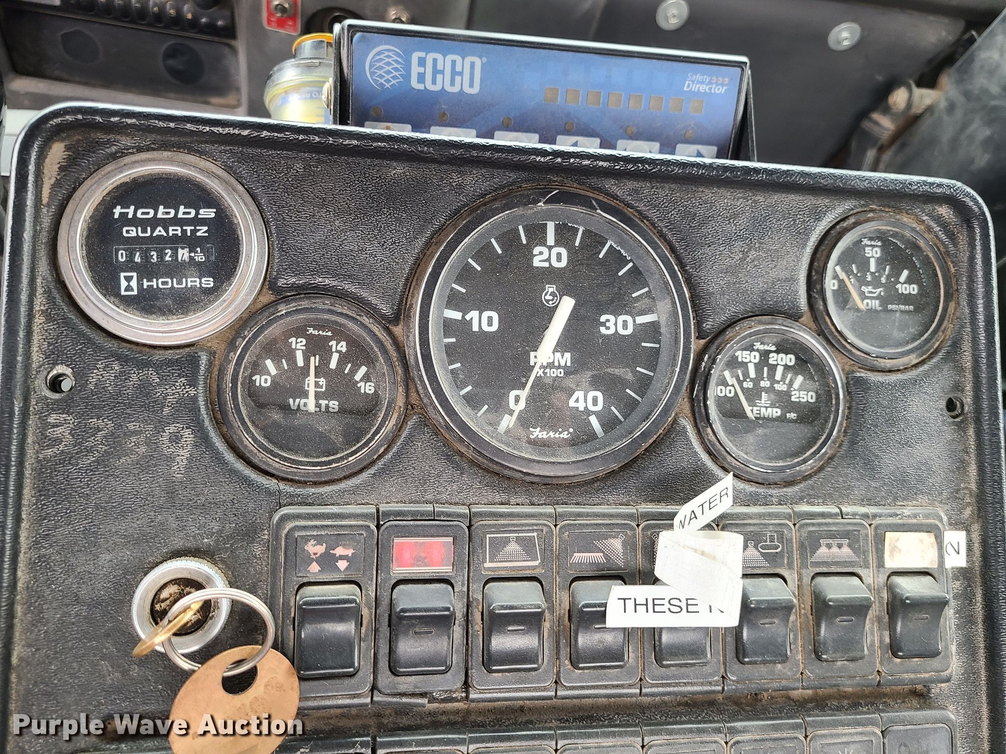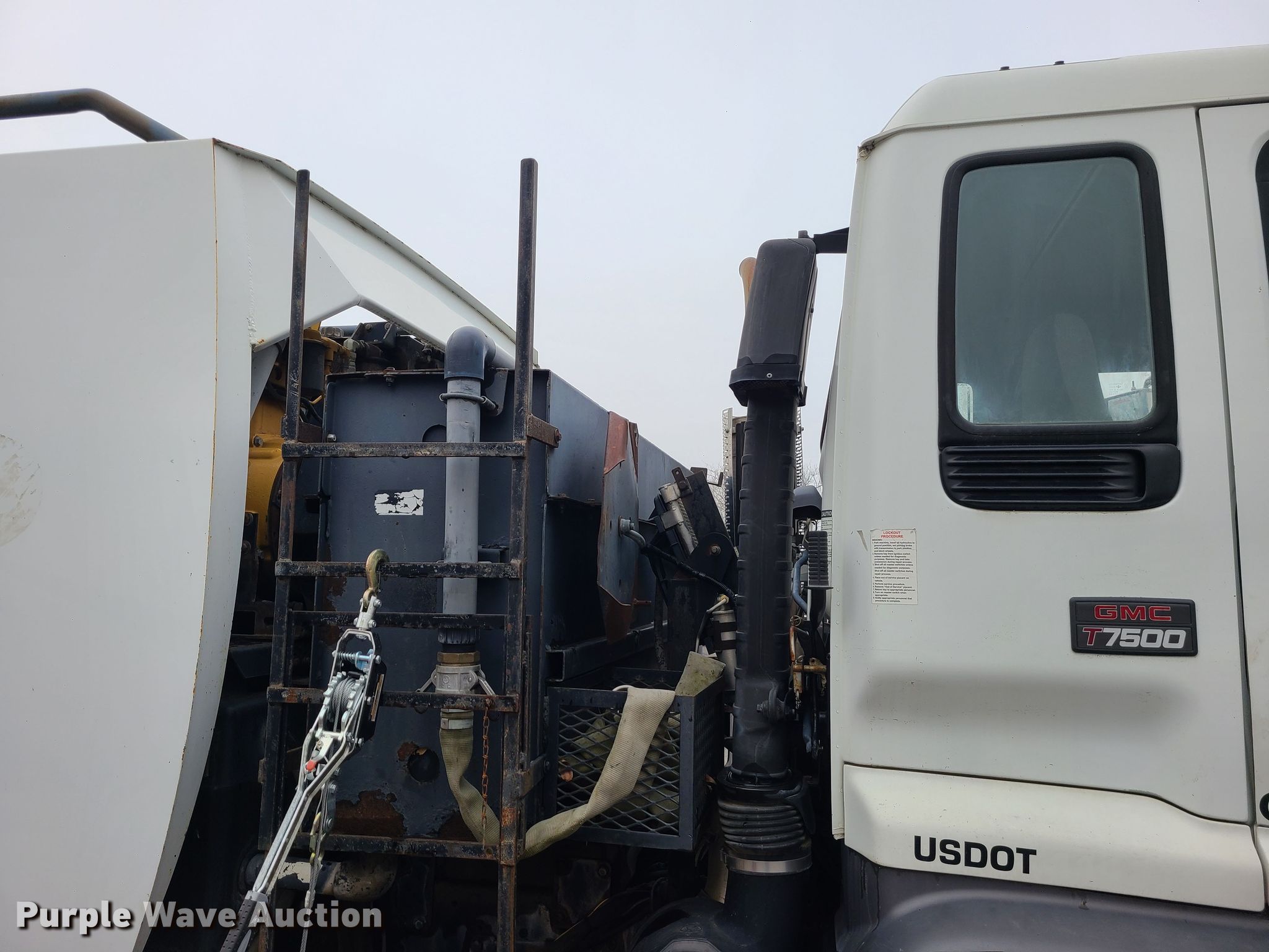 2002 GMC T7500 street sweeper truck. Miles: 64,989 on odometer, VIN: 1GDM7C1C52J515995. Engine Caterpillar 3126, Displacement: 7.2L, Cylinders: 6, Fuel type: Diesel. Transmission Automatic. Chassis Suspension: Spring, Brakes: Air. Operators station AC, Heat, Dual operating station. Features Broom, Water spray system, Sweeper bed Sweeper bed type: Vacuum Schwarze A8000, Left gutter broom Hours: 432, Right gutter broom, Engine John Deere, Cylinders: 4. Tires Size: 11R22.5. Missouri title. Title distribution may be delayed up to 14 days from verification of funds. AB Rock - Open inspection April 26th. 15301 Broadmoor Street. Overland Park, KS 66223
