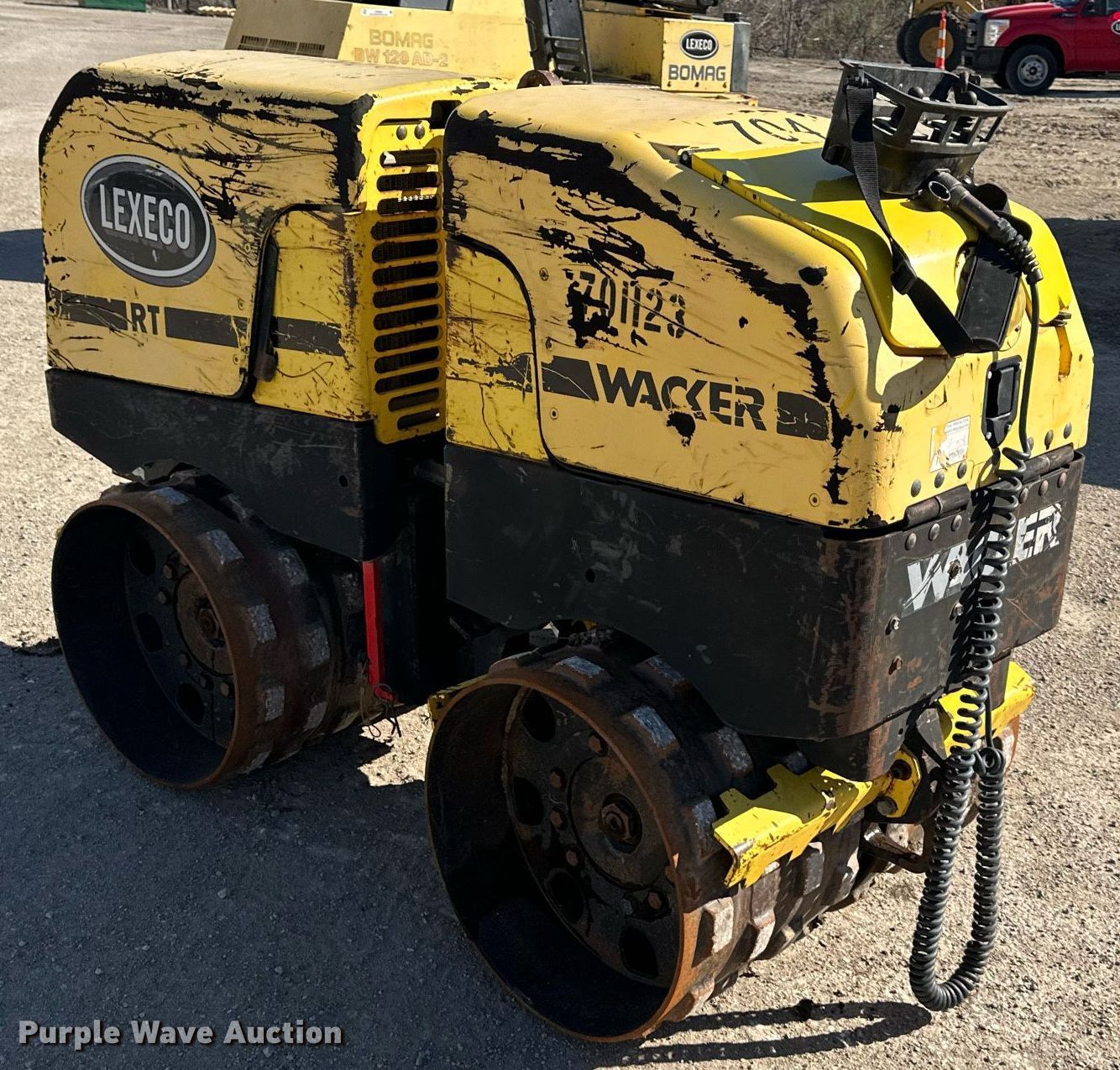 Wacker RT trench compactor. Hours: 1,208 on meter. Engine Lombardini, Cylinders: 3, Fuel type: Diesel. Transmission Hydrostatic. Features Vibratory system, Drum: Padfoot Width: 32", Diameter: 20", Drum scrapers: Front, Rear, Remote control. Lexeco Construction Companies. 1901 S 2nd St. Leavenworth, KS 66048
