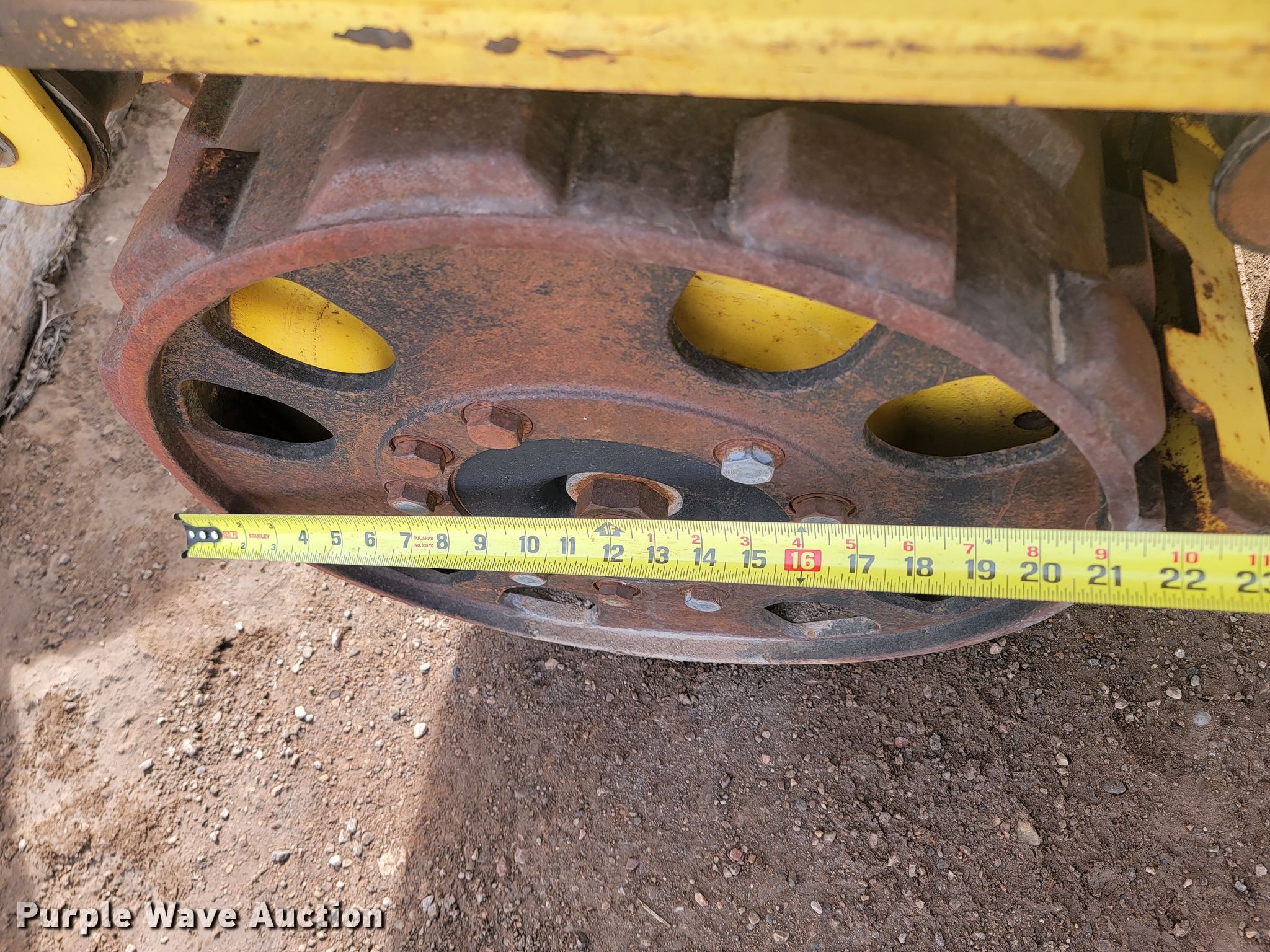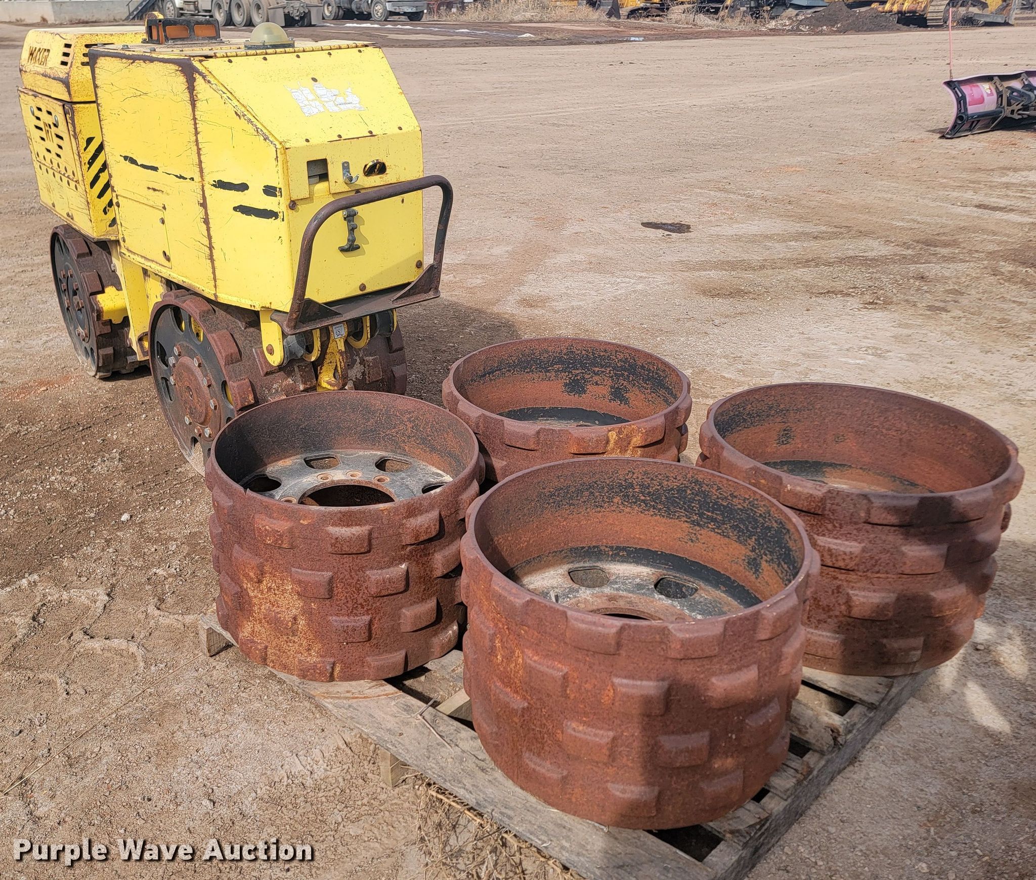 Wacker RT820 trench compactor. Serial: 5244975. Engine Lombardini, Displacement: 871 cc, Cylinders: 2, Fuel type: Diesel. Transmission Hydrostatic. Features Vibratory system, Drum: Padfoot Width: 22", Diameter: 21". Notes Additional set of rollers, Non-operational unit. Gustafson Builders. 4101 Deadwood Avenue North. Rapid City, SD 57709