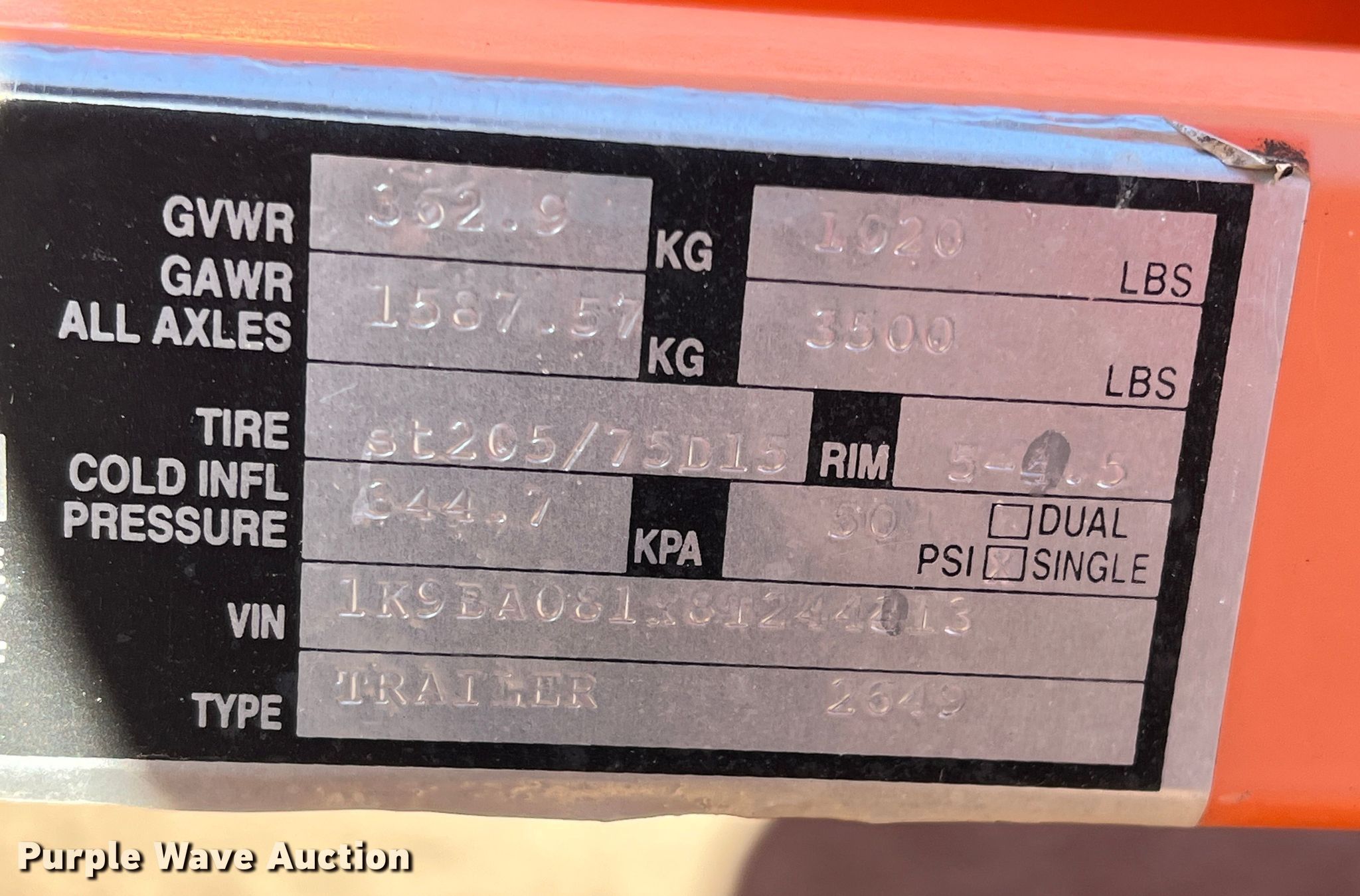 Purple Wave is selling a used Road Safety Equip. in Texas. This item is a 2008 K&K Systems arrow board trailer with the following: VIN: 1K9BA081X8T244413