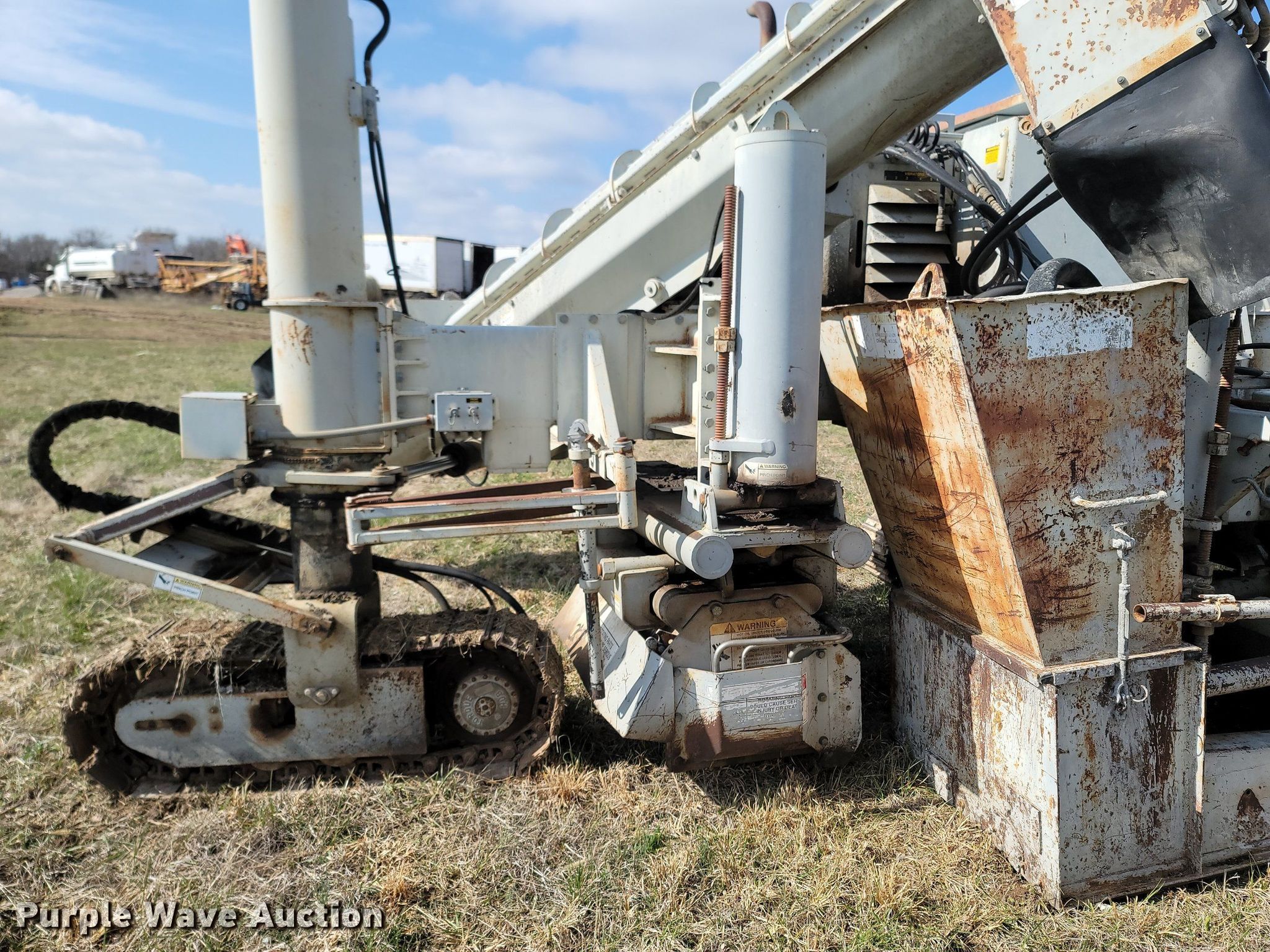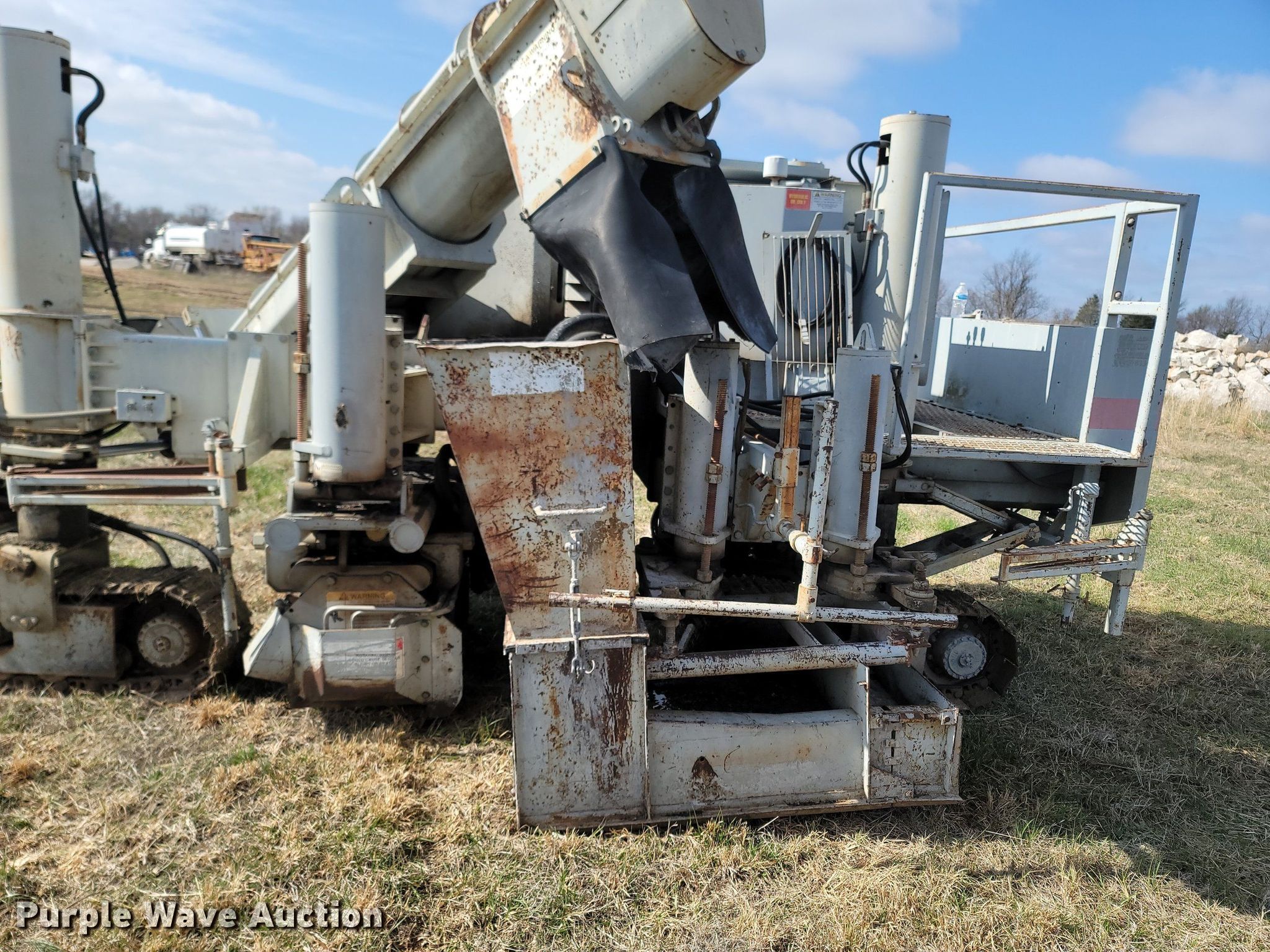 Power Curber 5700D curb machine. Hours: Unknown, Serial: 57B0797856. Engine Cylinders: 4, Fuel type: Diesel. Transmission Hydrostatic. Features Molds: 1, Auger Length: 72", Diameter: 10", Hopper 48" L x 36" W, Conveyor 14' L, Water system Hose. Tracks Width: 12", Steel, Grouser pads: Triple. 3899 N Farm Road 115. Springfield, MO 65803