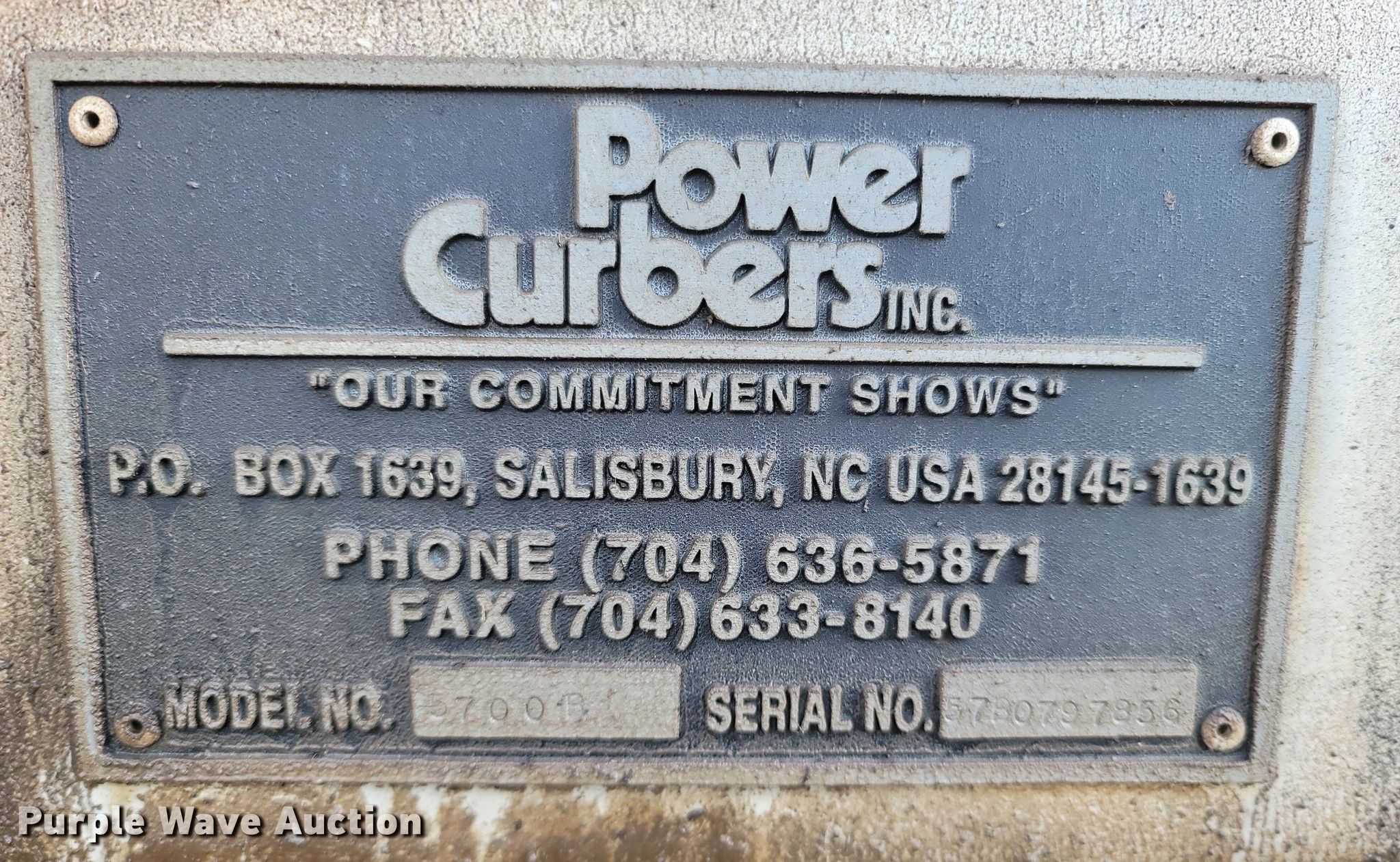 Purple Wave is selling a used Concrete Paver or Curb Machine in Missouri. This item is a Power Curber 5700D curb machine with the following: Hours: Unknown, Serial: 57B0797856